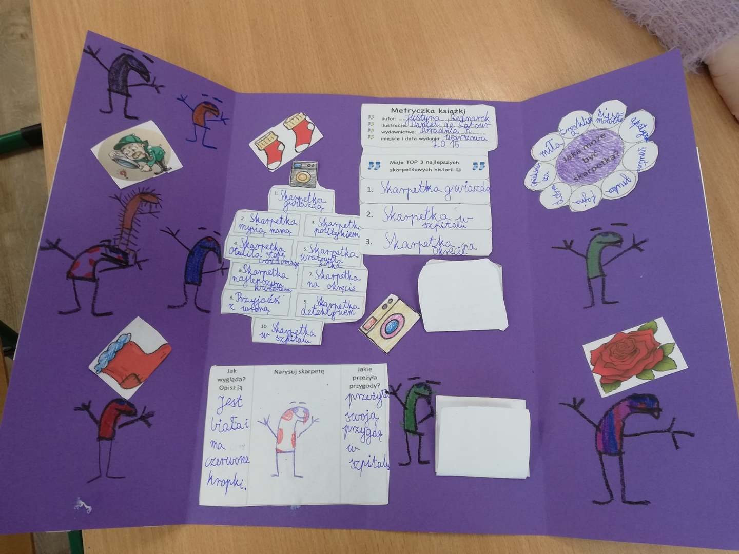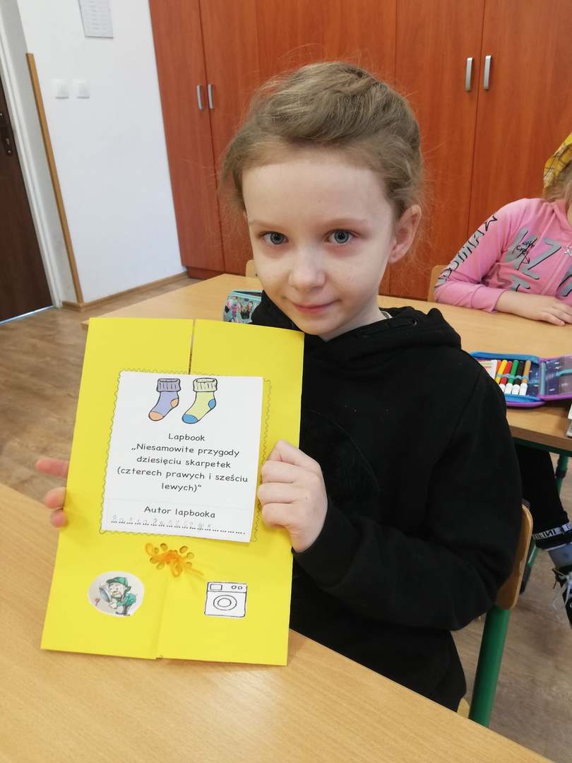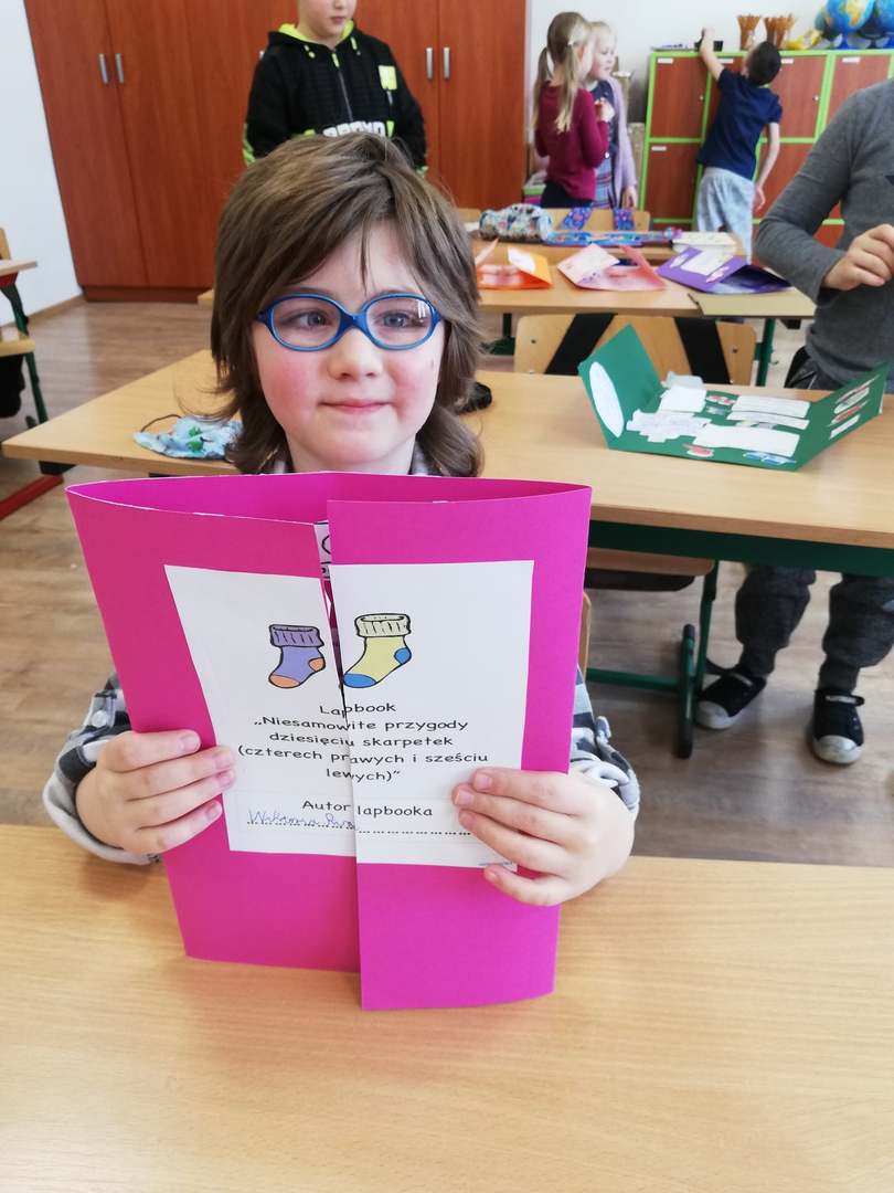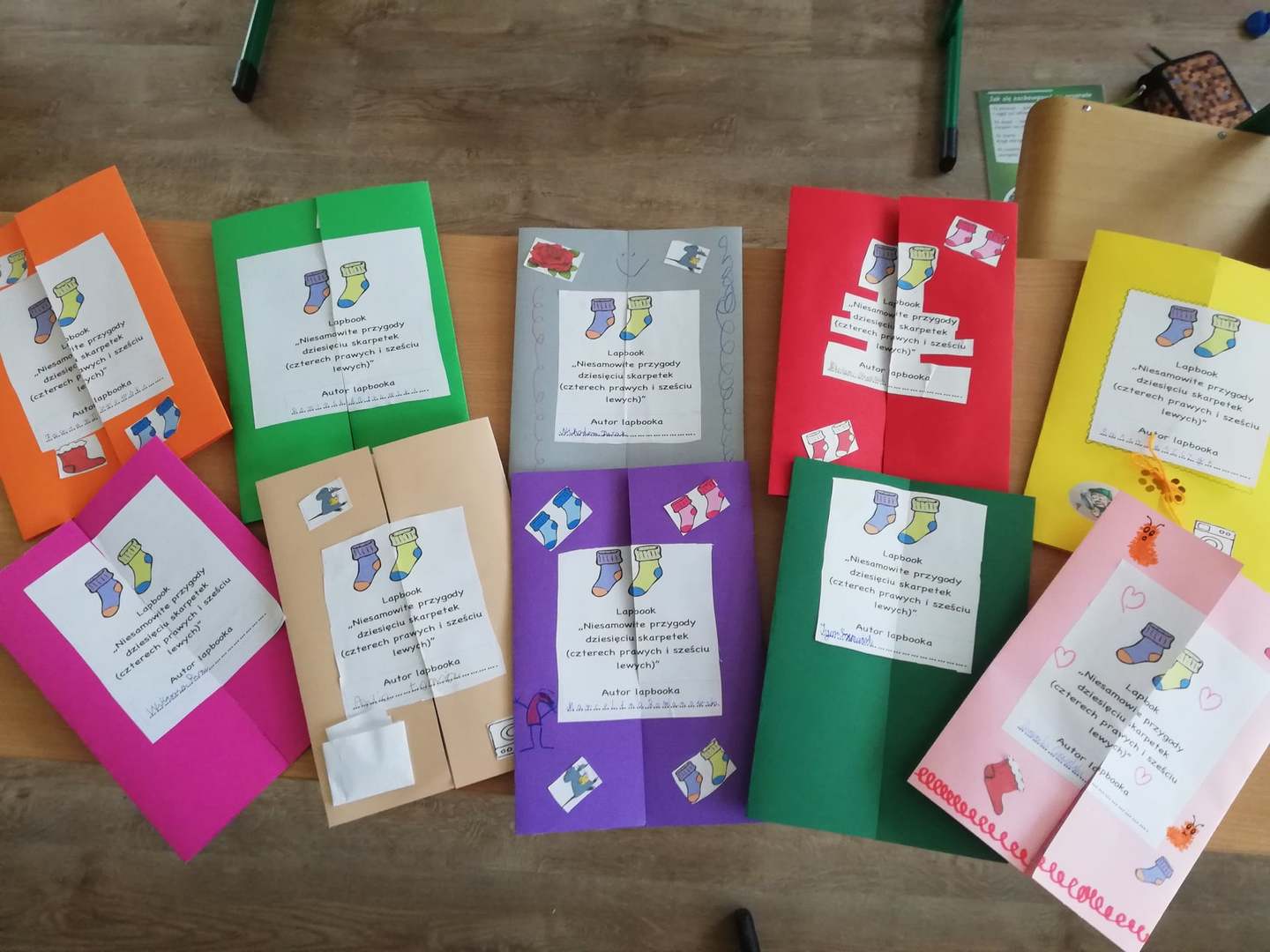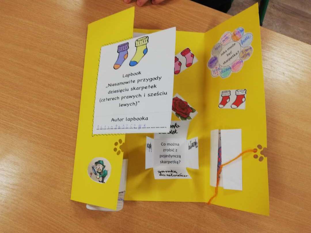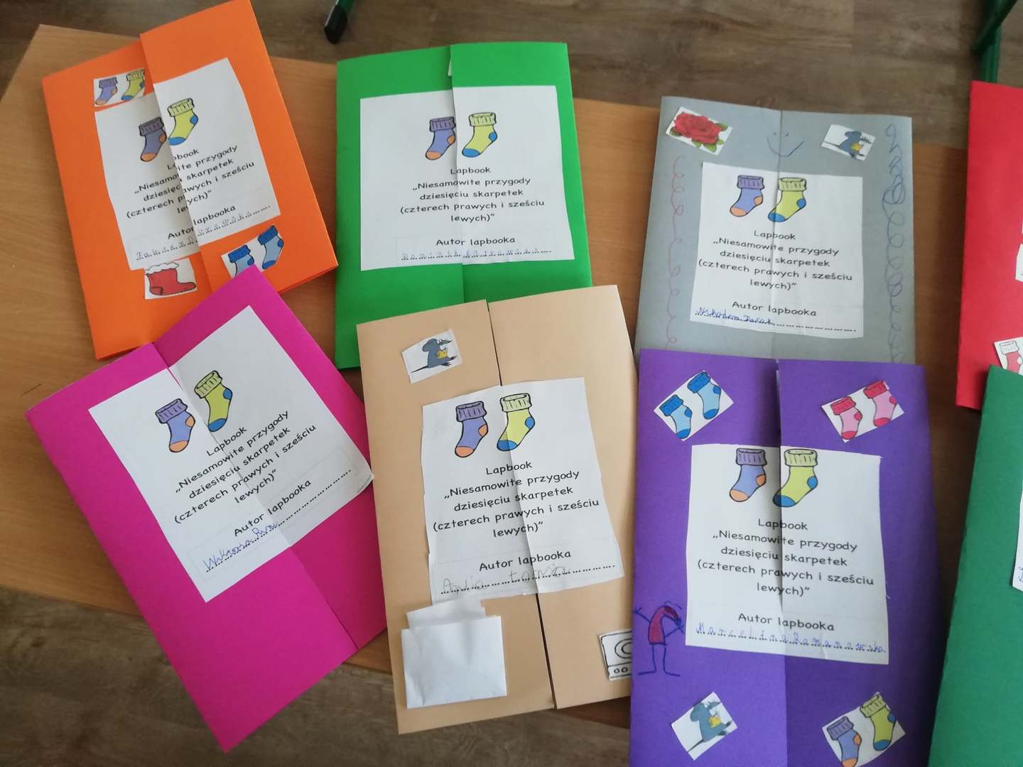 Nasze pierwsze lapbooki do lektury "Niesamowite przygody dziesięciu skarpetek (czterech prawych i sześciu lewych)" Uczniowie klasy II rewelacyjnie poradzili sobie z zadaniem