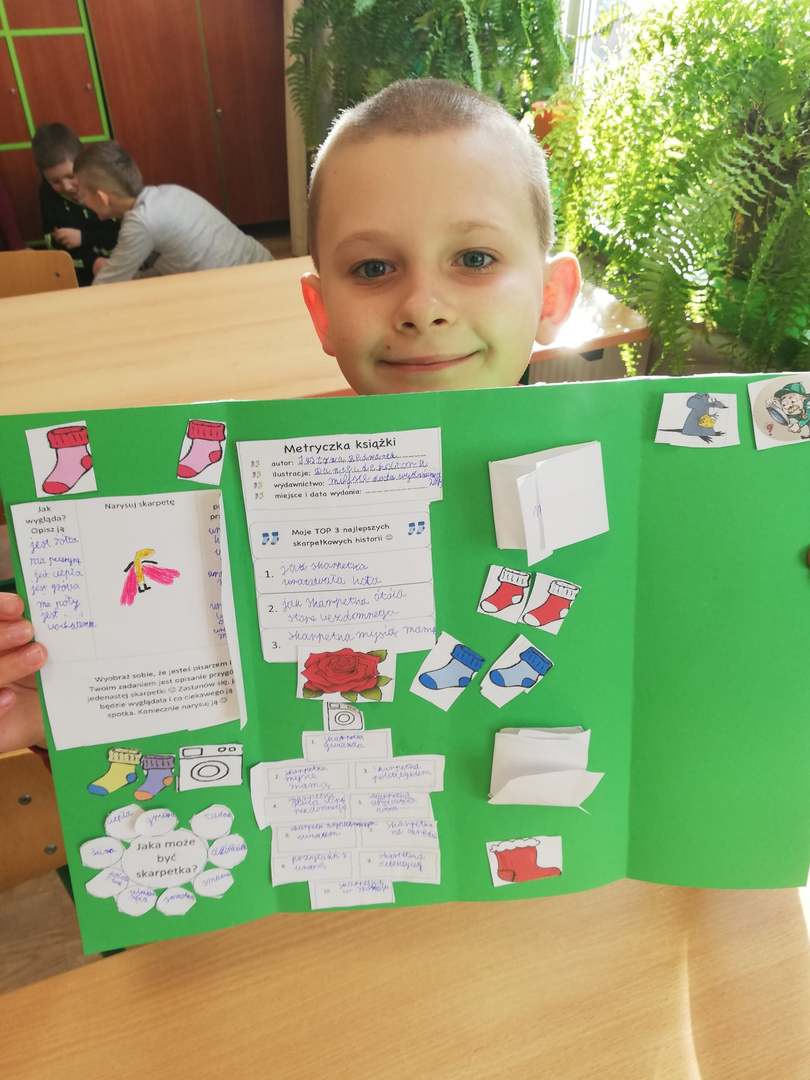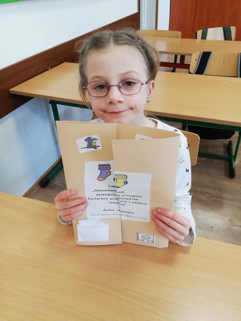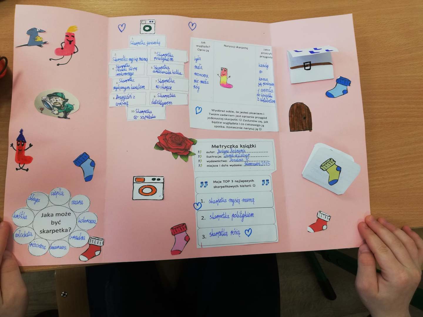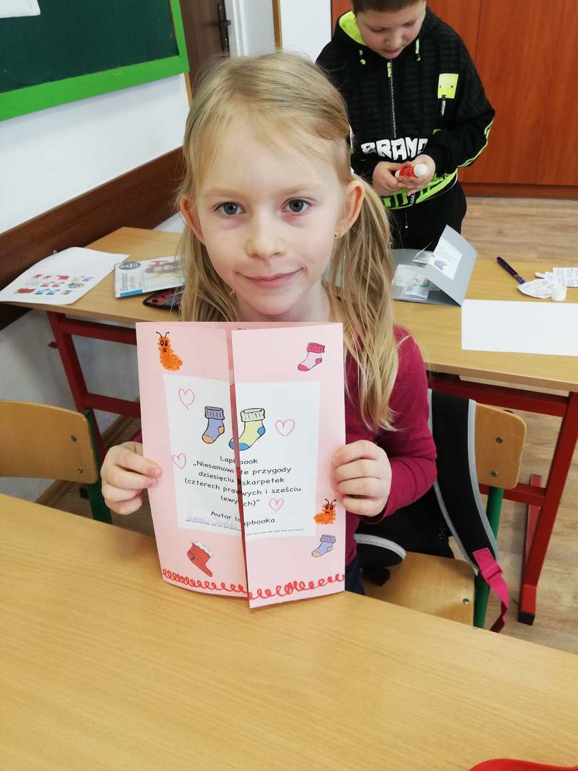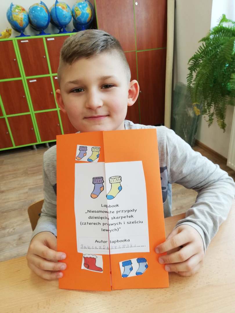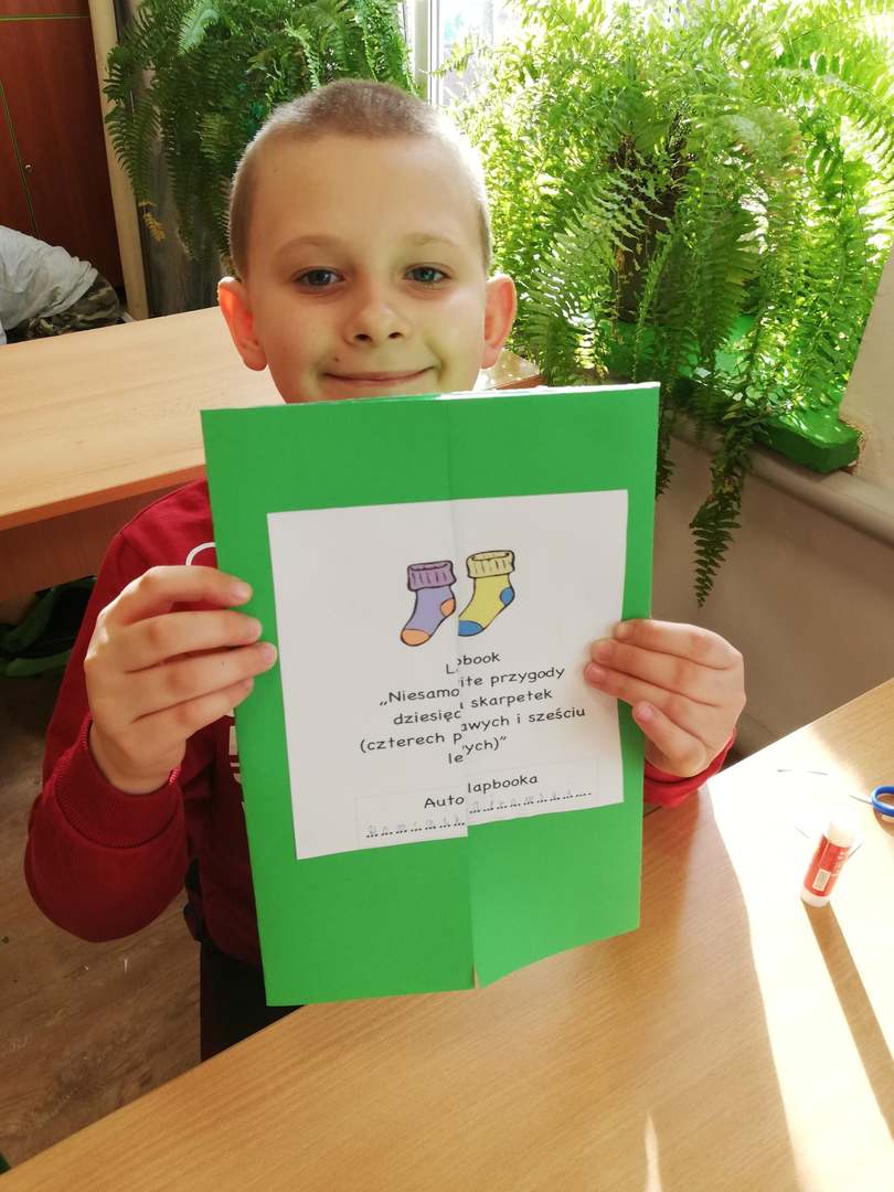 Nasze pierwsze lapbooki do lektury "Niesamowite przygody dziesięciu skarpetek (czterech prawych i sześciu lewych)" Uczniowie klasy II rewelacyjnie poradzili sobie z zadaniem