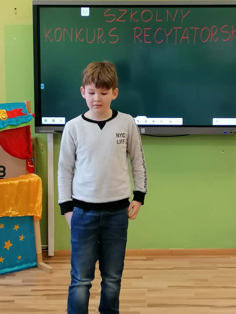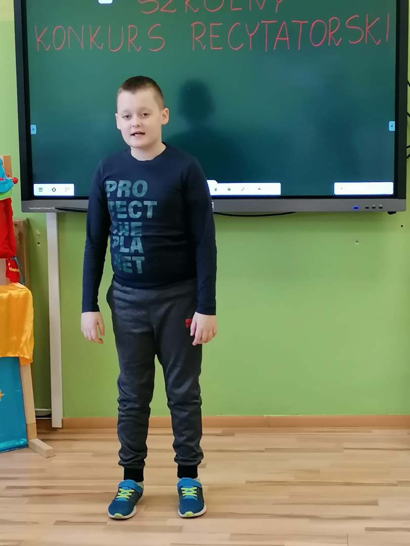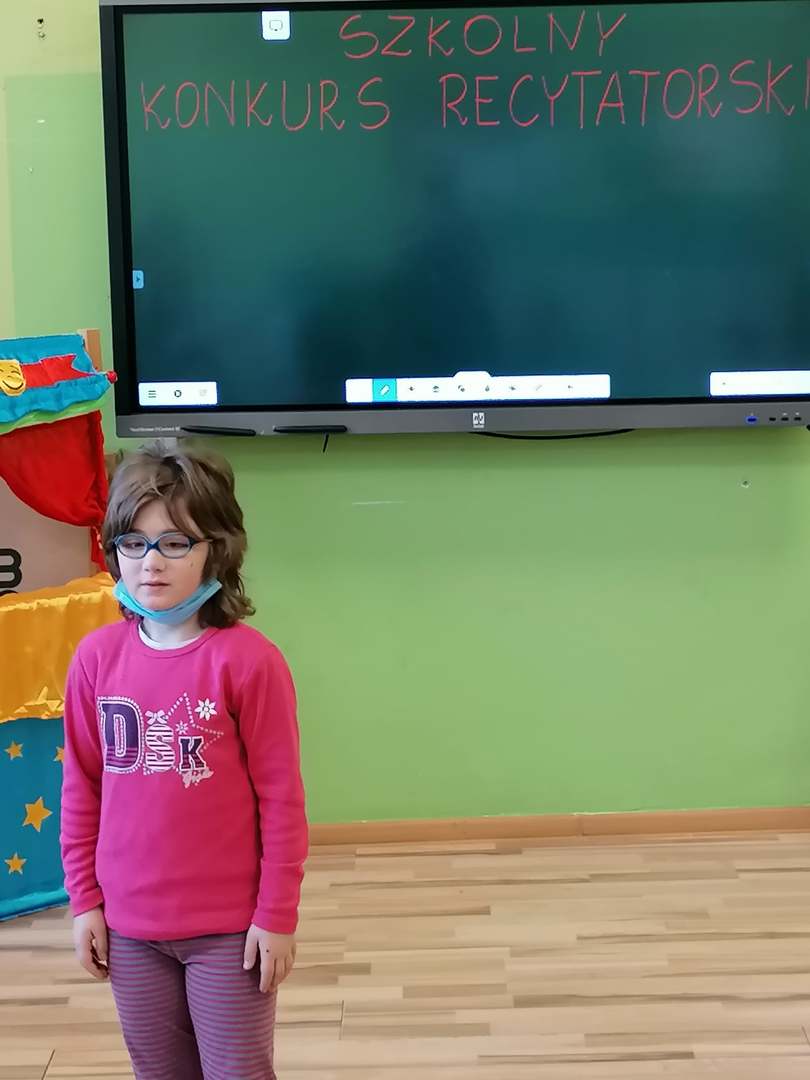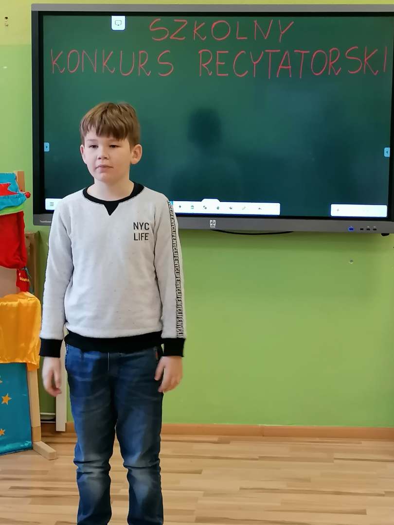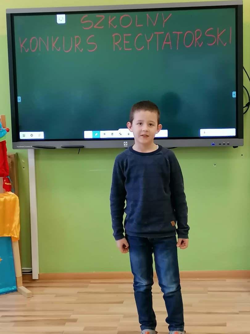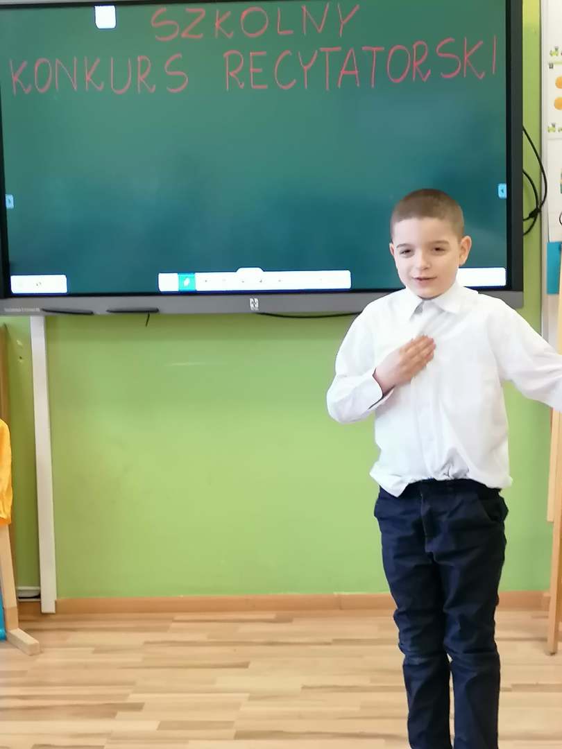 W dniu 8.03.2021 r. odbył się Szkolny Konkurs Recytatorski. Konkurs skierowany był dla klas I-III i przystąpiło do niego 15 uczniów. Celem konkursu było rozwijanie zainteresowań poetyckich dzieci, uwrażliwienie na piękno poezji, rozwijanie zdolności artystycznych oraz wyszukiwanie młodych talentów.
