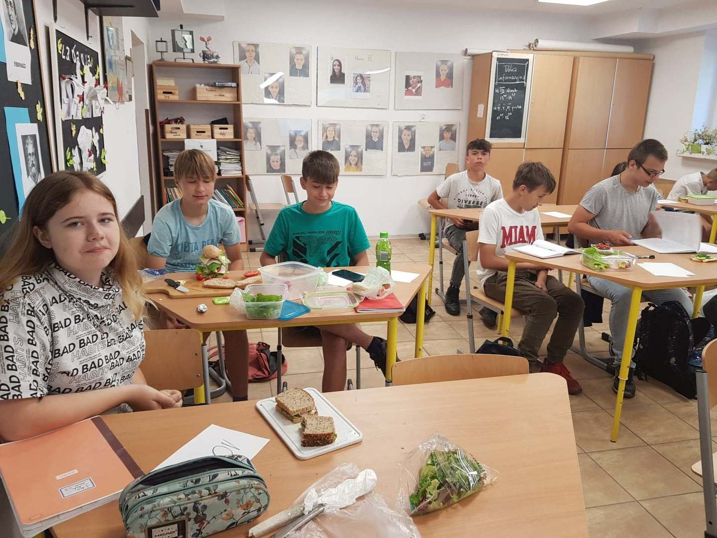Hmmm nasi uczniowie sami na lekcji matematyki przygotowali sobie śniadanie i sami też policzyli wartość kaloryczną swoich kanapek. I okazało się, że najbardziej kaloryczna kanapka miała ponad 600 kcal. To pokazuje jak bardzo potrzebna jest nam matematyka w życiu codziennym. Nawet do utrzymania prawidłowej masy ciała.
