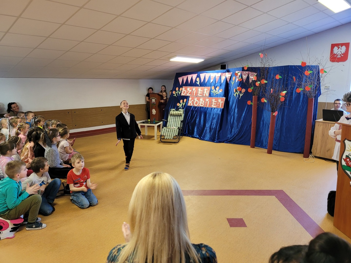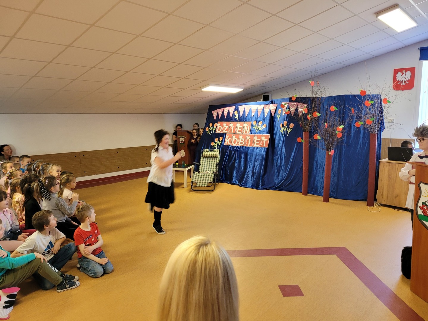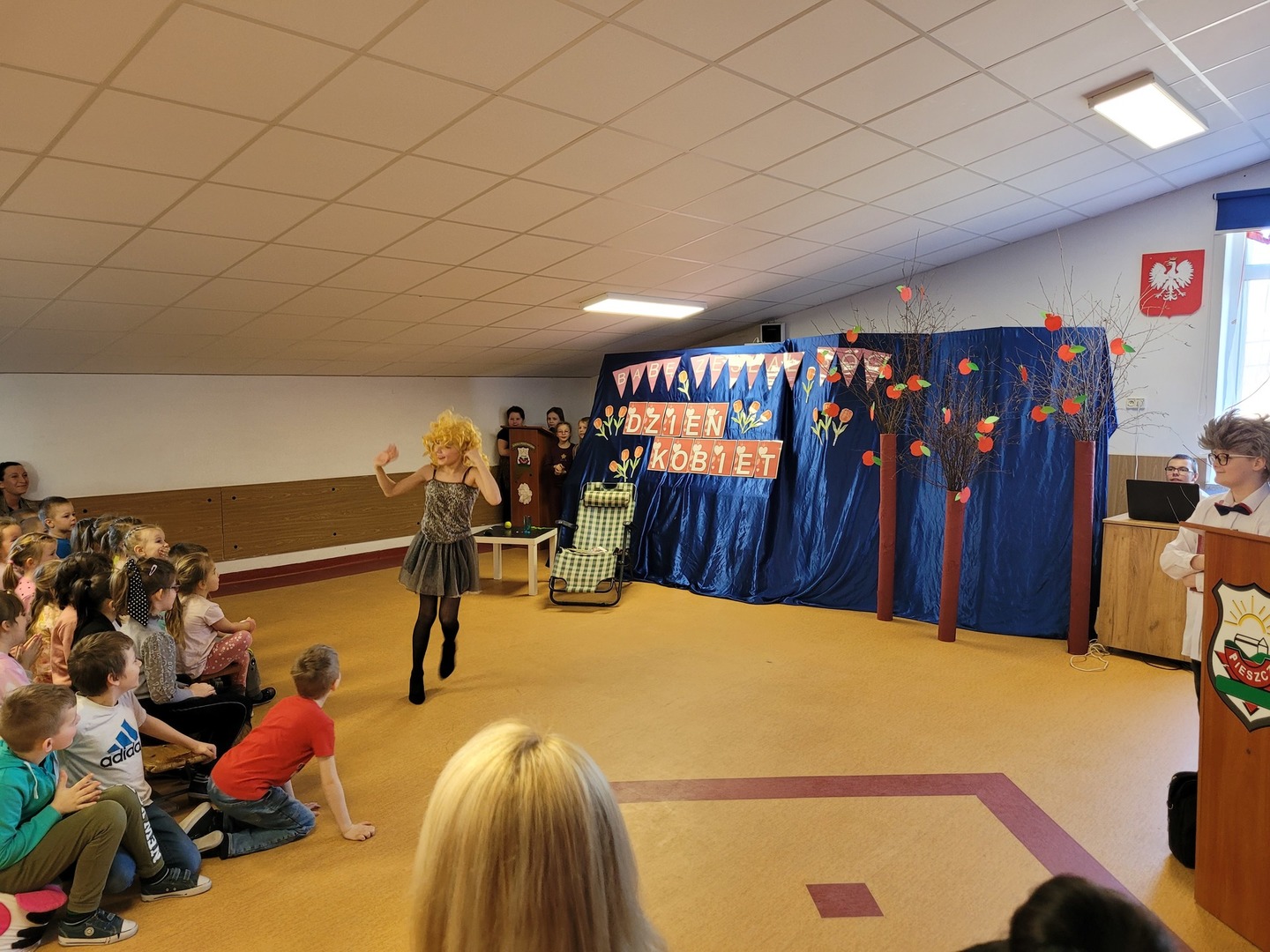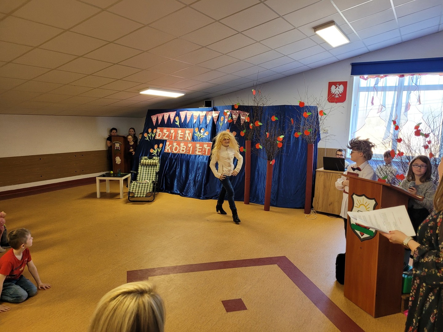Scenariusz nawiązywał do Adama i Ewy, czyli biblijnych postaci. Przedstawienie w zabawny sposób pokazało pierwsze dni ich wspólnego życia, a znane polskie piosenki o kobietach porywały do tańca. Następnie panie z grona pedagogicznego odczytały znaczenia swoich imion i jak się okazało wszystko idealnie pasowało- no może poza drobnymi wyjątkami. Na koniec odbył się pokaz mody damskiej, a widzowie mogli obejrzeć różne stylizacje, np. bizneswoman, sportsmenki, feministki czy kokietki. Niespodziankę zrobili tu chłopcy, bo to oni przebrali się w przygotowane kreacje, a nawet odważyli się przejść po wybiegu w krótkich spódniczkach i szpilkach.