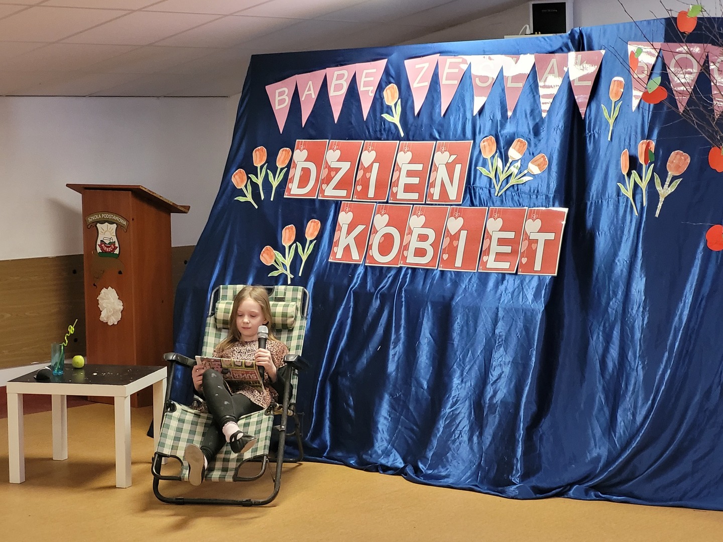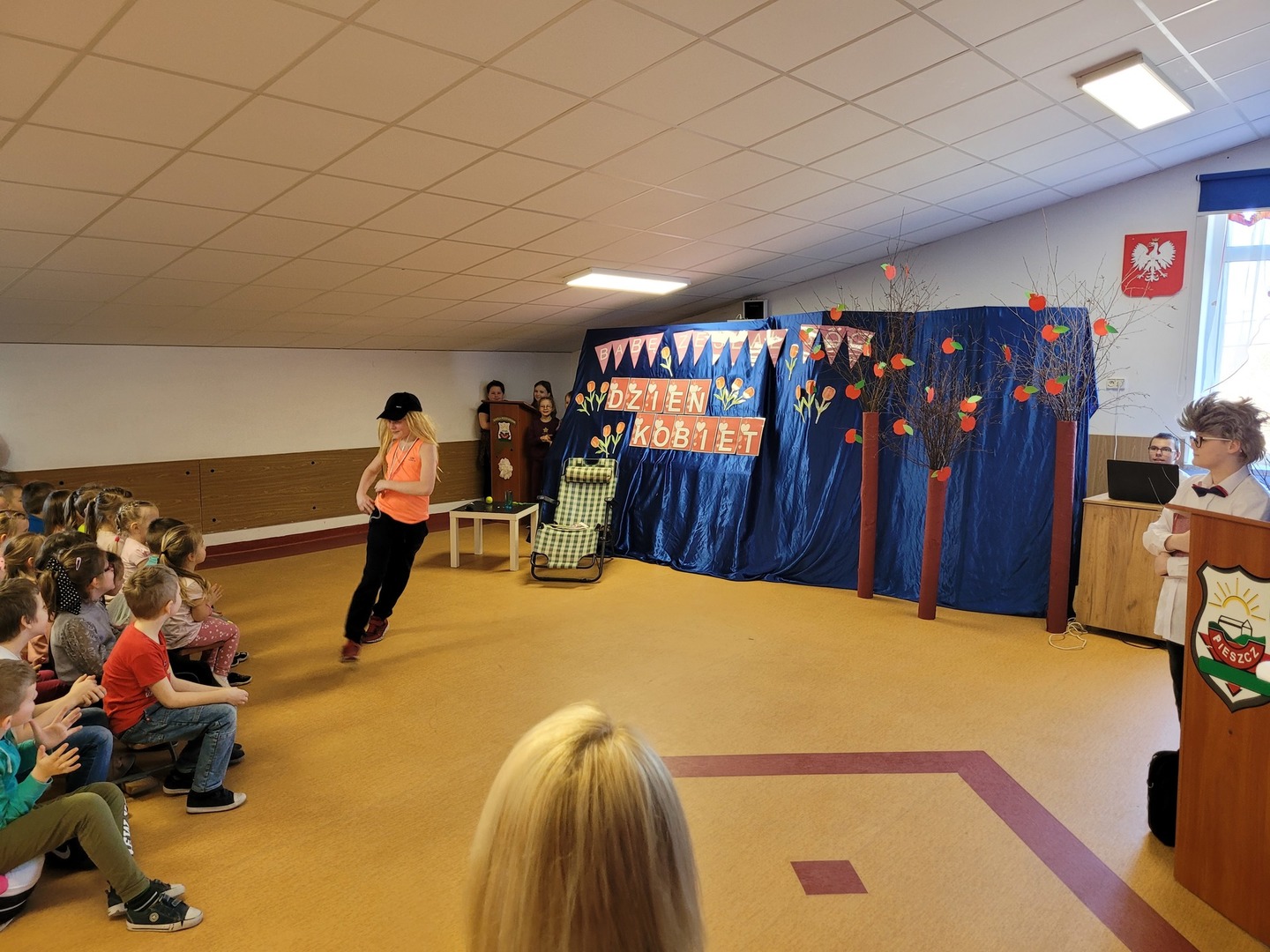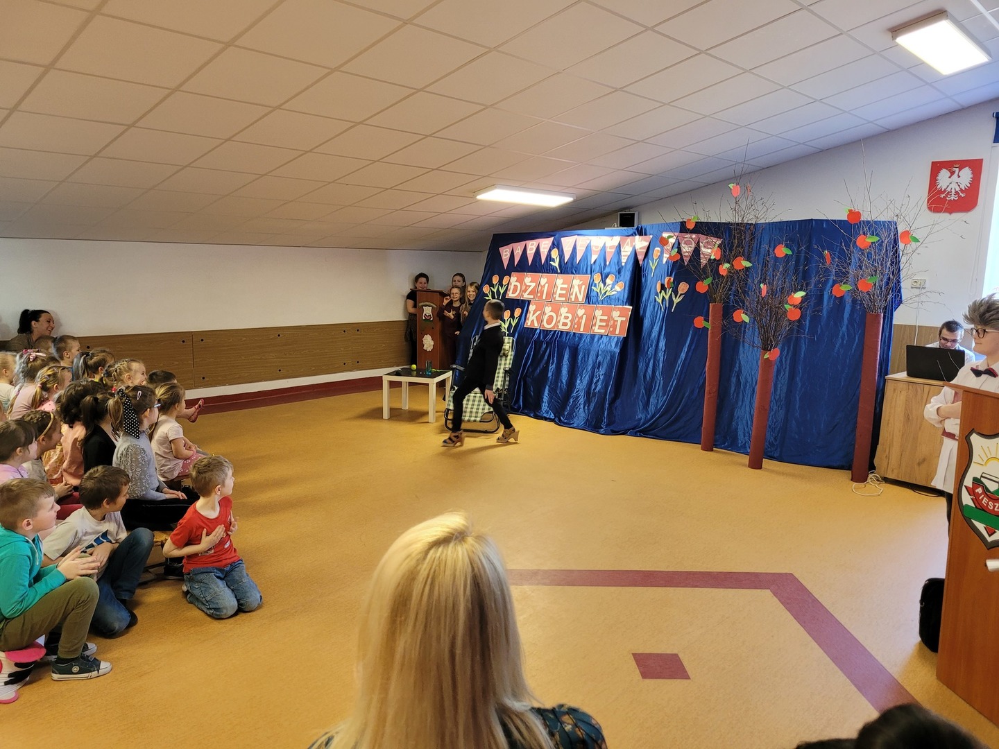 Scenariusz nawiązywał do Adama i Ewy, czyli biblijnych postaci. Przedstawienie w zabawny sposób pokazało pierwsze dni ich wspólnego życia, a znane polskie piosenki o kobietach porywały do tańca. Następnie panie z grona pedagogicznego odczytały znaczenia swoich imion i jak się okazało wszystko idealnie pasowało- no może poza drobnymi wyjątkami. Na koniec odbył się pokaz mody damskiej, a widzowie mogli obejrzeć różne stylizacje, np. bizneswoman, sportsmenki, feministki czy kokietki. Niespodziankę zrobili tu chłopcy, bo to oni przebrali się w przygotowane kreacje, a nawet odważyli się przejść po wybiegu w krótkich spódniczkach i szpilkach.