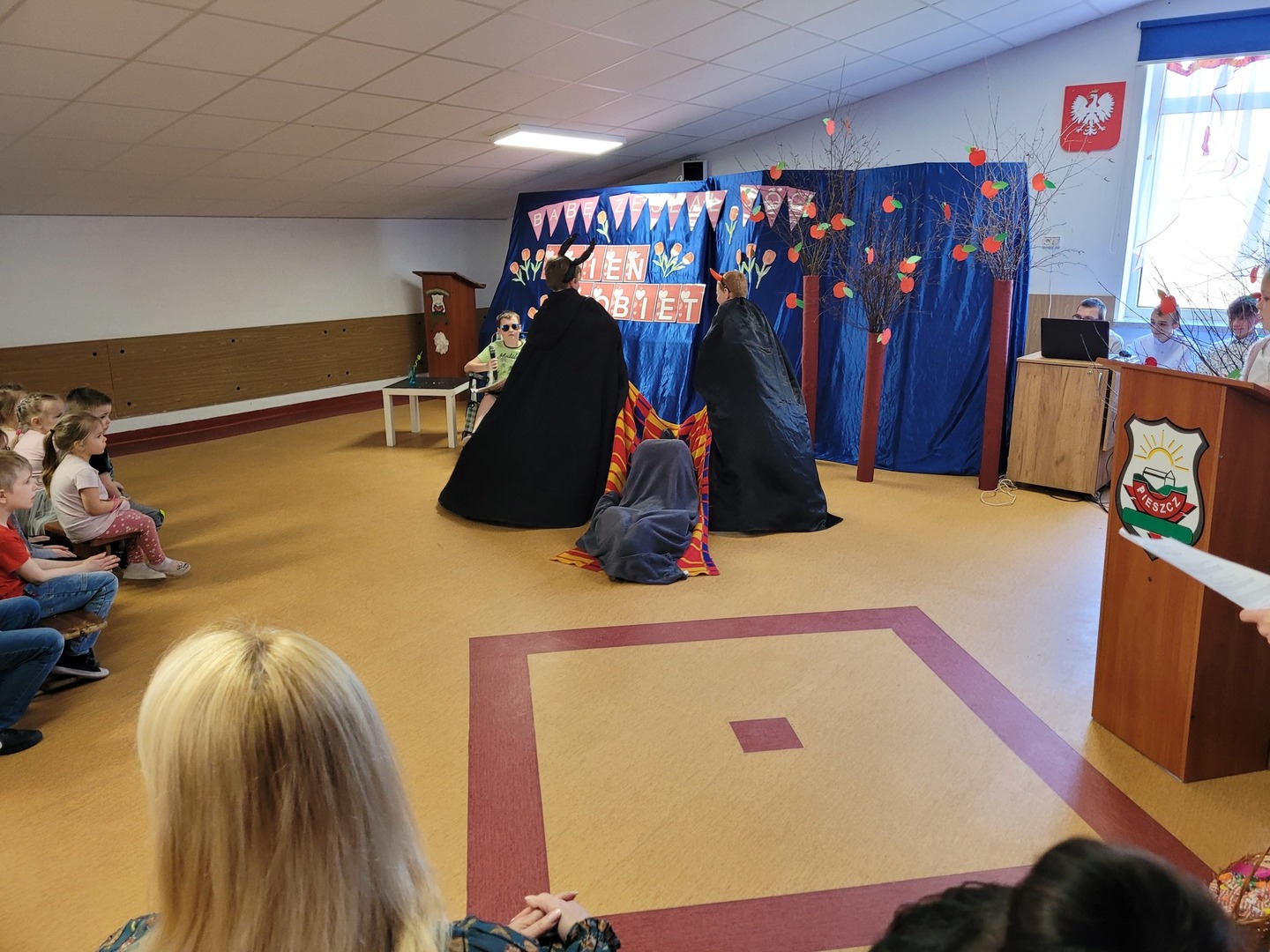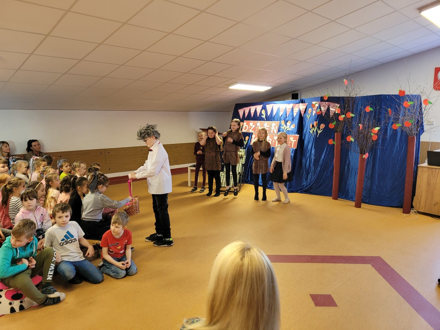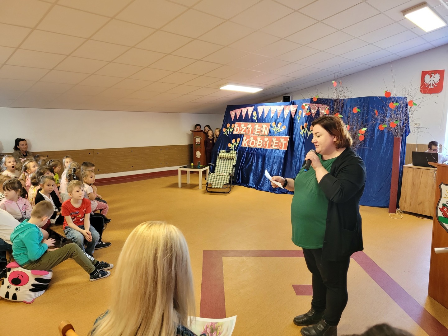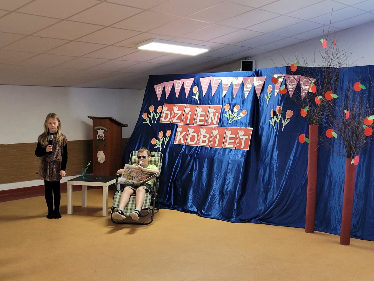 Scenariusz nawiązywał do Adama i Ewy, czyli biblijnych postaci. Przedstawienie w zabawny sposób pokazało pierwsze dni ich wspólnego życia, a znane polskie piosenki o kobietach porywały do tańca. Następnie panie z grona pedagogicznego odczytały znaczenia swoich imion i jak się okazało wszystko idealnie pasowało- no może poza drobnymi wyjątkami. Na koniec odbył się pokaz mody damskiej, a widzowie mogli obejrzeć różne stylizacje, np. bizneswoman, sportsmenki, feministki czy kokietki. Niespodziankę zrobili tu chłopcy, bo to oni przebrali się w przygotowane kreacje, a nawet odważyli się przejść po wybiegu w krótkich spódniczkach i szpilkach.