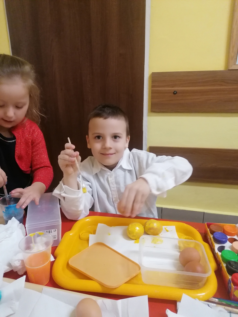 W tym dniu malowaliśmy też jajka, przypomnieliśmy sobie tradycje wielkanocne i życzyliśmy sobie wszystkiego dobrego.