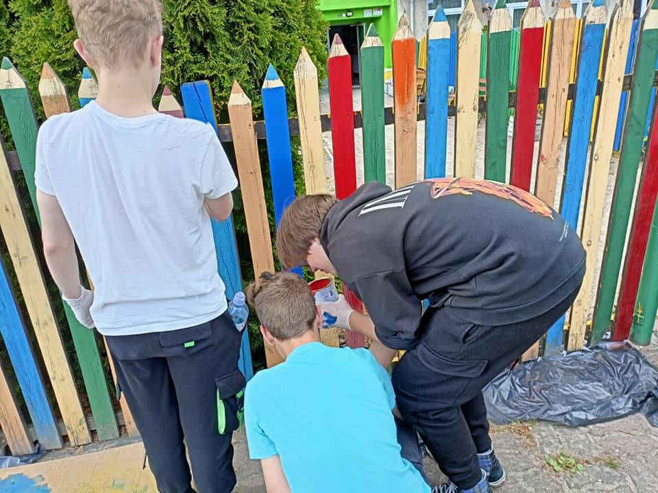 Odnawiamy płot wokół naszej szkoły Bardzo dziękuję klasie 7 za ogromne zaangażowanie M. Gastół