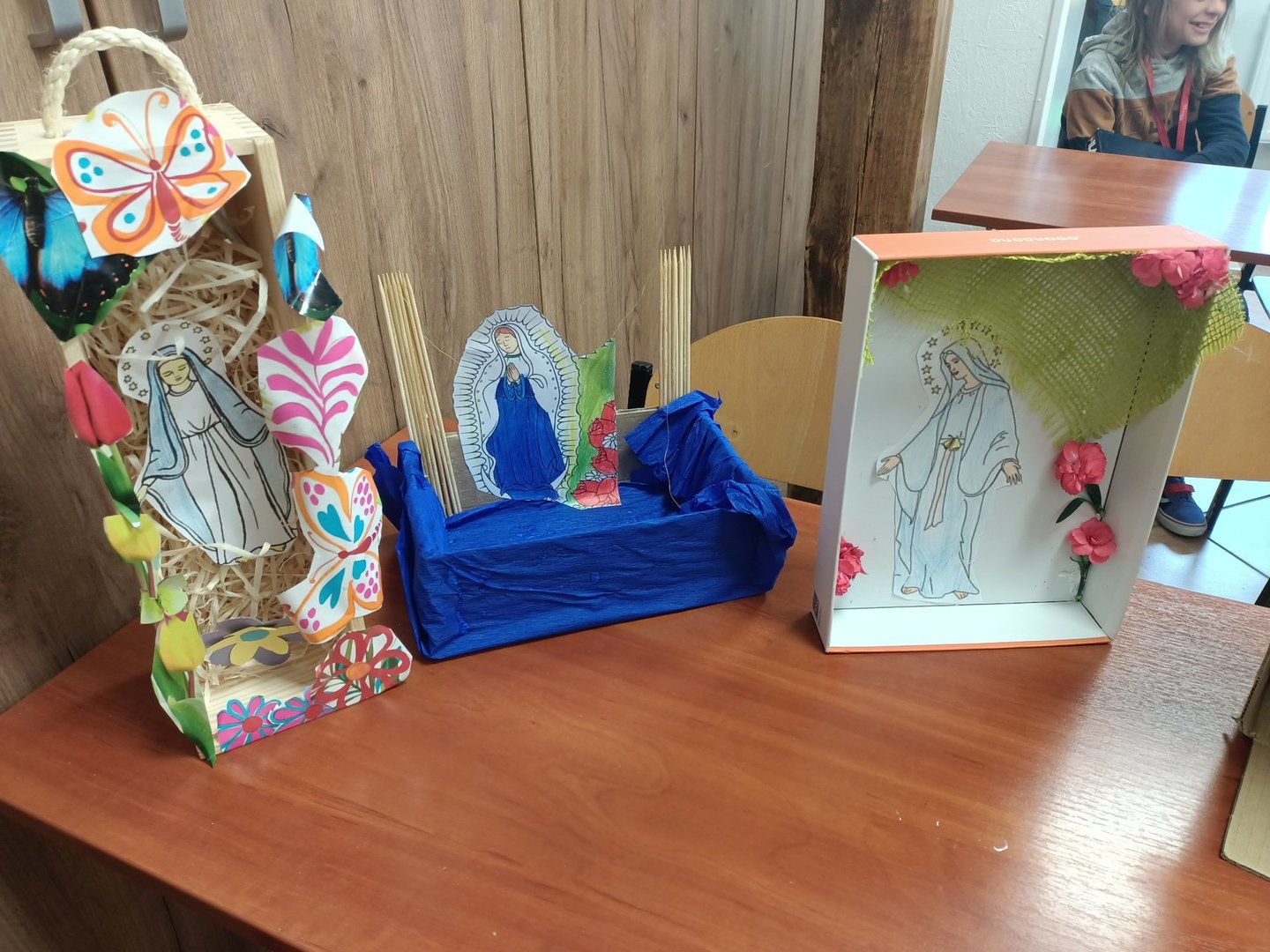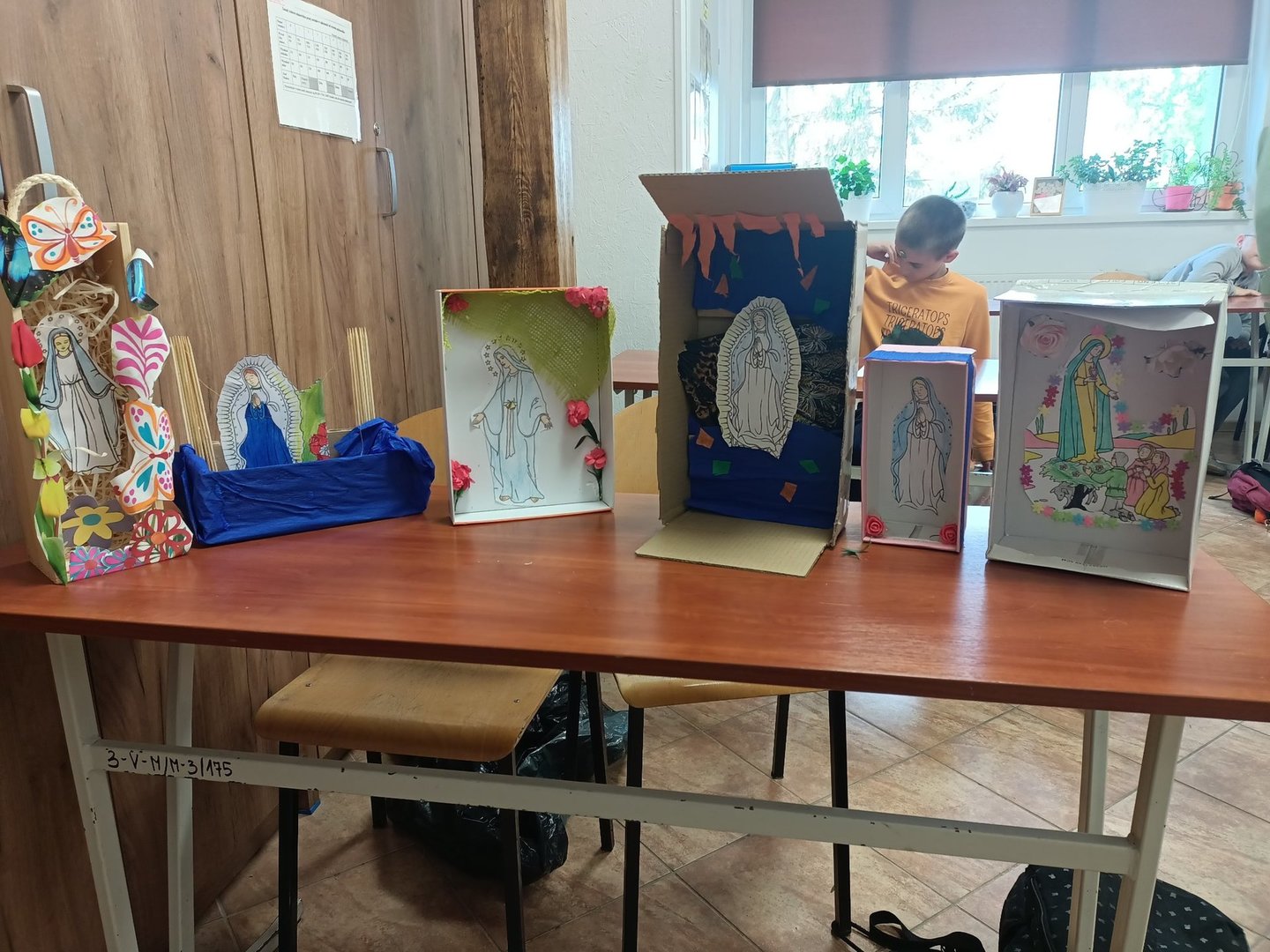 Dziś ostatni dzień maja, to miesiąc, w którym sposób szczególny modlimy się do Maryi, Matki Bożej. Właśnie w tym czasie, na katechezie odmawialiśmy Litanie Loretańską oraz wykonaliśmy kapliczki Maryi, które złożyliśmy na Mszy Świętej w darach jako wyraz naszej pracy i miłości.