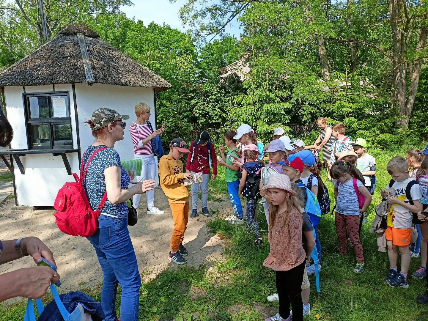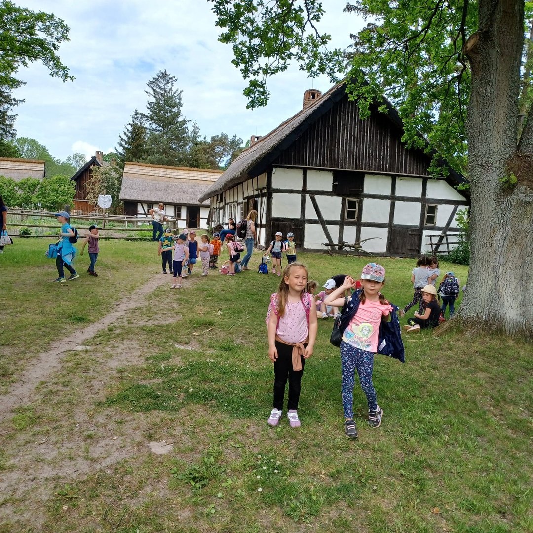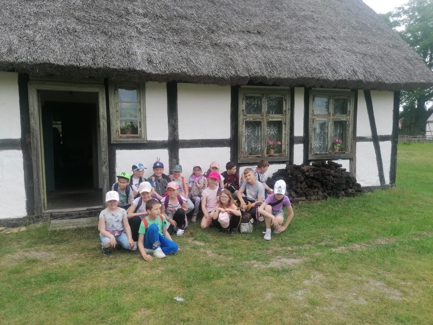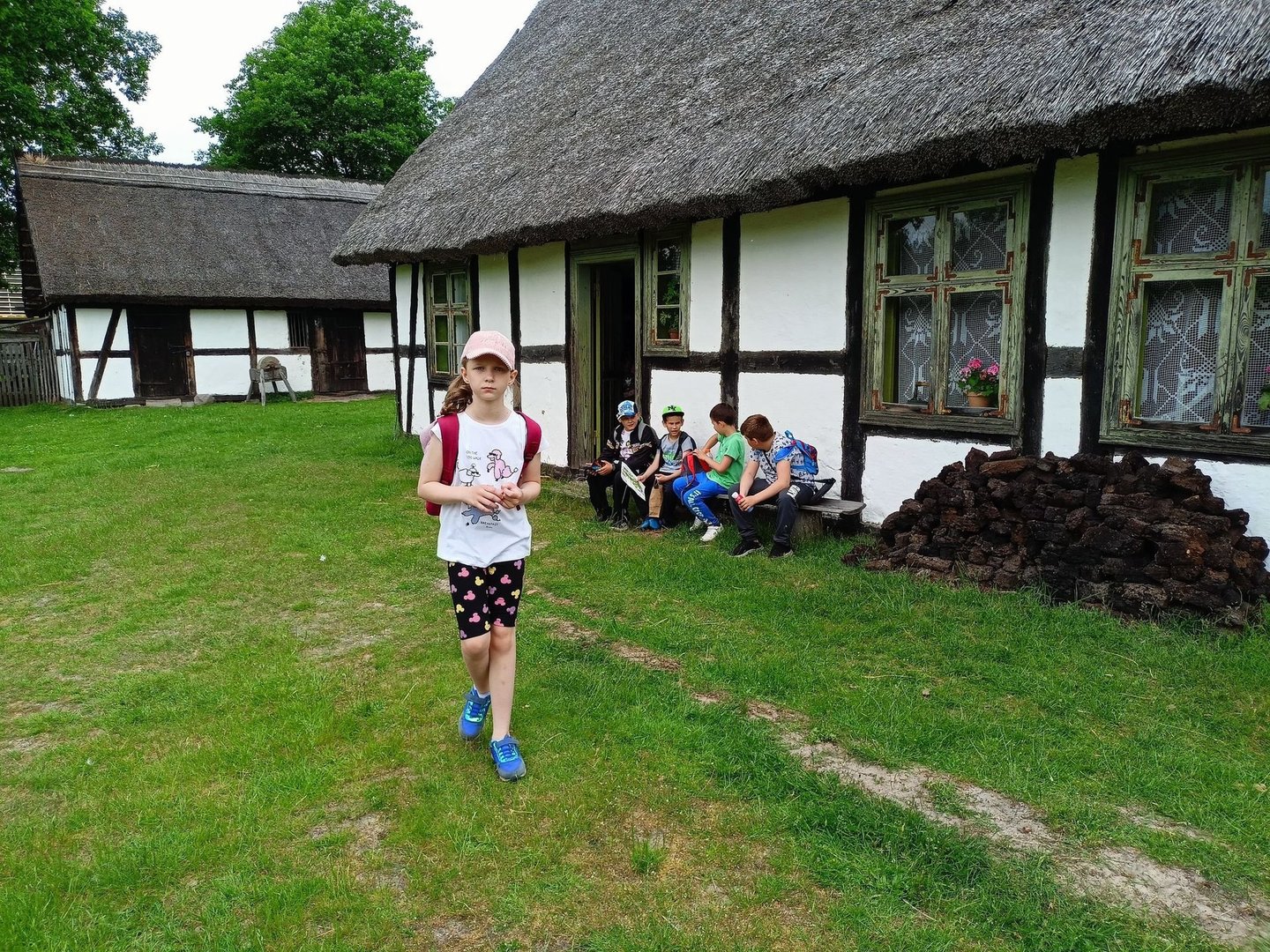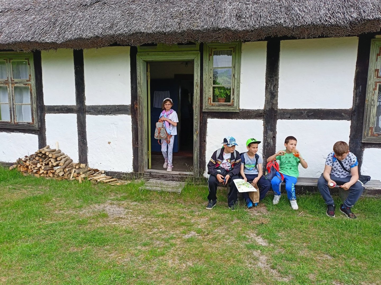 Uczniowie klas młodszych oraz dzieci z małego przedszkola dnia 09. 06 uczestniczyli w wycieczce do Muzeum Wsi Słowińskiej w Klukach. Tam rozumie się znaczenie słów"czas się zatrzymał". Po obu stronach drogi, w samym sercu wsi Kluki, dojrzeć można dawne słowańskie zagrody, chaty w kratę, kryte strzechą oraz budynki gospodarcze. Znajdują się również dawne rolnicze sprzęty i maszyny. Pod chałupami leżały kostki wysuszonego torfu, wisiały rybackie sieci,grabie czy nosidła do wody. Panował spokój i cisza, przerywana tylko śpiewem ptaków oraz czerwcowym kumkaniem żab.