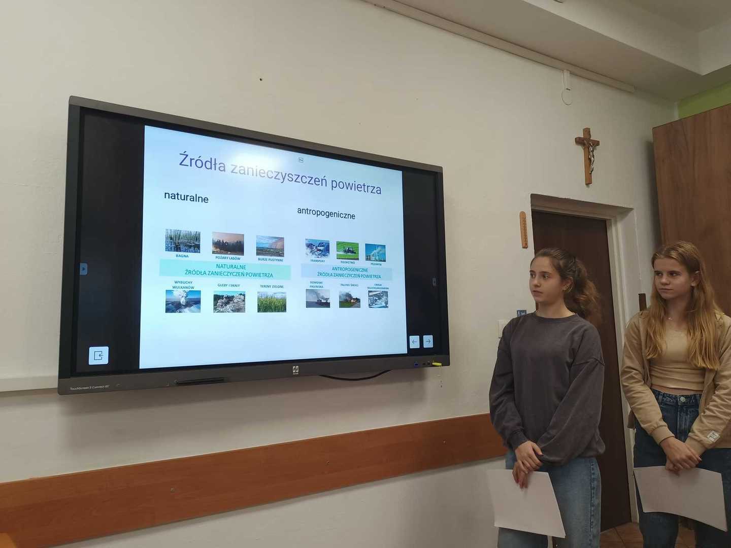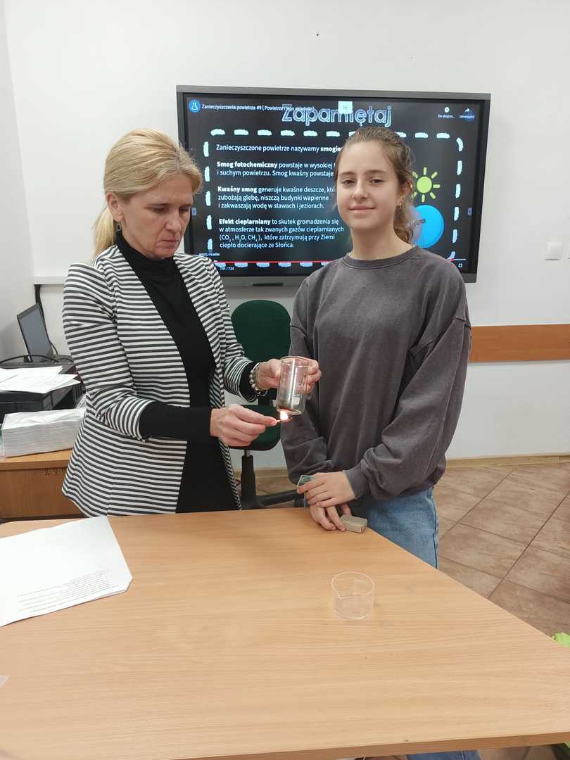 Hania i Marysia w roli nauczycieli chemii. W ramach programu Edukacyjnej Sieci Antysmogowej - ESA przystąpiliśmy do realizacji zadań dotyczących zanieczyszczeń powietrza. Dziewczyny przygotowały materiały, zadania, filmik, doświadczenie oraz quizy. Brawo za pomysłowość