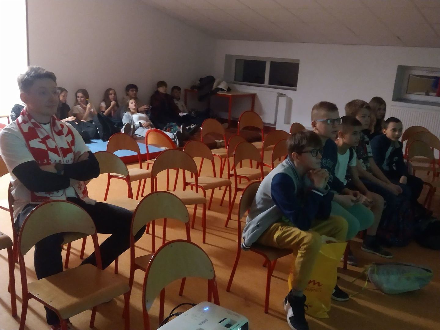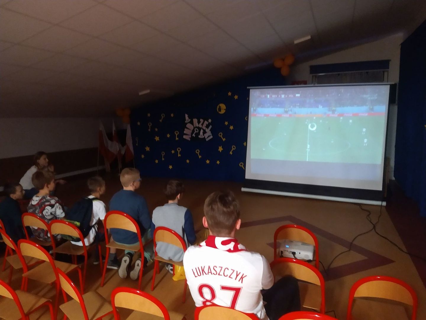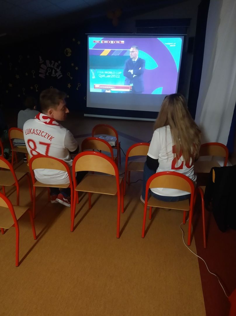 We wtorek 22 listopada o godz. 17:00 zaczęły się dla Reprezentacji Polski Mistrzostwa Świata w piłce nożnej! Naszym pierwszym rywalem był Meksyk. Z tej też okazji Pan Bartek z pomocą Pana Łukasza zorganizowali strefę kibica na naszej szkolnej widowni, aby wraz z uczniami móc przeżyć to światowe widowisko. Cóż, mecz niestety zakończył się wynikiem 0:0 dając Polsce zaledwie 1 punkt w grupie. Nasz kapitan Robert Lewandowski pomimo gorącego dopingu naszych uczniów nie wykorzystałkarnego. Co może cieszyć to fakt, że w końcu Polska przełamała niefortunną passę przegranych meczów otwarcia w turniejach co oznacza, ze jesteśmy nadal w grze o wyjście z grupy! Naszym kolejnym rywalem będzie Arabia Saudyjska, która okazała się sensacją Mistrzostw Świata pokonując tego samego dnia Argentynę 2:1! Nie poddajemy się! Mocno trzymajmy kciuki w sobotę 26 listopada o godz. 14:00. Do boju Polsko!