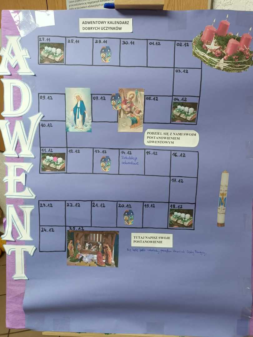 Zachęcamy uczniów,nauczycieli,rodziców i gości naszej szkoły do wpisania adwentowego postanowienia na tablicy,która znajduje się w korytarzu wejściowym szkoły.Wspólnie, według kalendarza adwentowego oczekujemy na przyjście Pana!