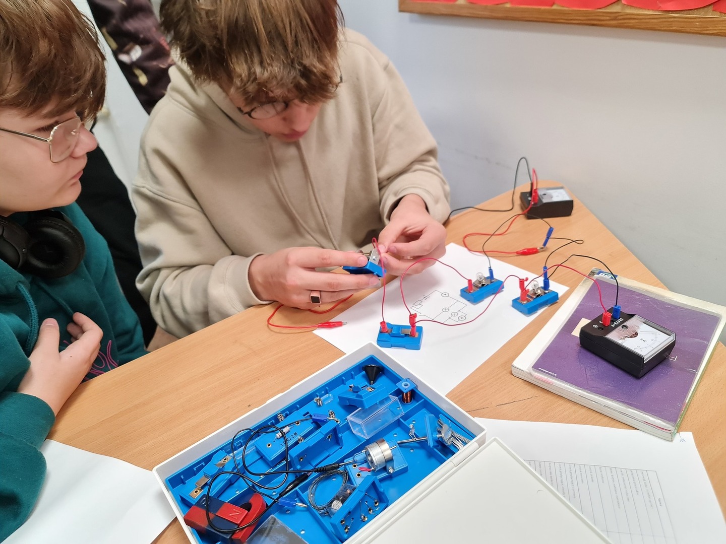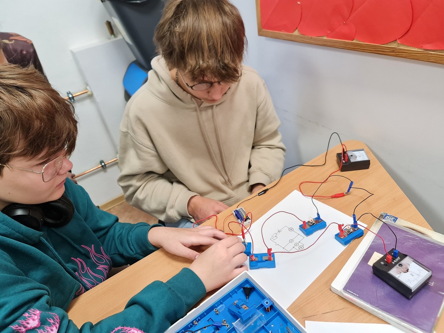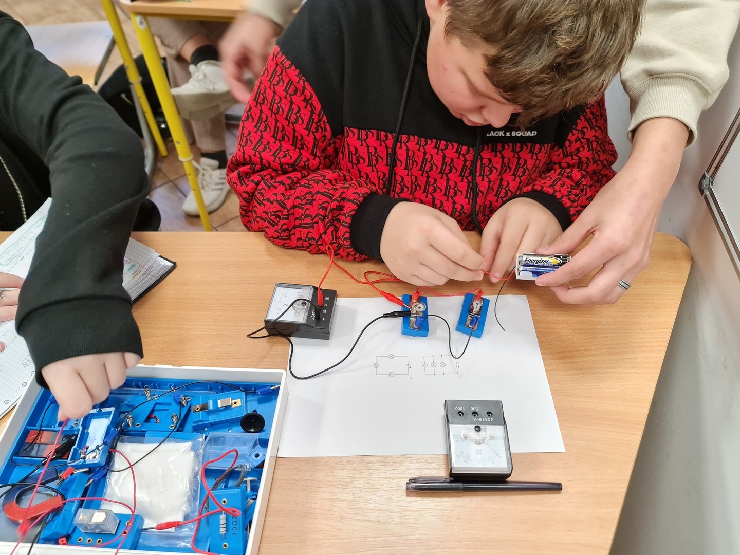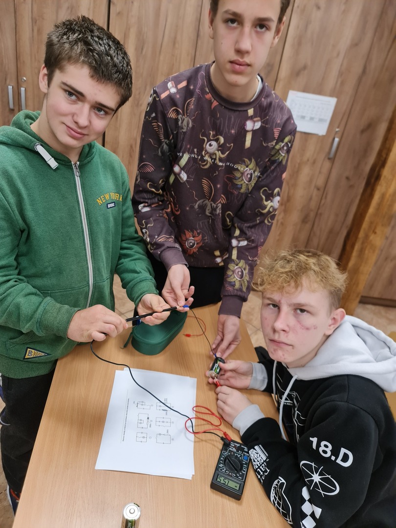 Na lekcji fizyki uczniowie klasy 8 poznawali tajniki obwodu elektrycznego. Po zapoznaniu się podstawowymi zasadami bezpieczeństwa w podłączaniu urządzeń elektrycznych przeszli do praktyki. Wykonano kilkanaście kart pracy z narysowanymi obwodami elektrycznym. Dzięki możliwości zakupienia z programu „LABORATOIA PRZYSZŁOŚCI” każdy uczeń mógł samodzielnie podłączyć swój obwód elektryczny. Jak widać na zdjęciach uczynią bardzo się podobało.