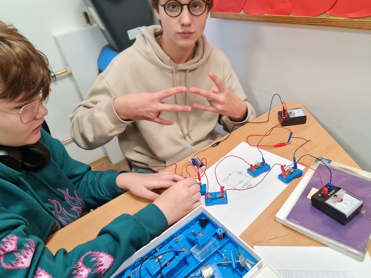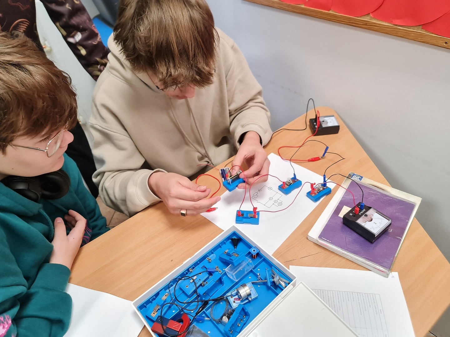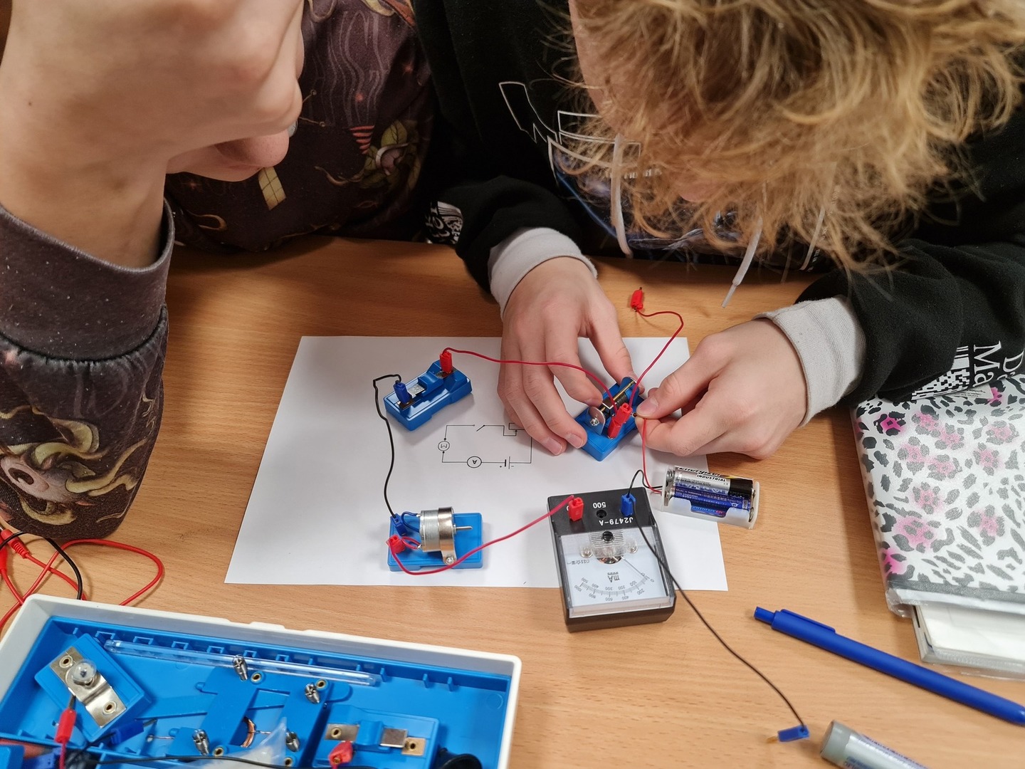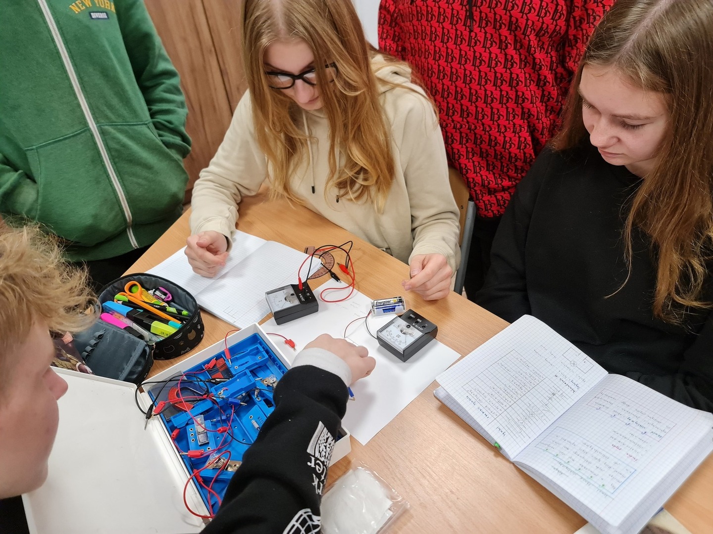 Na lekcji fizyki uczniowie klasy 8 poznawali tajniki obwodu elektrycznego. Po zapoznaniu się podstawowymi zasadami bezpieczeństwa w podłączaniu urządzeń elektrycznych przeszli do praktyki. Wykonano kilkanaście kart pracy z narysowanymi obwodami elektrycznym. Dzięki możliwości zakupienia z programu „LABORATOIA PRZYSZŁOŚCI” każdy uczeń mógł samodzielnie podłączyć swój obwód elektryczny. Jak widać na zdjęciach uczynią bardzo się podobało.