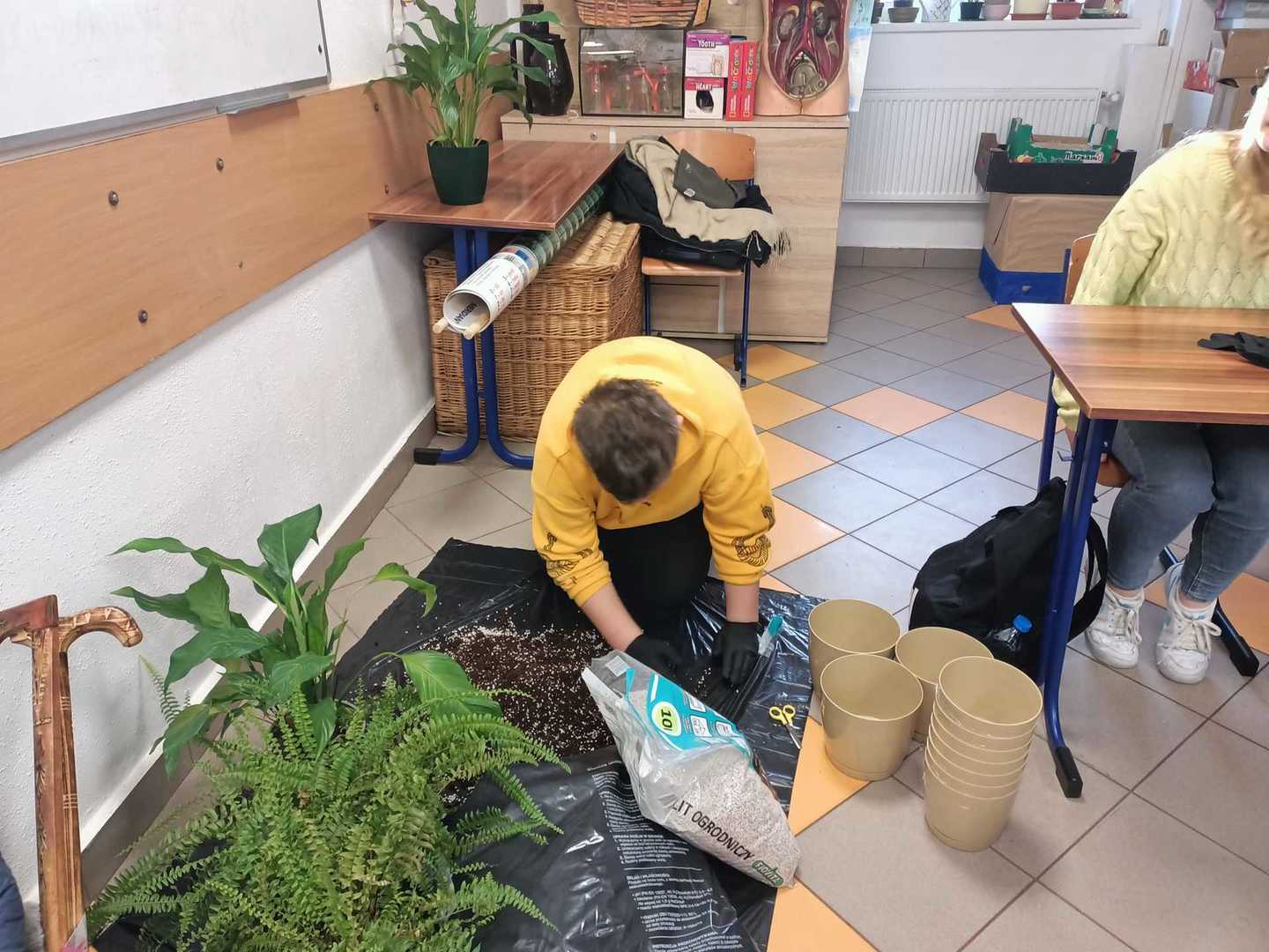 Dziś pracowicie....dbamy o nasze rośliny w pracowni biologicznej.....i czekamy z utęsknieniem na wiosnę