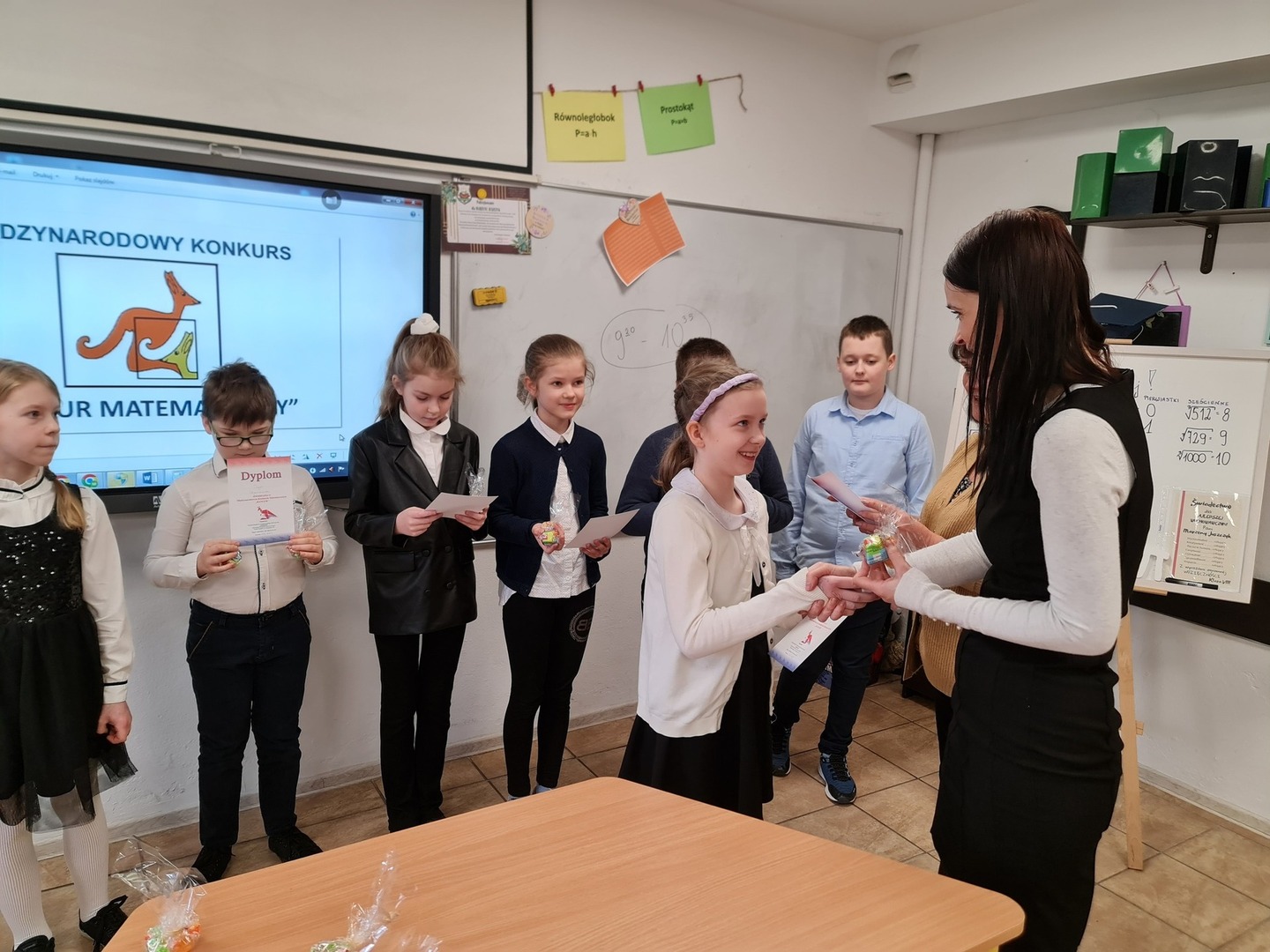 Dziś tj. 16 marca w naszej szkole odbył się konkurs matematyczny znany na całym świecie pt. „Kangur Matematyczny”. Nasi uczestnicy elegancko ubrani przybyli punktualnie do pracowni matematycznej. Co prawda emocjom towarzyszył stres, ale było to okazja do sprawdzenia swojej wiedzy i logicznego myślenia. Ponadto na każdego uczestnika czekała skromna nagroda i dyplom. Dziś nie było przegranych, dziś byli wygrani