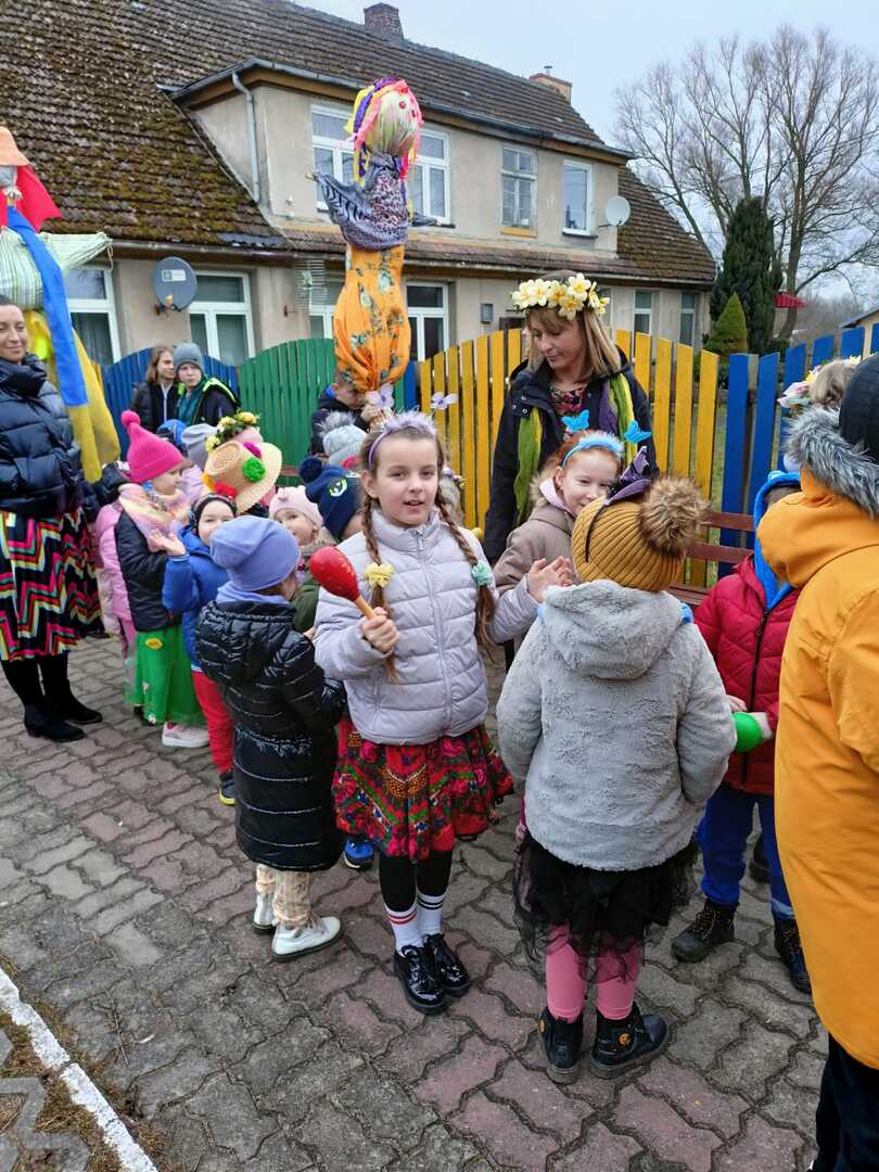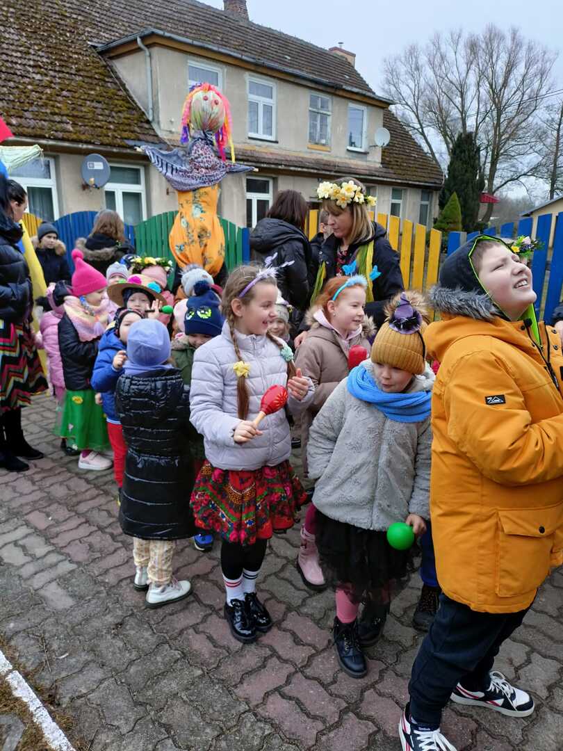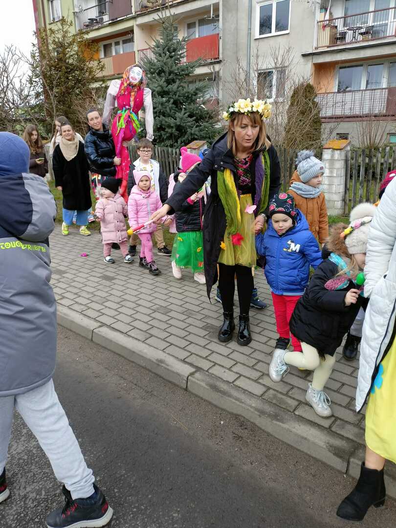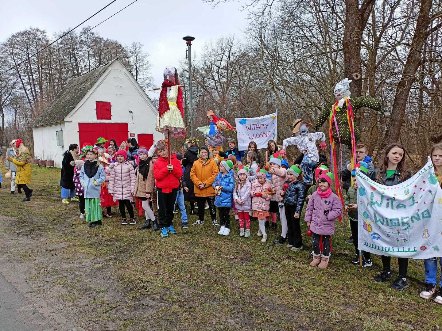 I dzień wiosny w naszej szkole zapisał sie na stałe w kalendarzu i do tego dnia cała społeczność szkolna się przygotowuje.Tego dnia stawiamy na dobrą zabawę i różnorodność kolorów wiosennych. Można zaszaleć z modą i wystylizować się. Tradycja wykonania Marzanny zakorzeniona w obrzędach wiosennych wykonana przez uczniów w tym roku nawiązywała do staropolskiego zwyczaju. Barwny korowód wyruszył ulica Pieszcza aby obwieścić że nadchodzi wiosna.