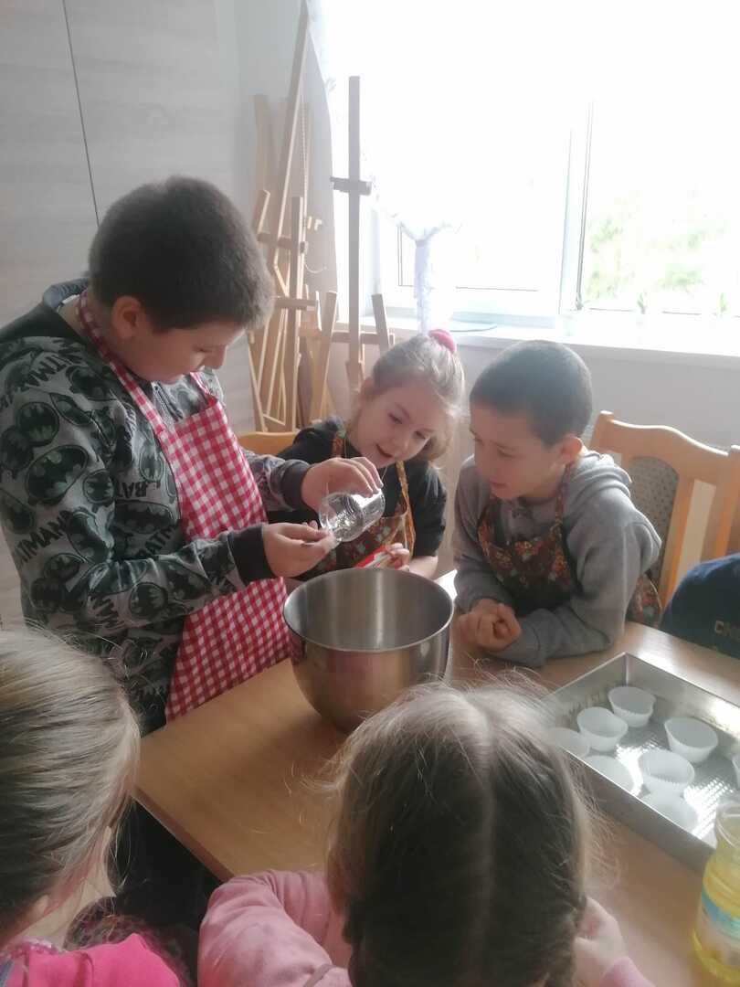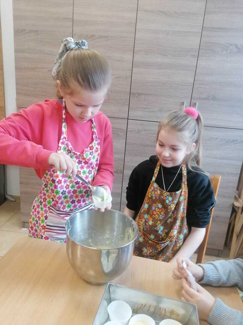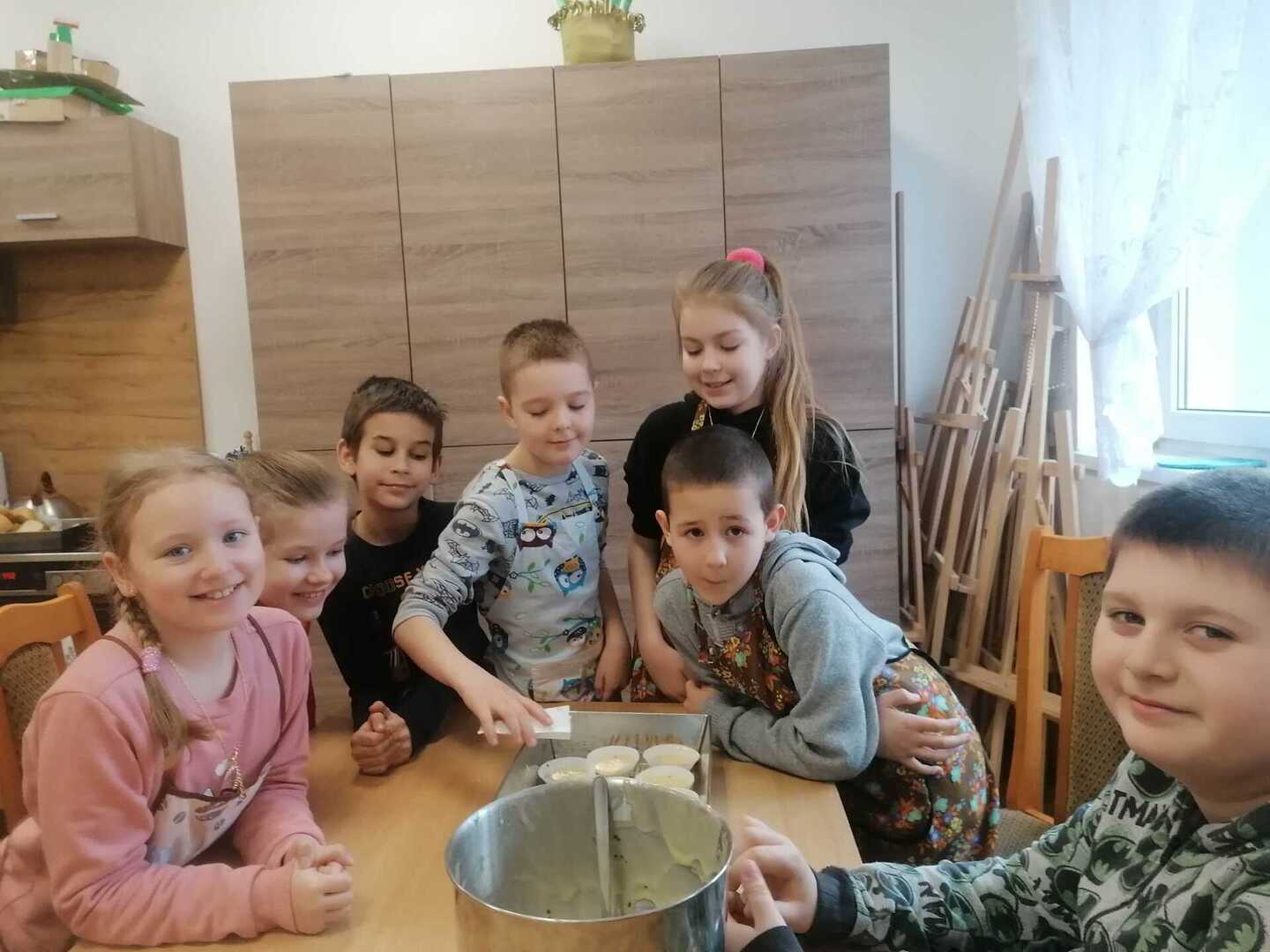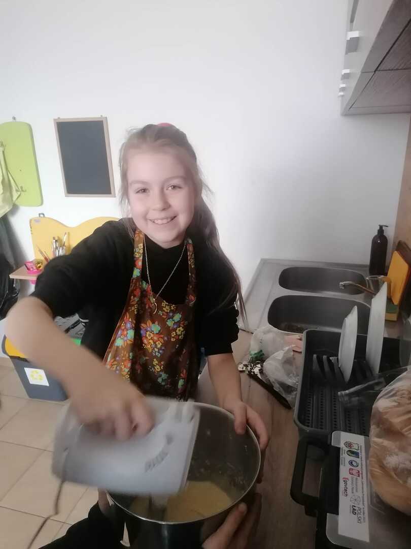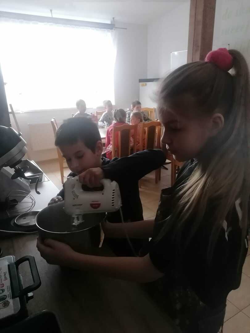 Uczniowie klas młodszych na zajęciach kreatywno-rozwijajacych kultywowali tradycje związane ze Świętami Wielkanocnymi. Dzieci wykonały babeczki z posypką czekoladową. 🥯🍪🍩