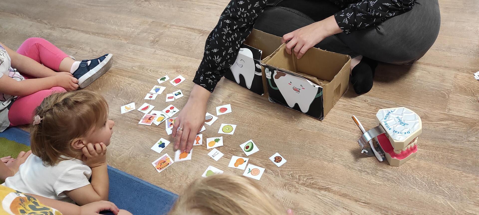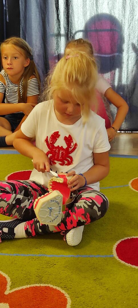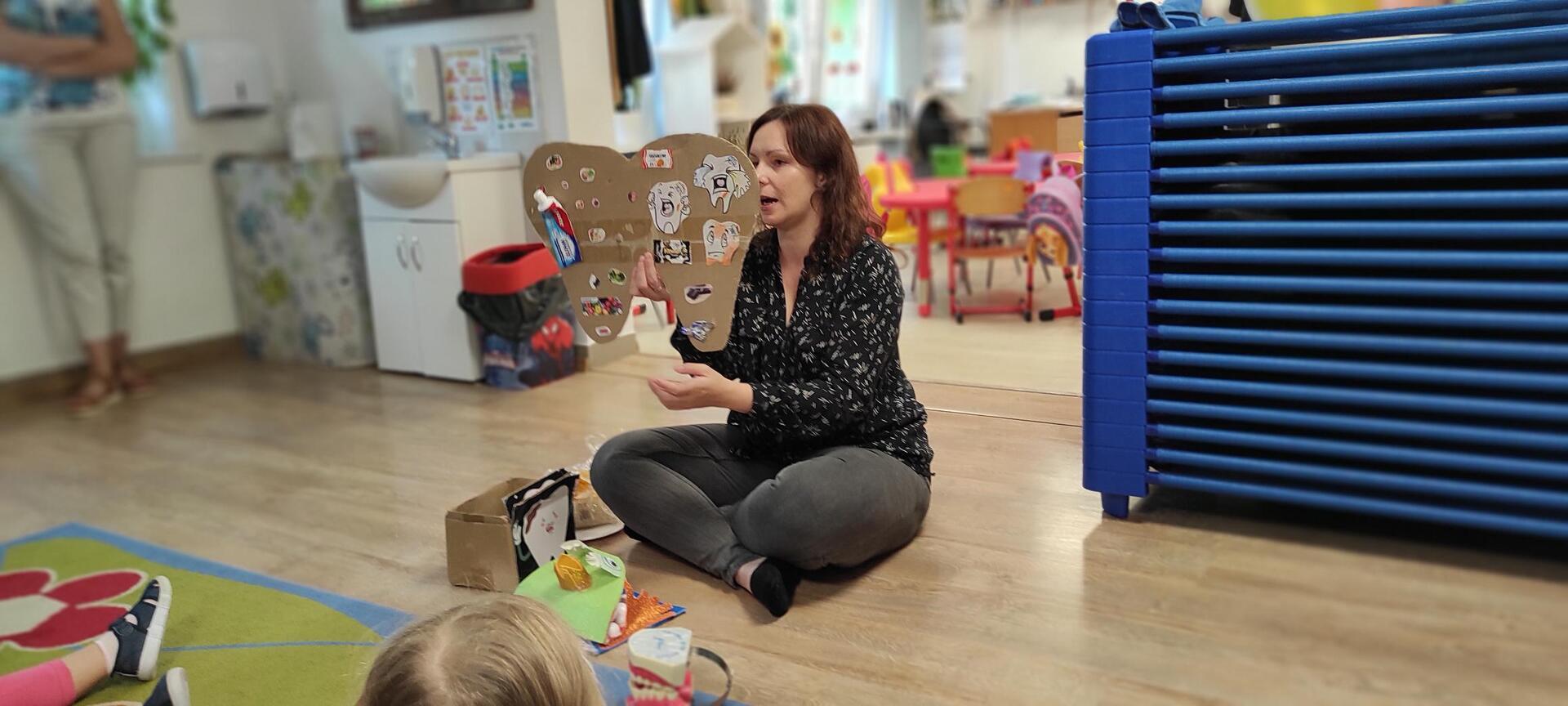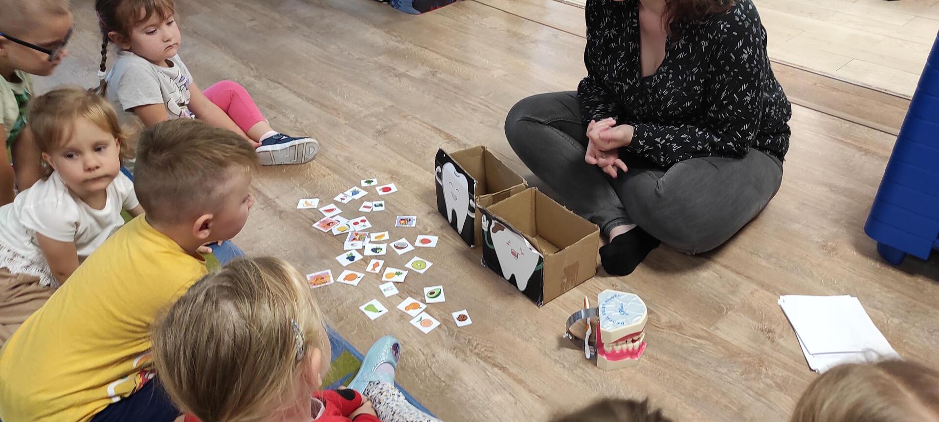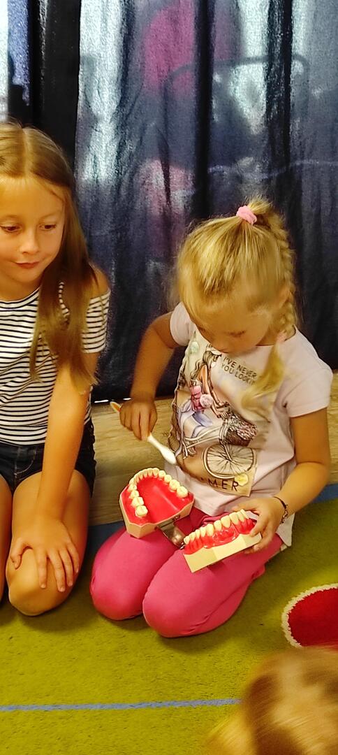 Dnia 18.09 gościem przedszkolaków i zerówki była Pani Magdalena Kruk promotor zdrowia z PSSE Sławno z prelekcją na temat profilaktyki próchnicy.