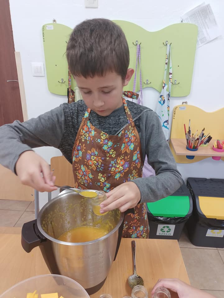 Uczestnicy zajęć kreatywno rozwijających przygotowali zdrowy i smaczny dżem z dyni.Do jego wykonania użyto ekologicznych dyni, jabłek oraz wielu serc w podziękowaniu dla naszych seniorów.