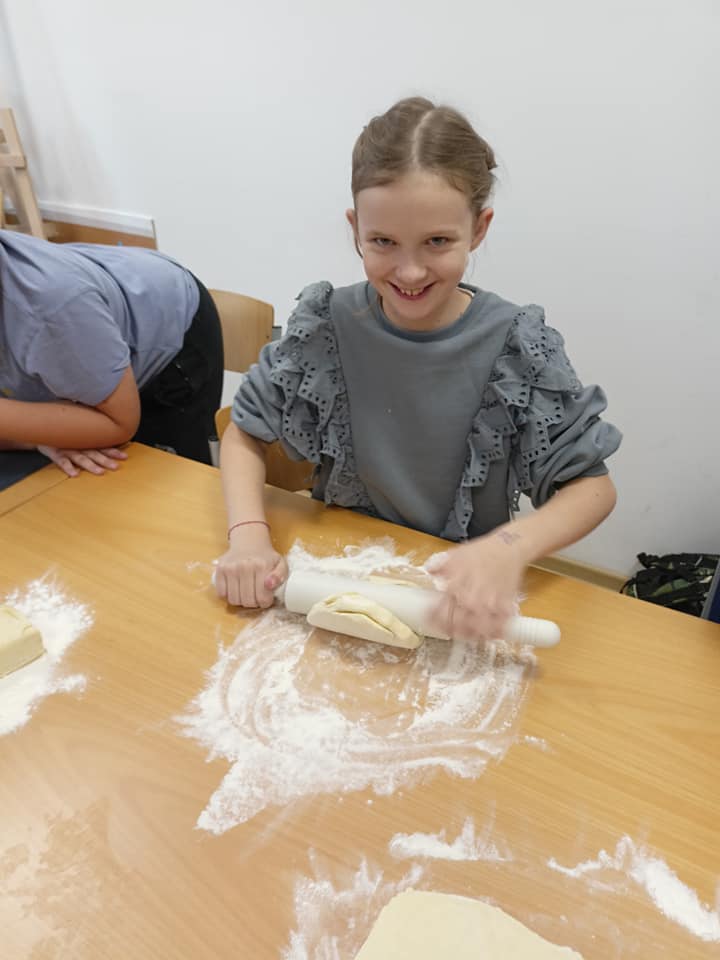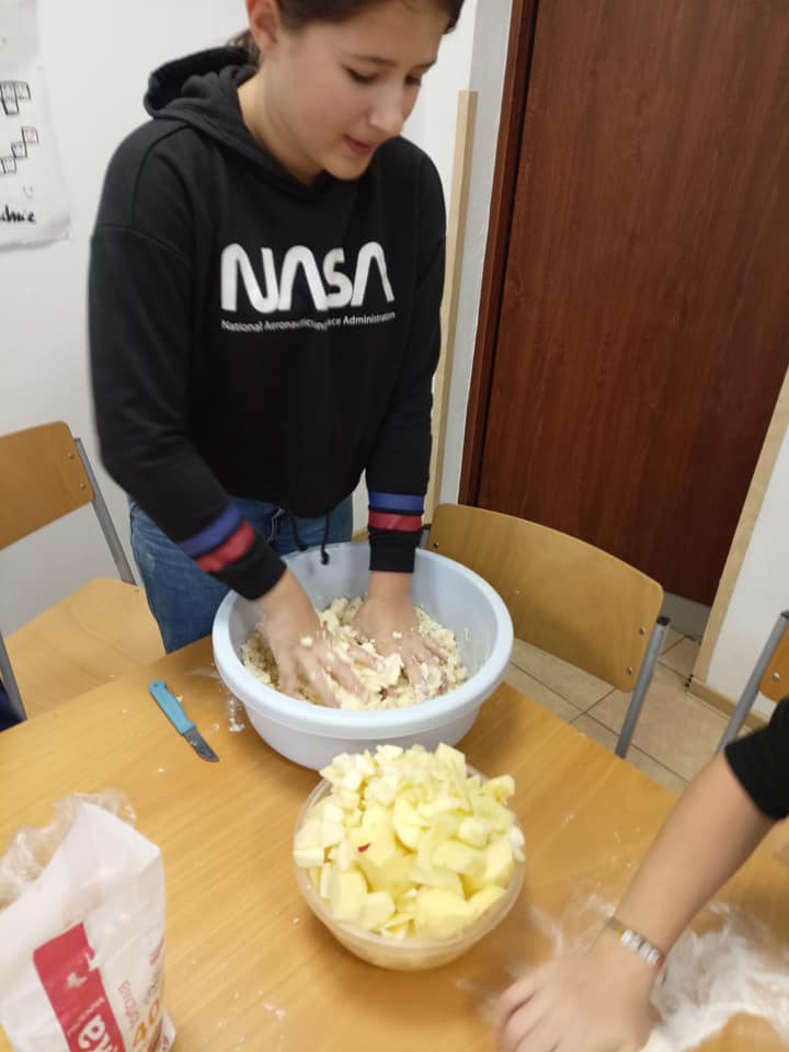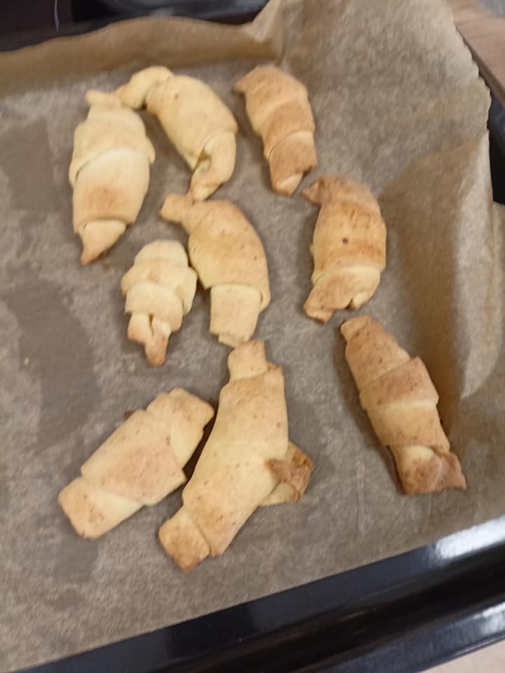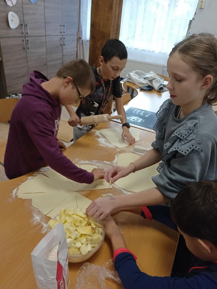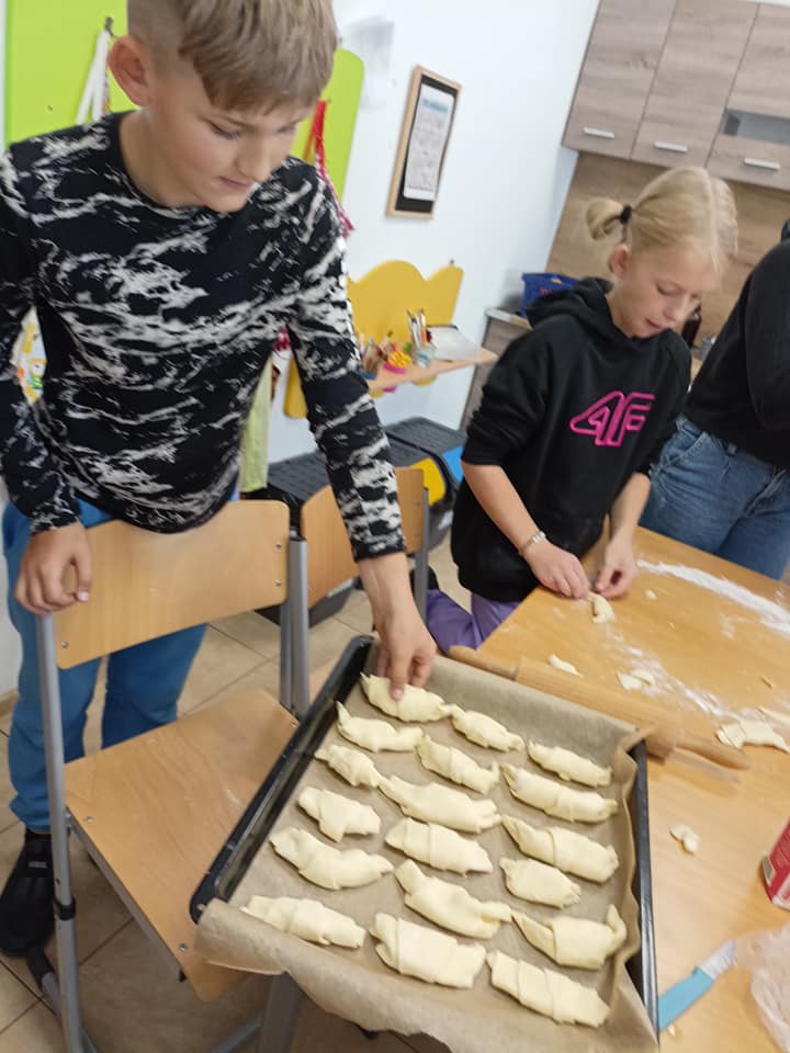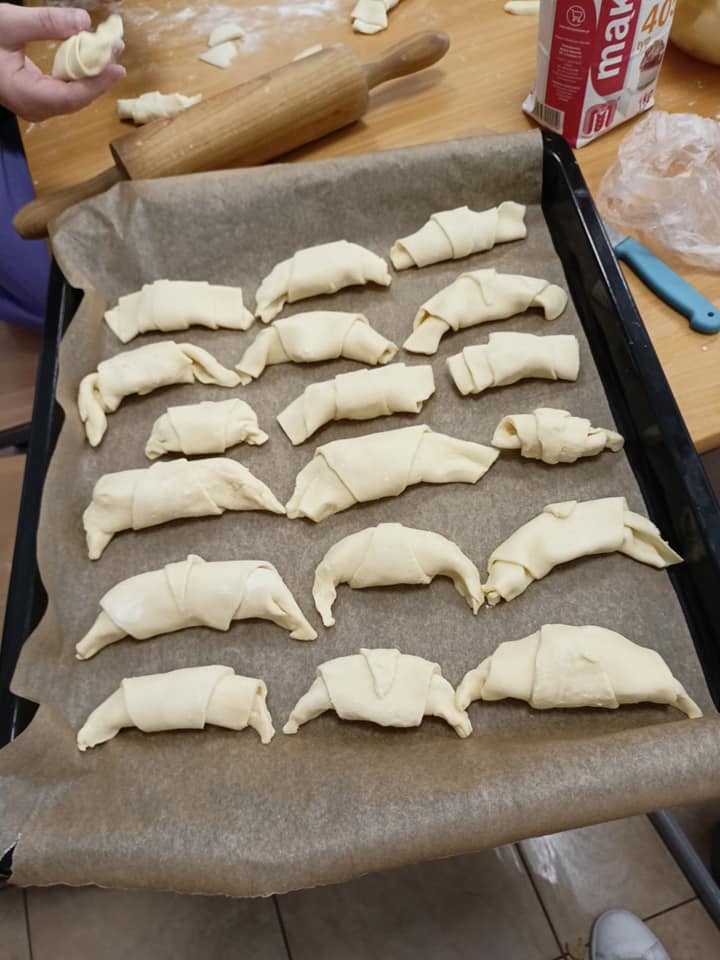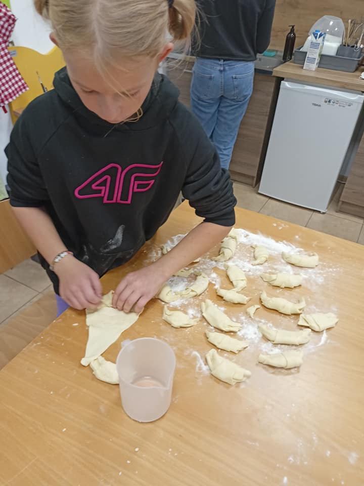 Na zajęciach rozwijających kreatywność uczniów starsza grupa upiekła rogaliki z jabłkiem według niezawodnej receptury naszej Pani Dyrektor 🥐