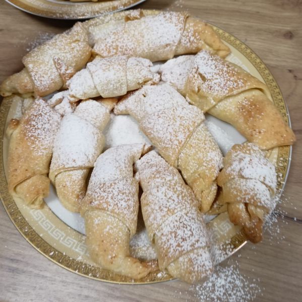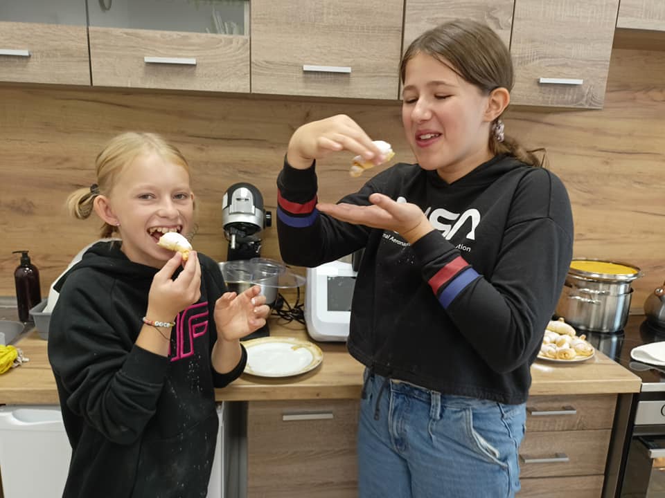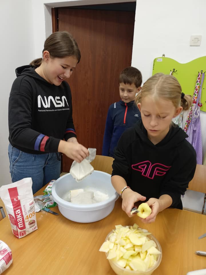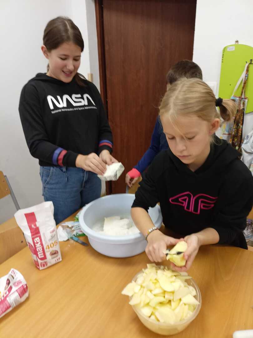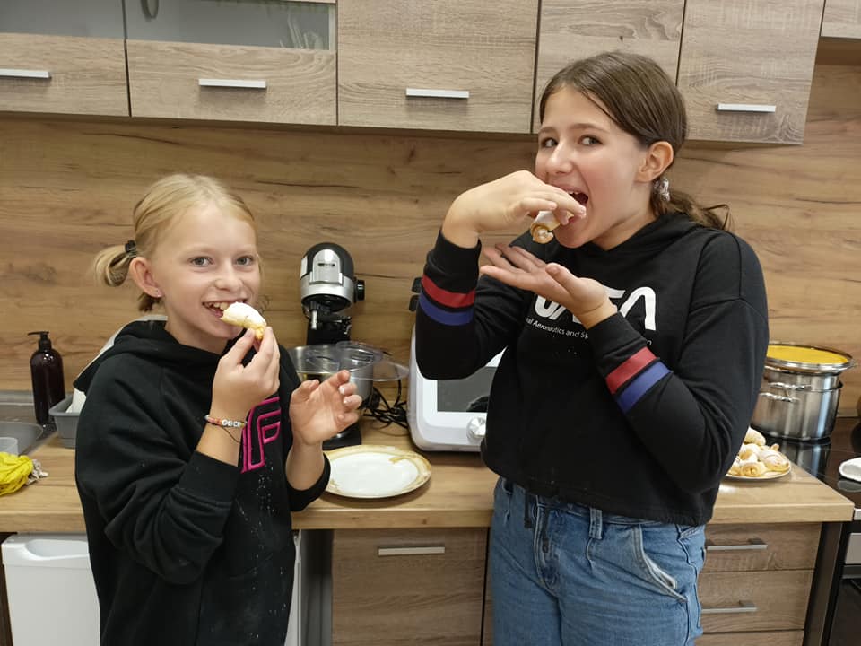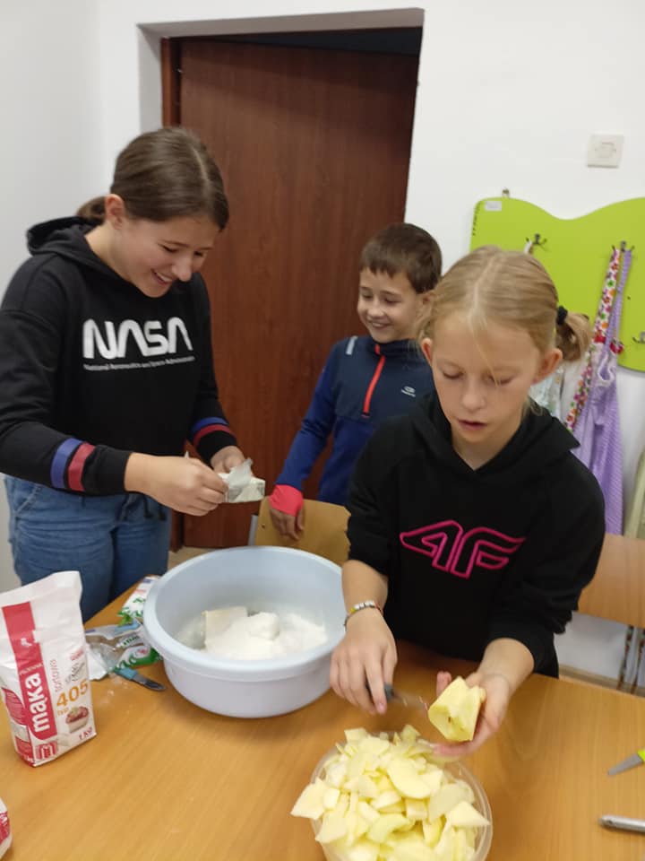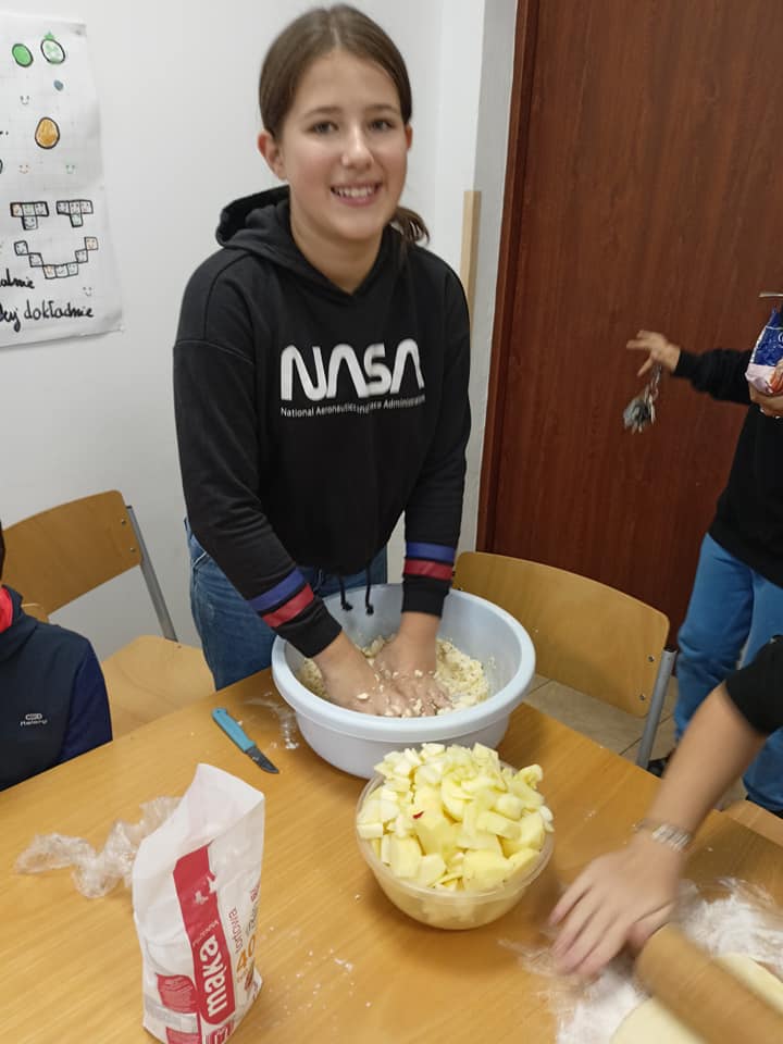 Na zajęciach rozwijających kreatywność uczniów starsza grupa upiekła rogaliki z jabłkiem według niezawodnej receptury naszej Pani Dyrektor 🥐