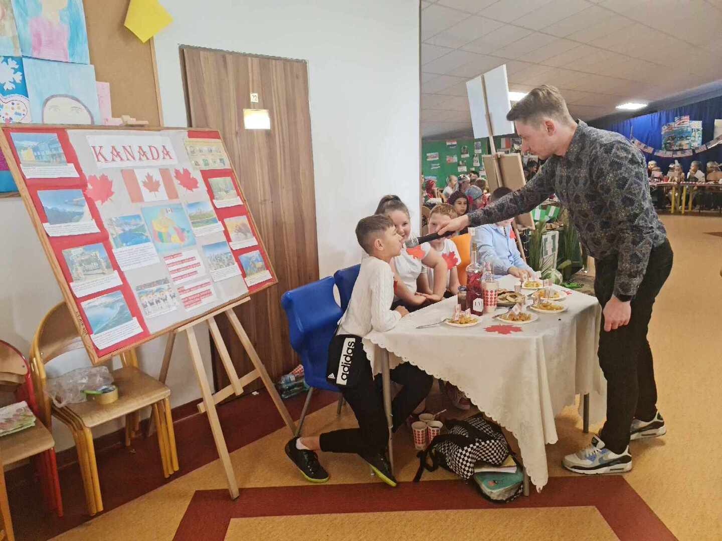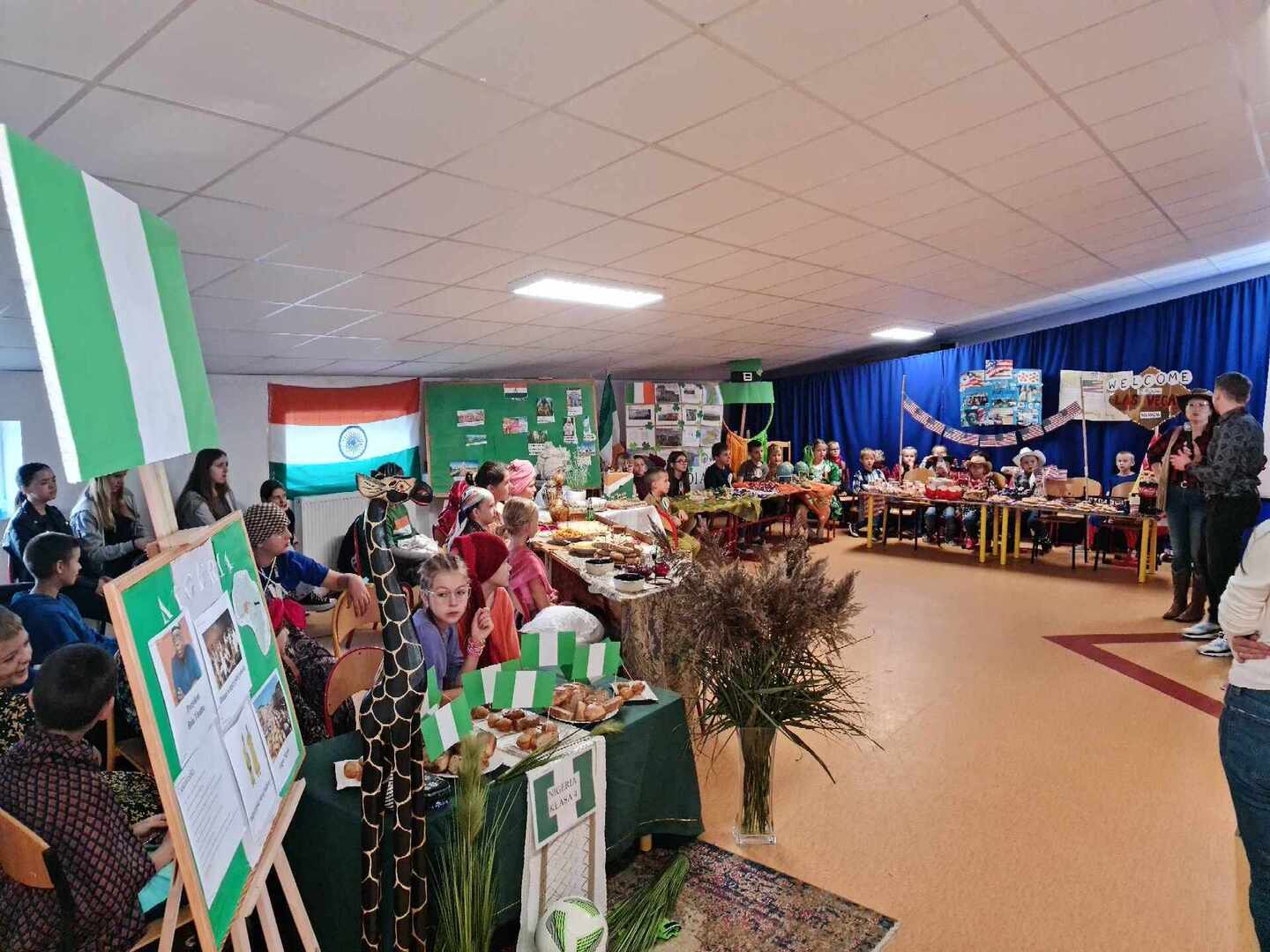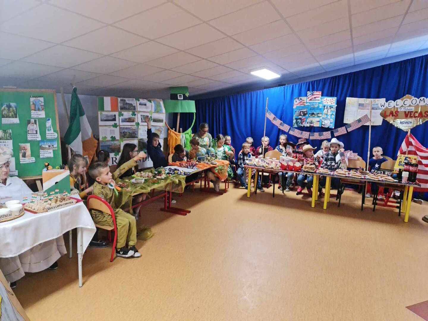 GUESS WHAT?! 11 października odbył się ponownie Międzynarodowy Dzień Języków Obcych w naszej pieszczańskiej szkole! W tej edycji gościliśmy kraje anglojęzyczne z całego świata! Celem tego było szerzenie świadomości, że język angielski jest wszechobecny i uniwersalny. W tym dniu mieliśmy szansę poznawać kultury Anglii, USA, Irlandii, Nigerii, Indii, Kanady, Australii oraz Nowej Zelandii. Nasi wychowankowie wraz z pomocą rodziców przygotowali pyszne potrawy, kolorowe stroje, liczne gazetki, prezentacje multimedialne, a nawet występy taneczne! Na szczególną uwagę zasługuje nowoczesny taniec amerykański w wykonaniu zerówki, indyjski taniec „TUNAK TUNAK” piątoklasistów oraz wojowniczy taniec maoryski „HAKA” przedstawiony przez klasę ósmą. Ponadto uczniowie mieli za zadanie przygotować słownictwo, które język angielski zapożyczył z przedstawionych krajów. Dowiedzieliśmy się między innymi, że słowo „dżungla” pochodzi od „jangal” w języku hindii czy też, że „barbie” po australijsku to nie laleczka z firmy Mattel a zwyczajnie „grill”. Na koniec dnia nasi podopieczni mieli przyjemność sprawdzić się w Wielkim Quizie Kahoot podsumowującym wiedzę, którą uczniowie zdobyli podczas Dnia Języków.