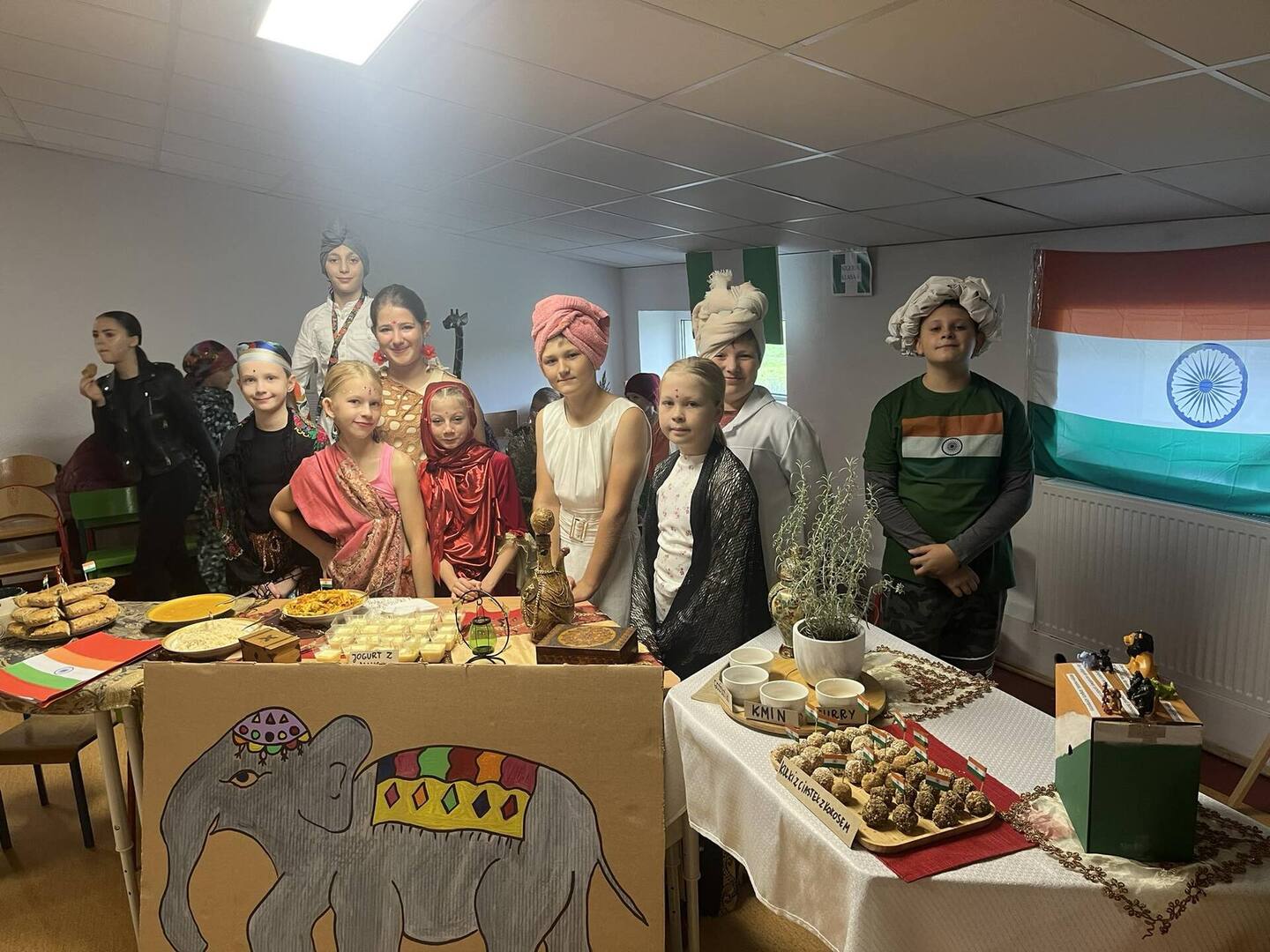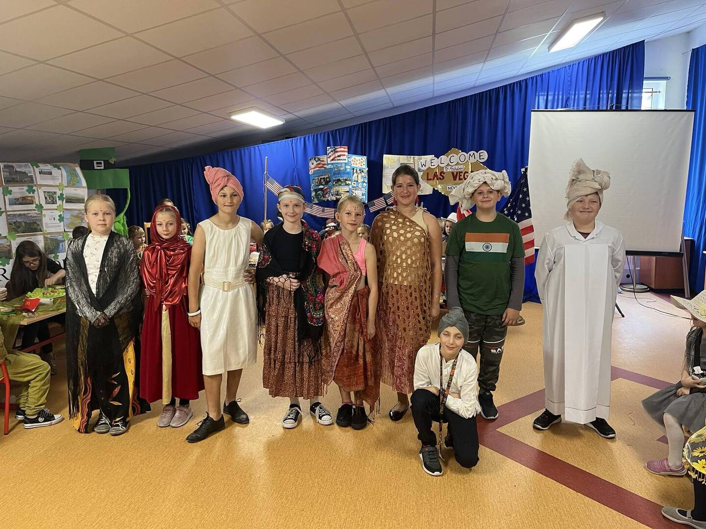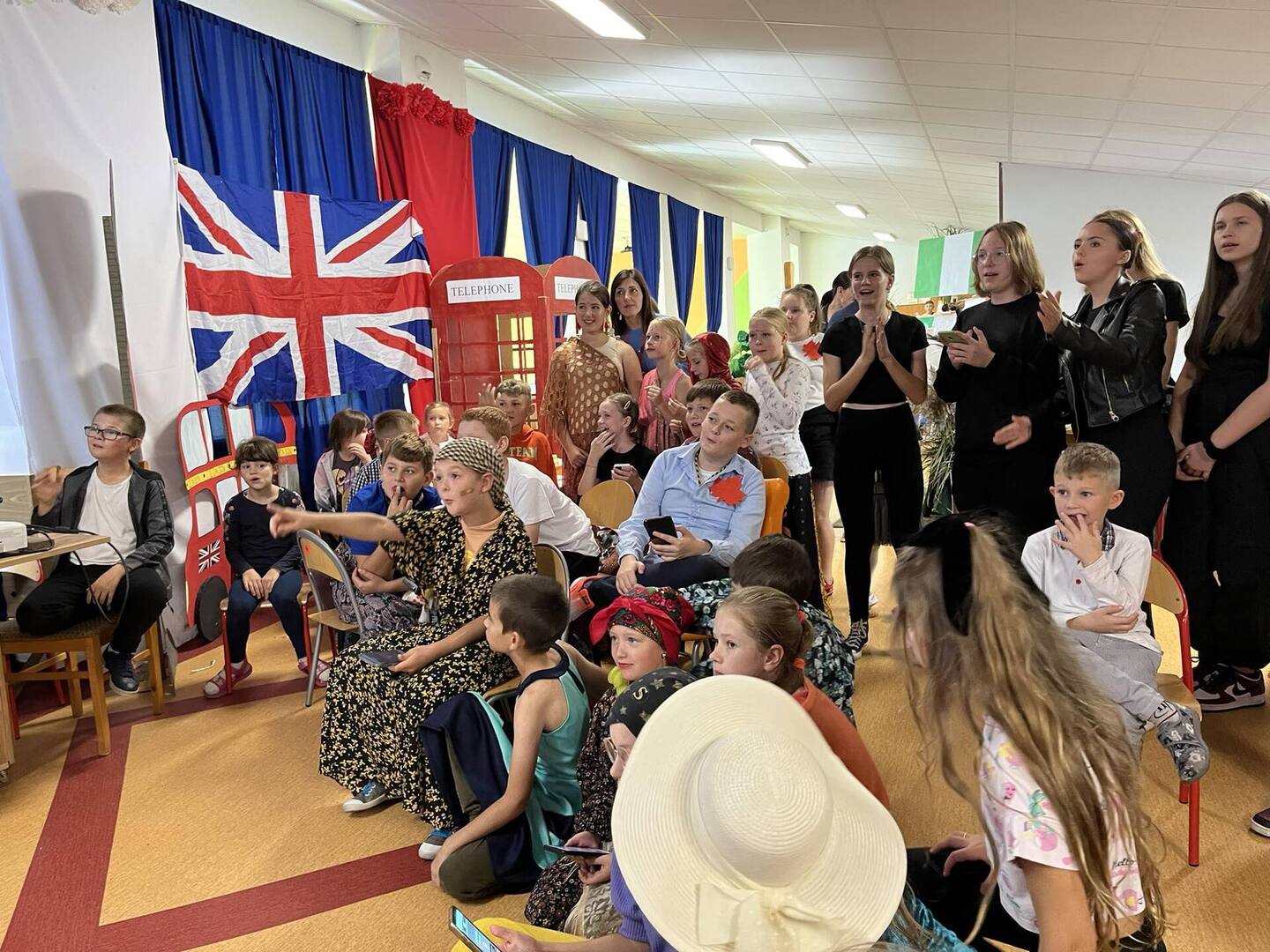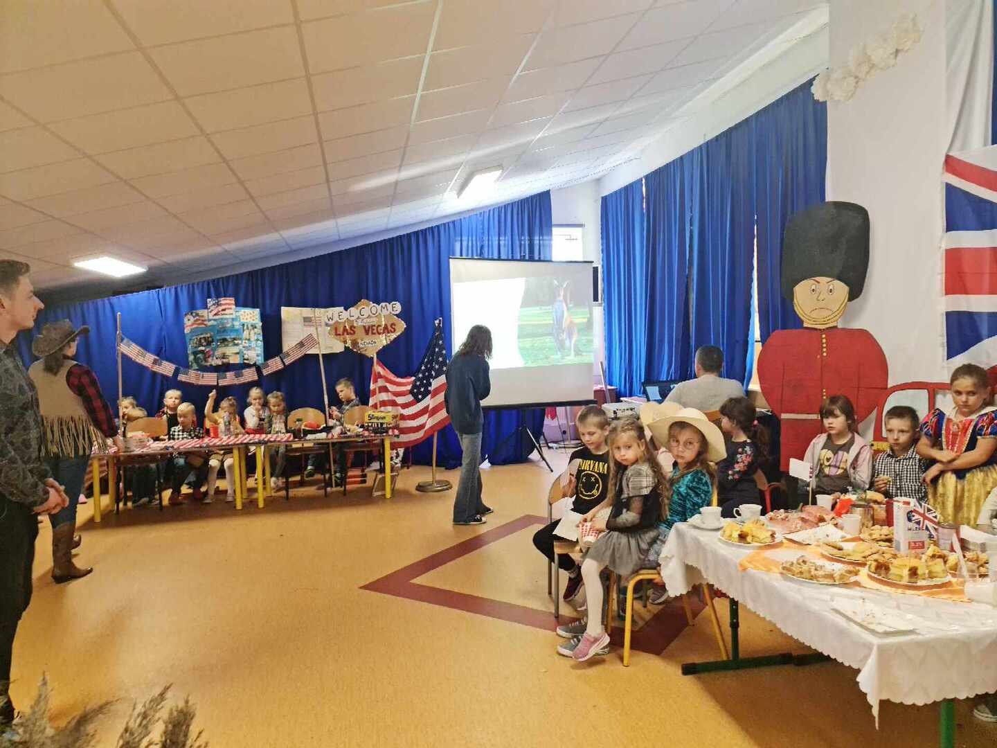 GUESS WHAT?! 11 października odbył się ponownie Międzynarodowy Dzień Języków Obcych w naszej pieszczańskiej szkole! W tej edycji gościliśmy kraje anglojęzyczne z całego świata! Celem tego było szerzenie świadomości, że język angielski jest wszechobecny i uniwersalny. W tym dniu mieliśmy szansę poznawać kultury Anglii, USA, Irlandii, Nigerii, Indii, Kanady, Australii oraz Nowej Zelandii. Nasi wychowankowie wraz z pomocą rodziców przygotowali pyszne potrawy, kolorowe stroje, liczne gazetki, prezentacje multimedialne, a nawet występy taneczne! Na szczególną uwagę zasługuje nowoczesny taniec amerykański w wykonaniu zerówki, indyjski taniec „TUNAK TUNAK” piątoklasistów oraz wojowniczy taniec maoryski „HAKA” przedstawiony przez klasę ósmą. Ponadto uczniowie mieli za zadanie przygotować słownictwo, które język angielski zapożyczył z przedstawionych krajów. Dowiedzieliśmy się między innymi, że słowo „dżungla” pochodzi od „jangal” w języku hindii czy też, że „barbie” po australijsku to nie laleczka z firmy Mattel a zwyczajnie „grill”. Na koniec dnia nasi podopieczni mieli przyjemność sprawdzić się w Wielkim Quizie Kahoot podsumowującym wiedzę, którą uczniowie zdobyli podczas Dnia Języków.