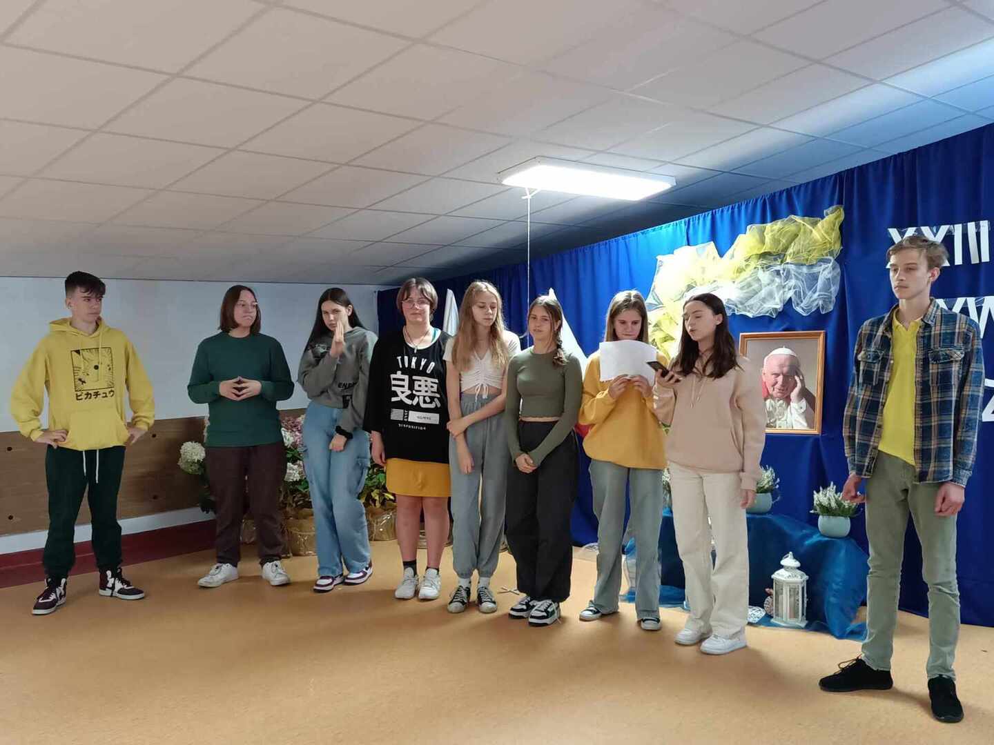 Rozpoczęliśmy od prezentacji przedstawiającej osobę Jana Pawła II, następnie odbył się koncert z dedykacją dla Wielkiego Papieża. Każda klasa wykonała swój wybrany utwór, po występach czekały na nas zadania, które obejmowały podstawę programową nie tylko z religii, ale też korelowały z zagadnieniami innych przedmiotów.