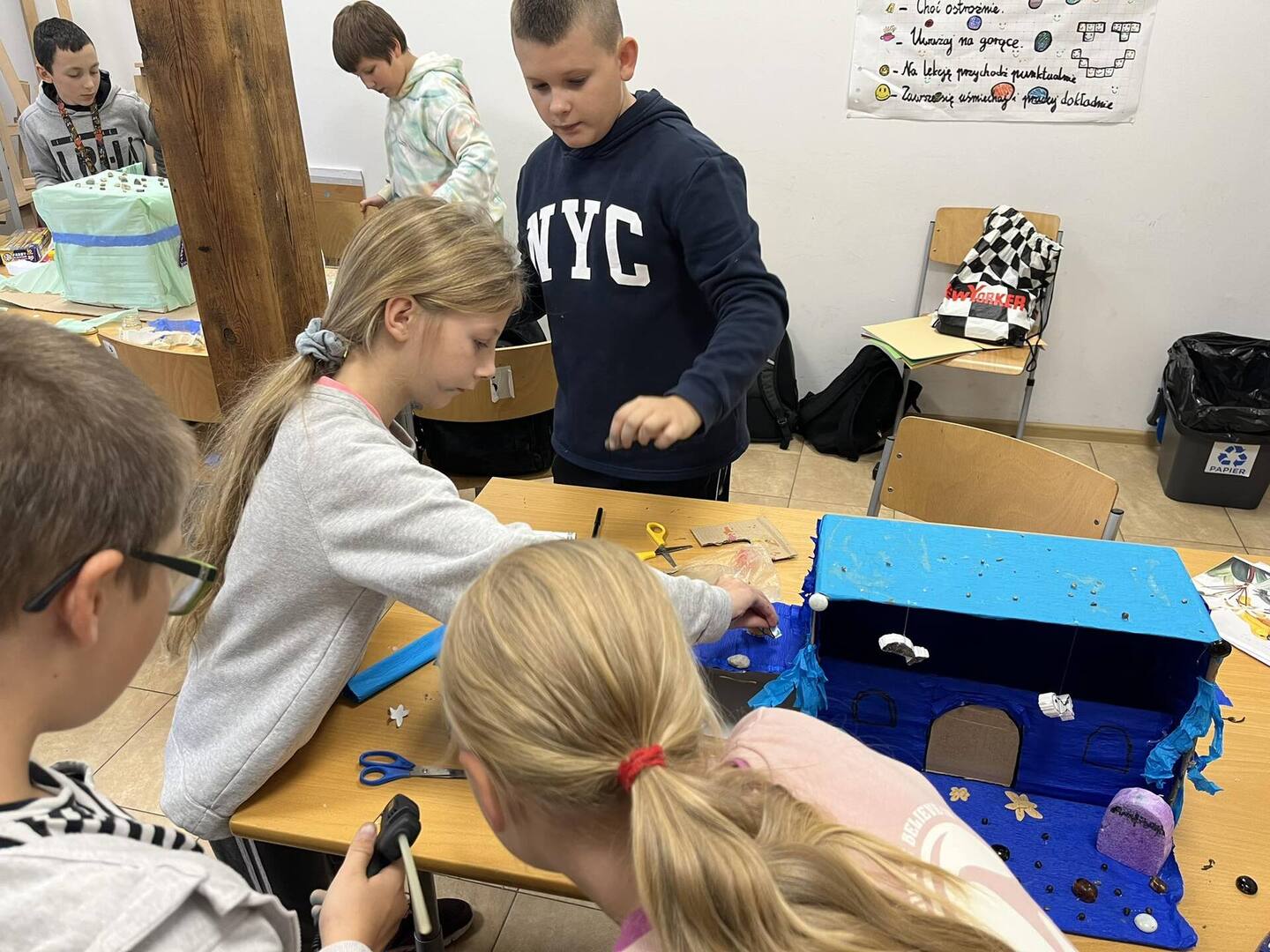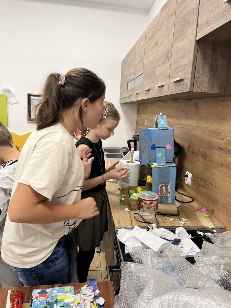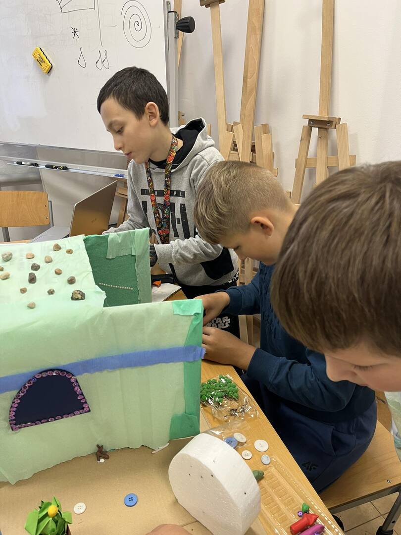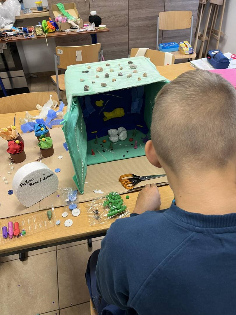 Dnia 20 października dzięki współpracy nauczycieli techniki i języka polskiego uczniowie klasy V z wielkim zaangażowaniem tworzyli swoje wizje pałacu Posejdona. Powstały wspaniałe, piękne prace, które sprawdziły umiejętności techniczno-plastyczne a także humanistyczne, bowiem uczniowie mieli za zadanie przekształcenie poznanego tekstu w makietę .