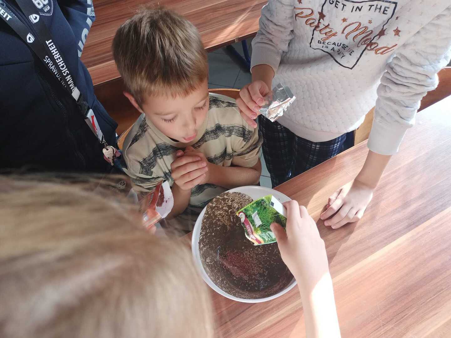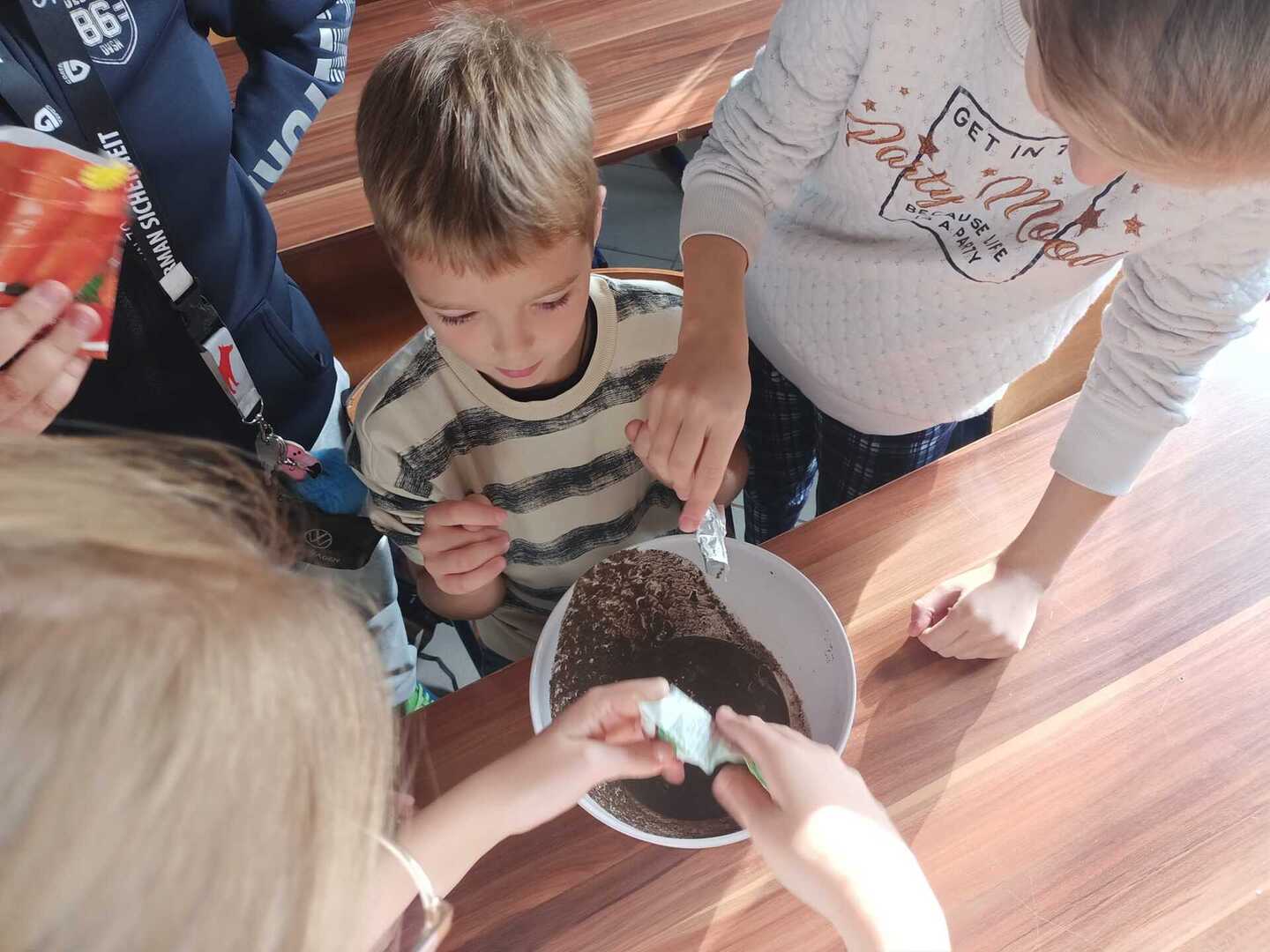 Podczas lekcji uczniowie własnoręcznie stworzyli kulę nasienną.