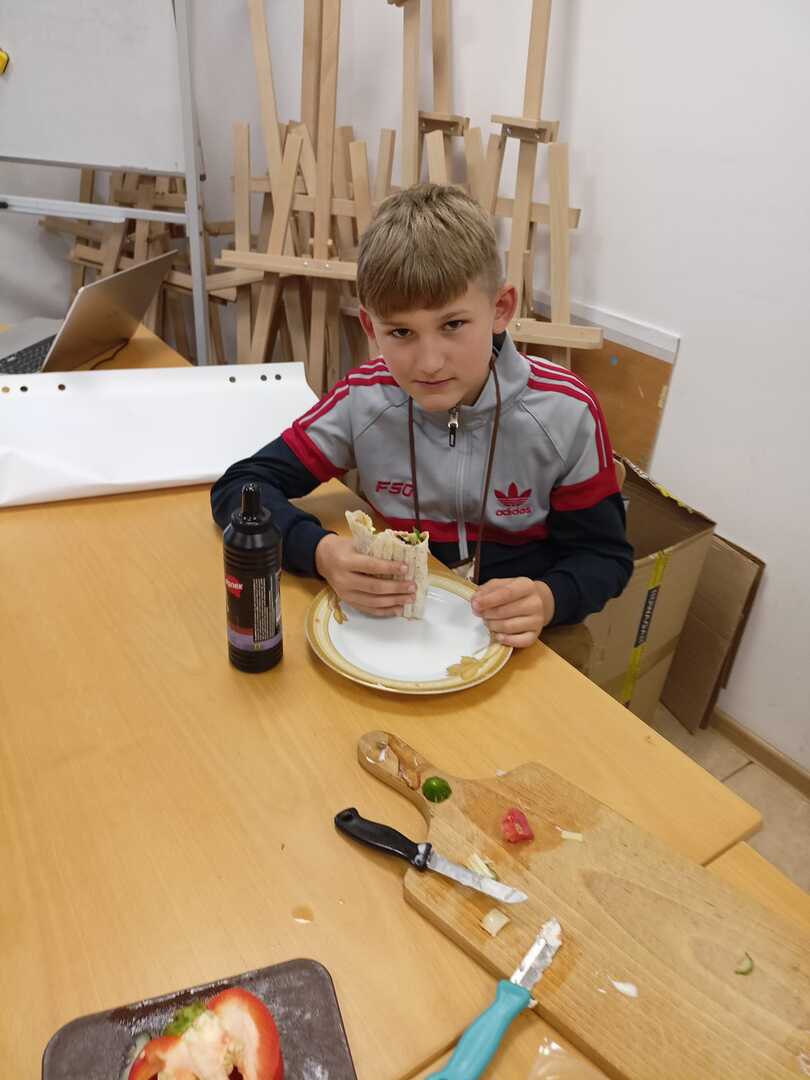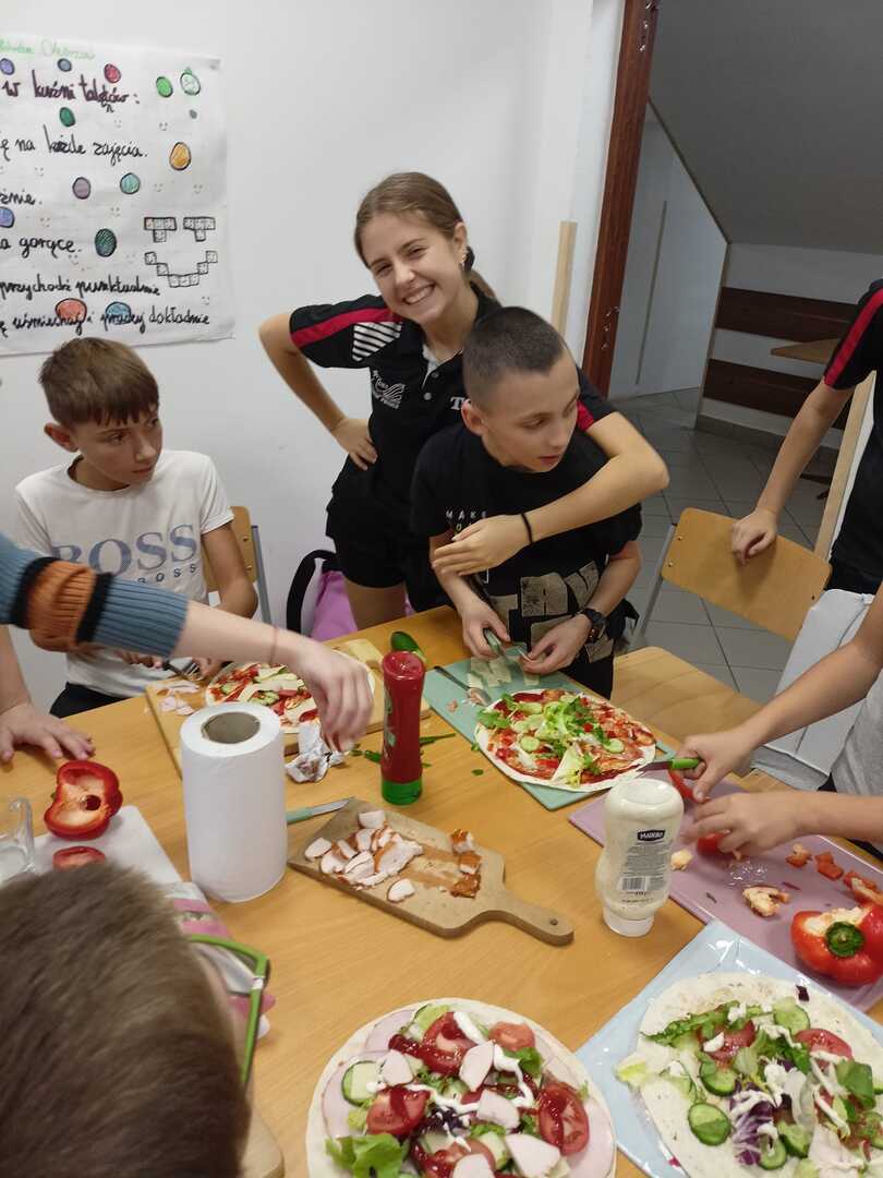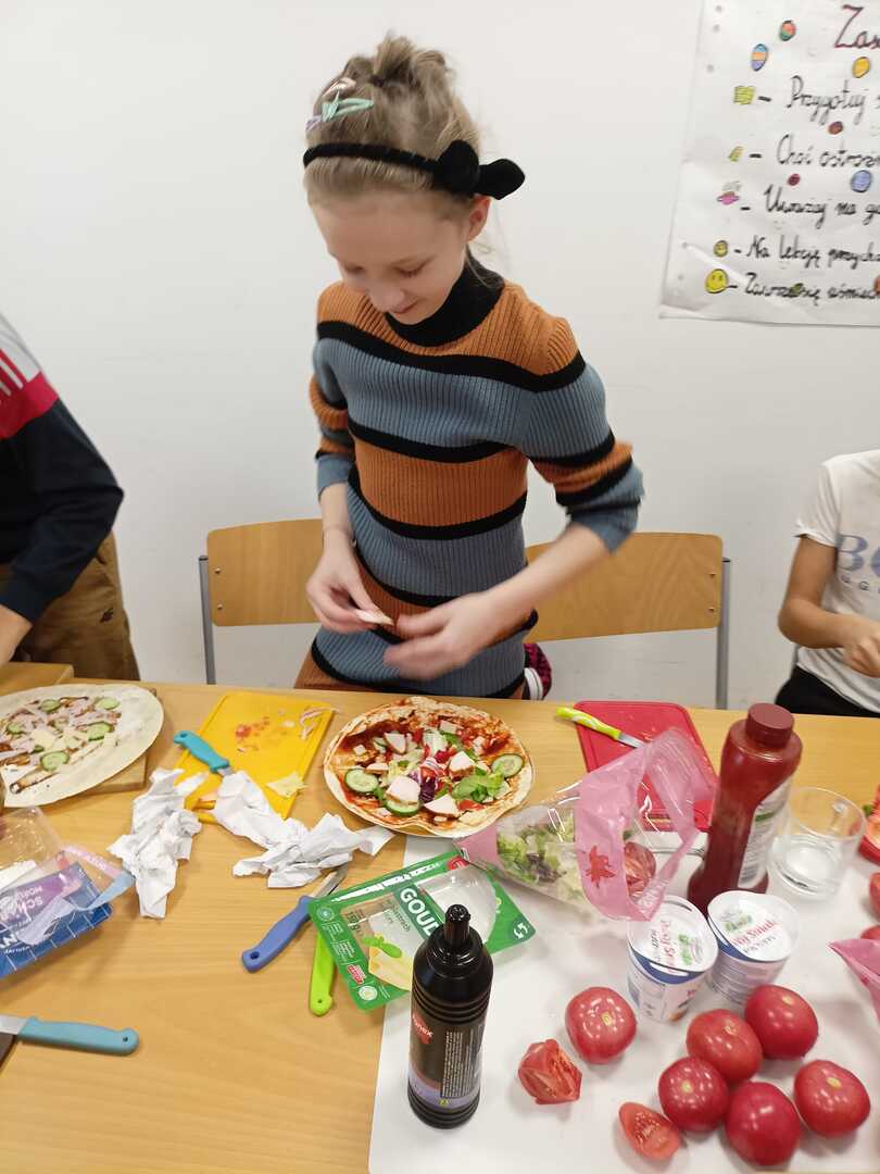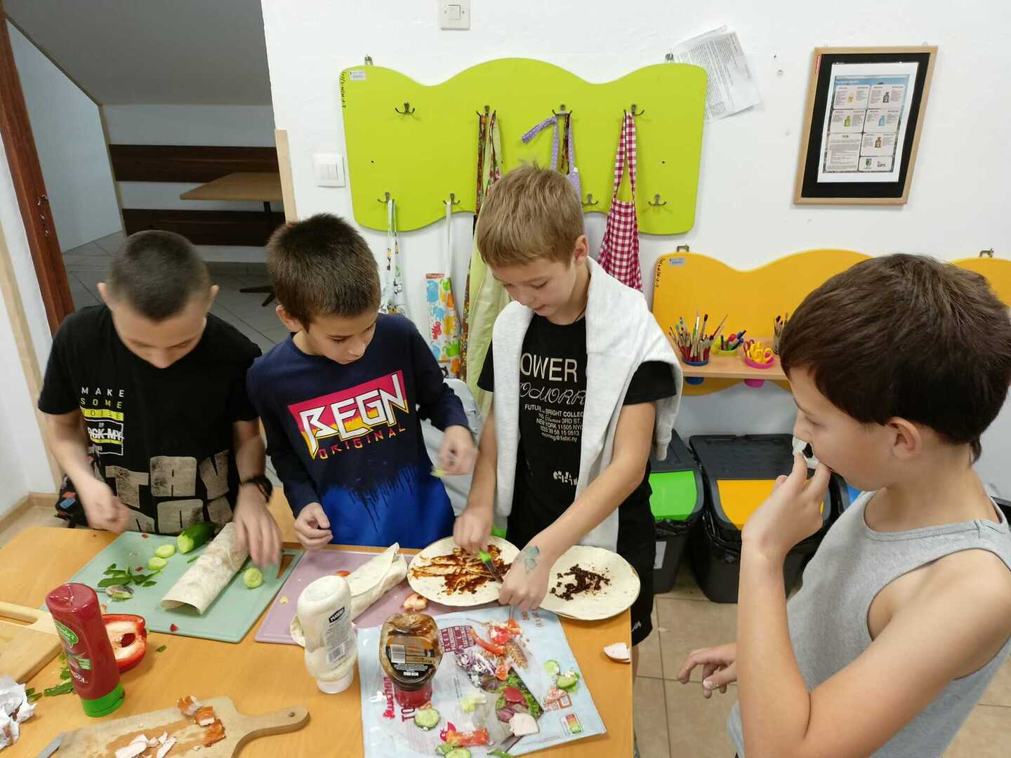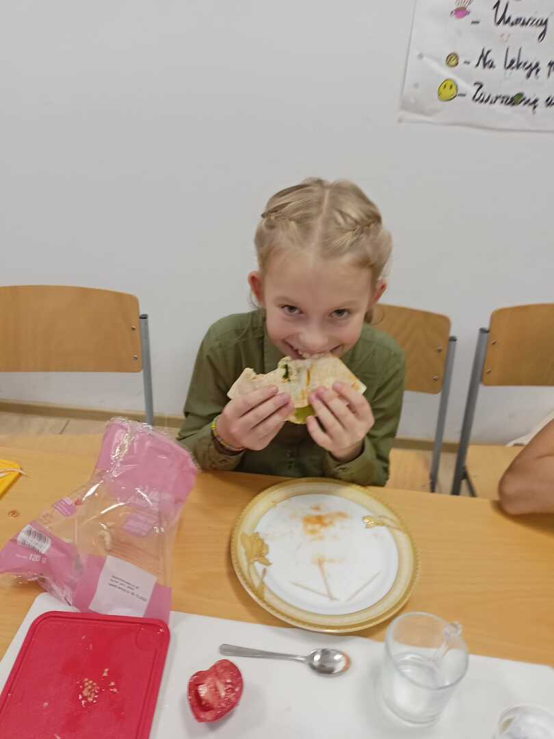 Na zajęciach rozwijających kreatywność uczniów doskonalimy swoje umiejętności kulinarne, ale również dbamy o zdrowe nawyki żywieniowe. Dziś przygotowywaliśmy tortille z dużą ilością warzyw, twarożkiem, kurczakiem, serem. Spożywaliśmy je zarówno na zimno jak i na ciepło.