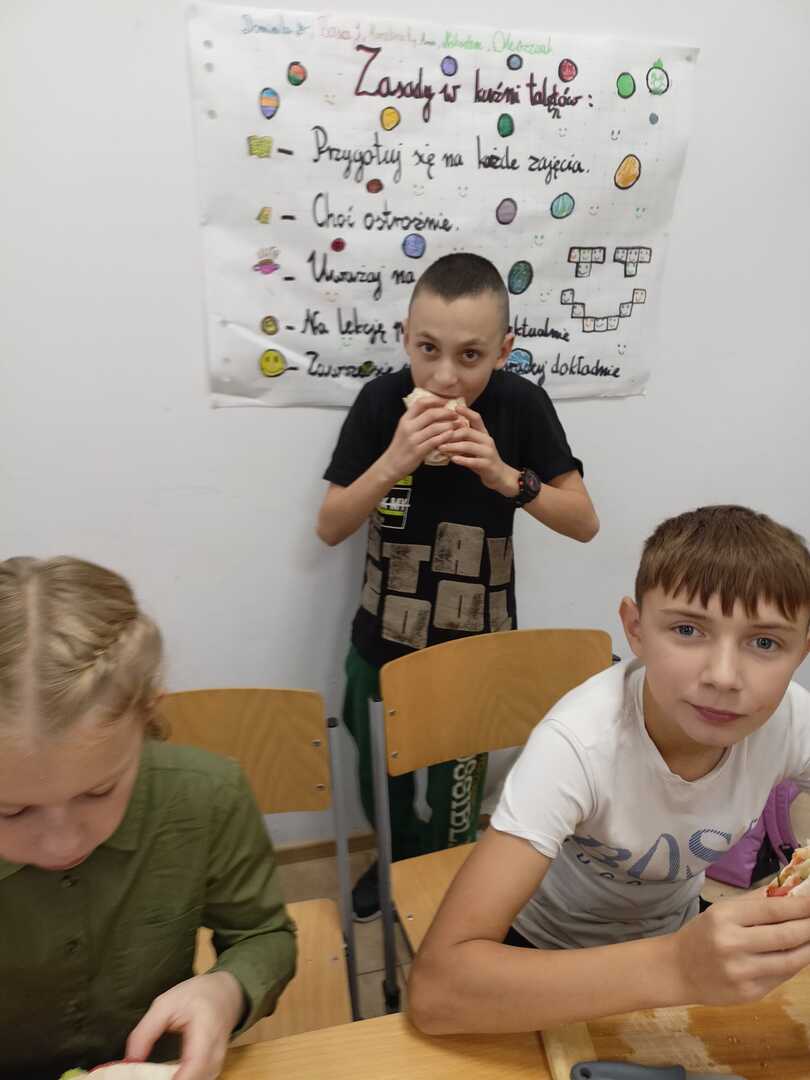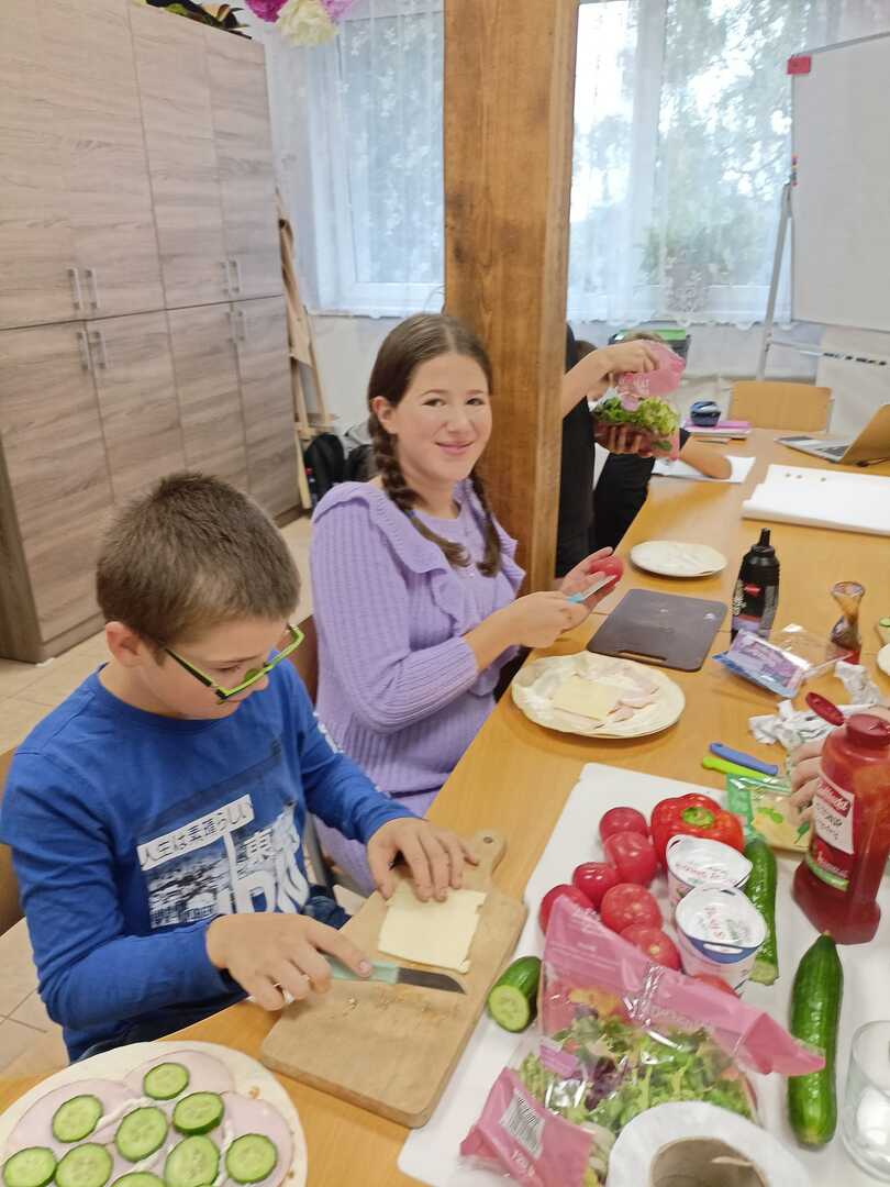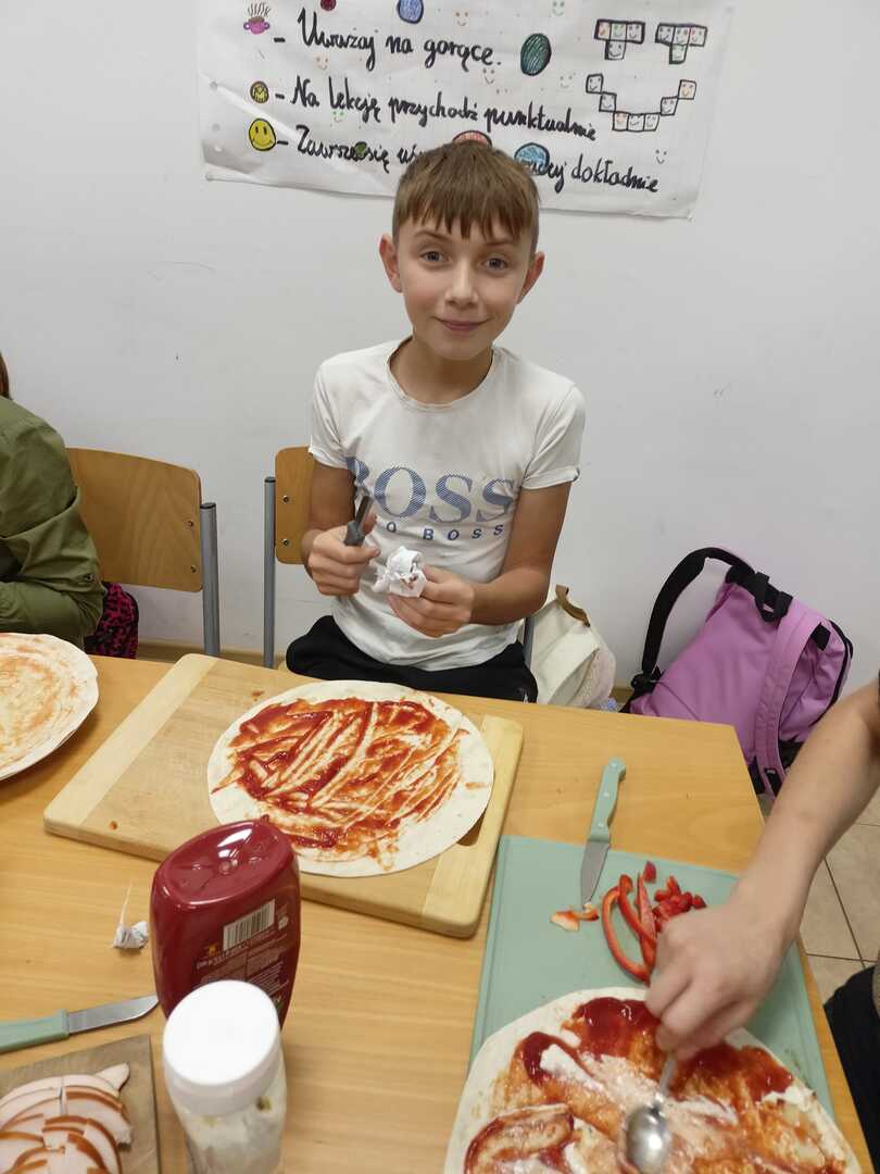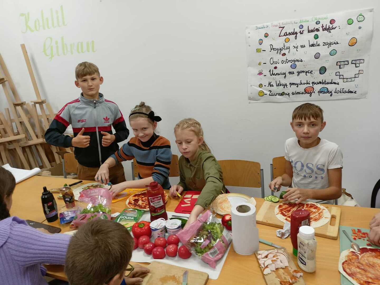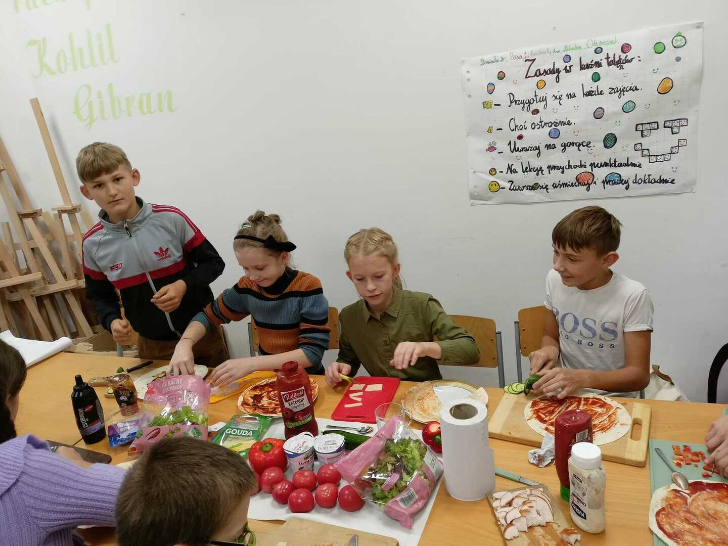 Na zajęciach rozwijających kreatywność uczniów doskonalimy swoje umiejętności kulinarne, ale również dbamy o zdrowe nawyki żywieniowe. Dziś przygotowywaliśmy tortille z dużą ilością warzyw, twarożkiem, kurczakiem, serem. Spożywaliśmy je zarówno na zimno jak i na ciepło.