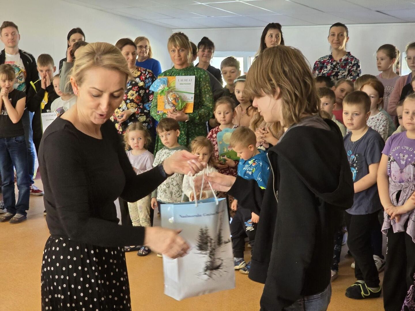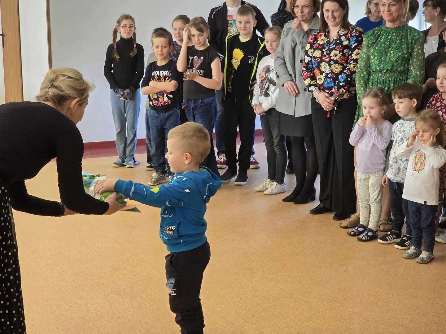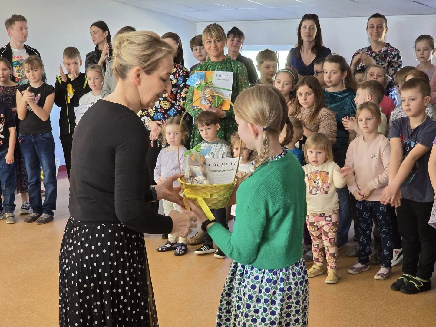Pani Dyrektor wręczyła nagrody uczniom za udział w konkursie wielkanocnym organizowanym przez gminę. Korzystając z okazji złożyła nam życzenia z okazji Świąt Wielkanocnych.