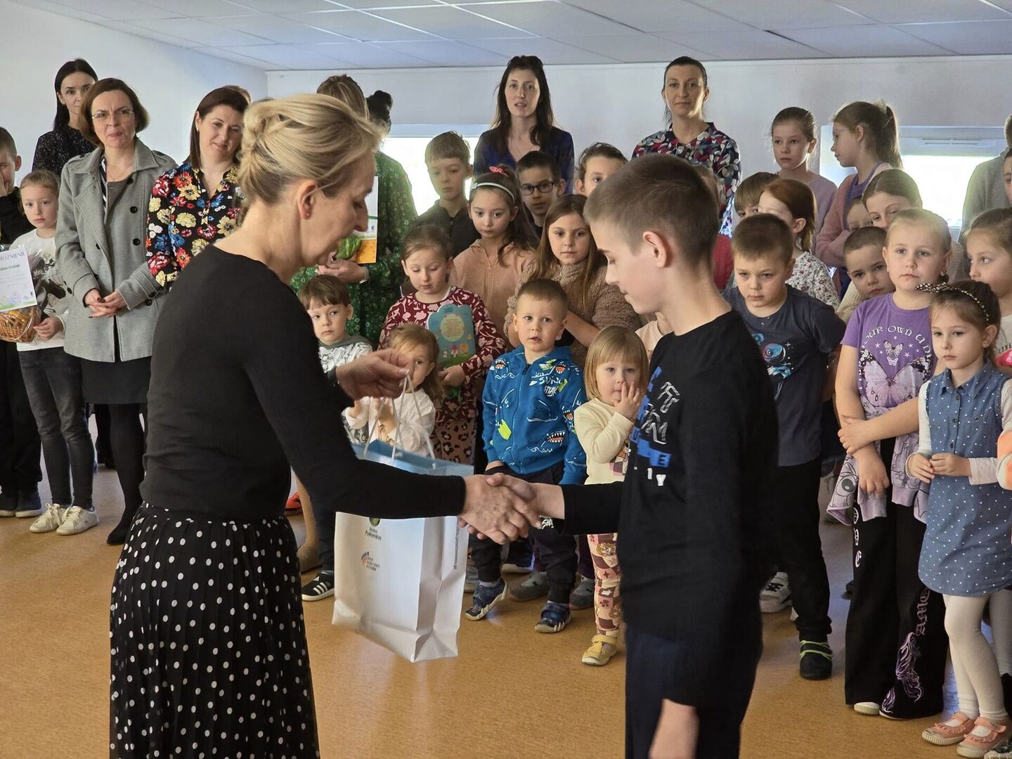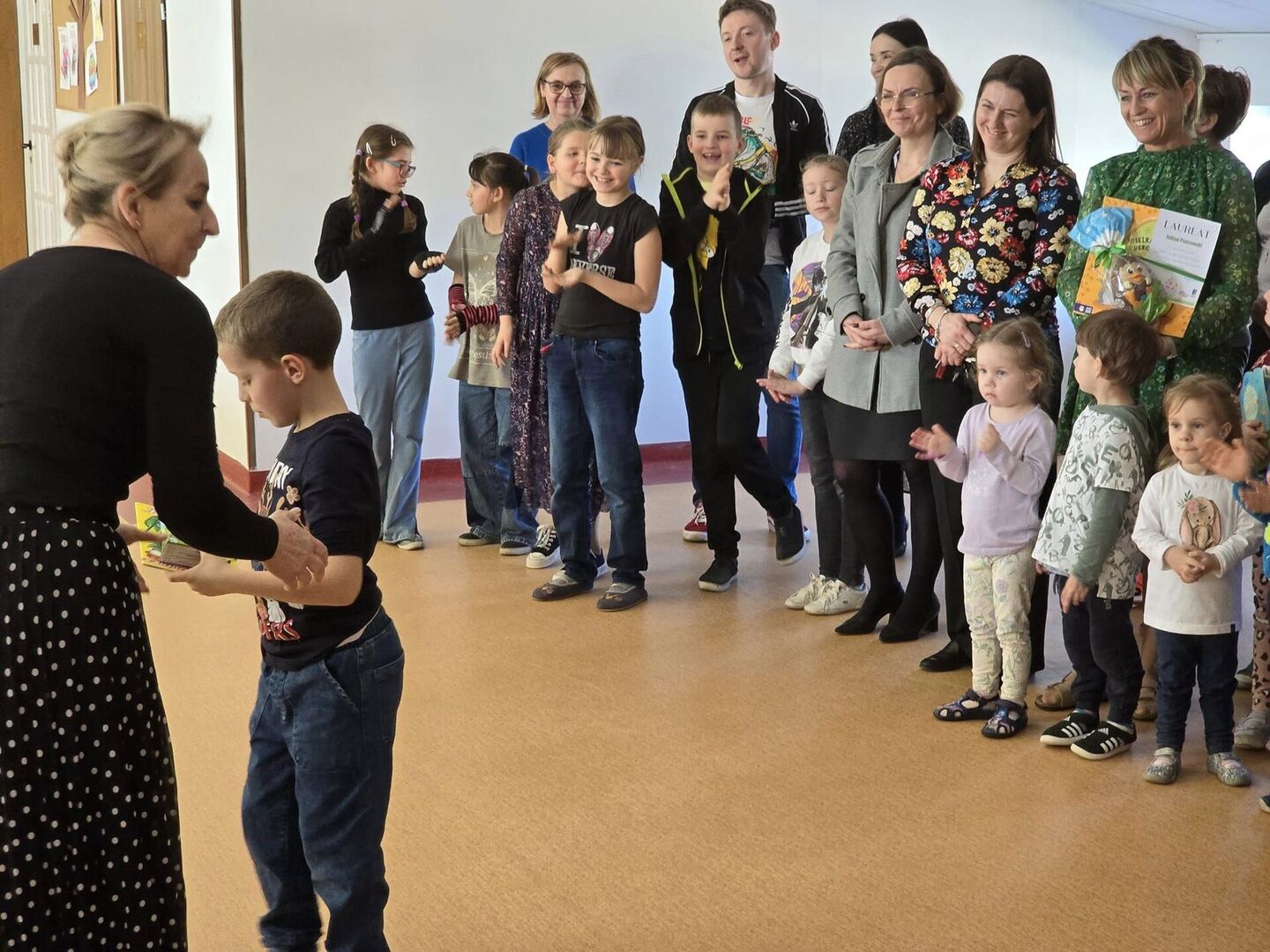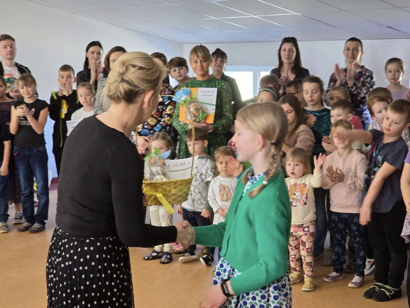 Pani Dyrektor wręczyła nagrody uczniom za udział w konkursie wielkanocnym organizowanym przez gminę. Korzystając z okazji złożyła nam życzenia z okazji Świąt Wielkanocnych.