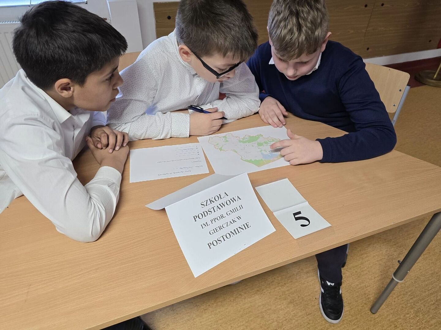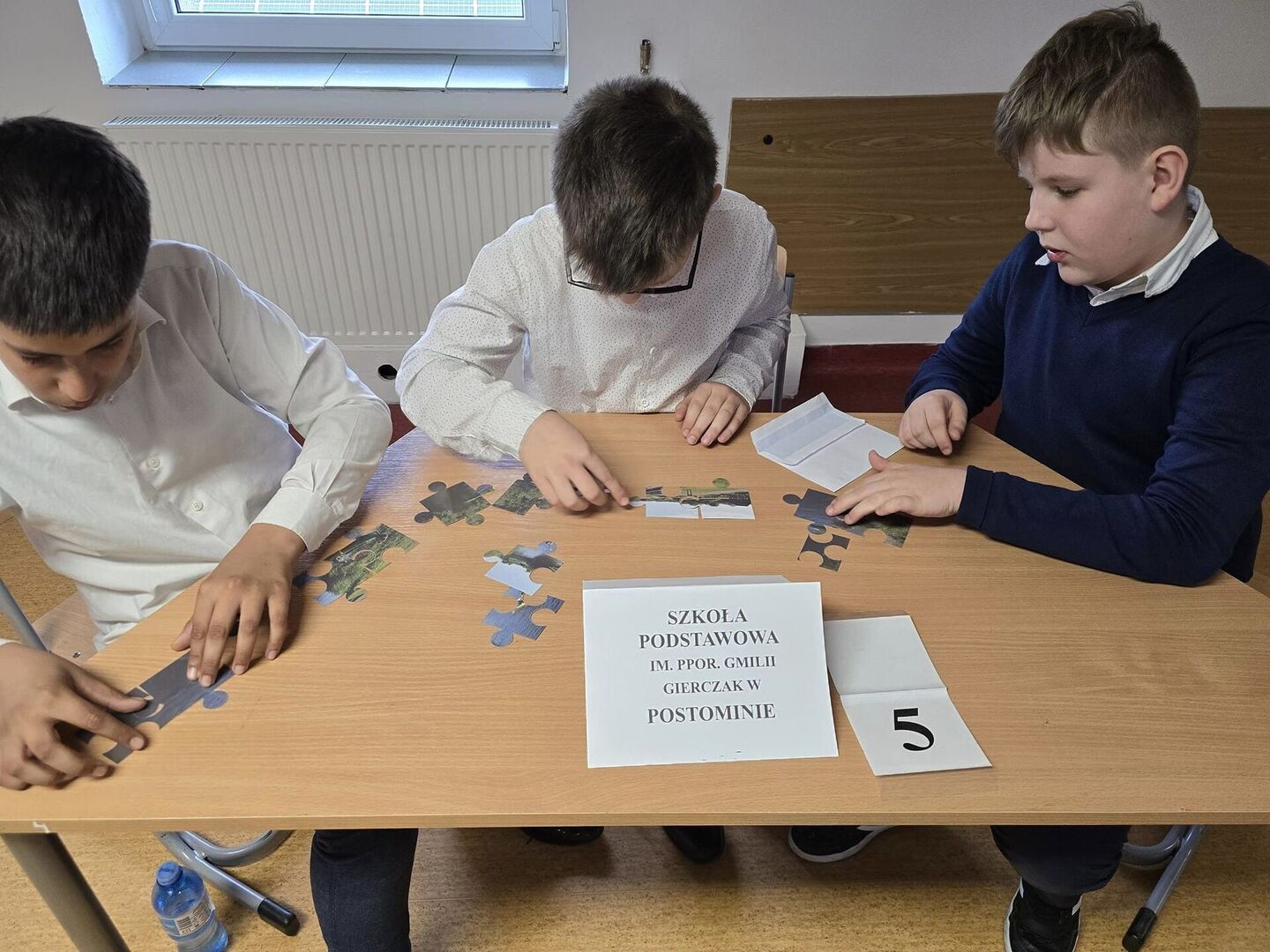 Uczestnicy mieli za zadanie: wypełnić test wiedzy o gminie, ułożyć puzzle znanych obiektów sakralnych, następnie uczniowie musieli wykazać się znajomością lokalizacji wybranych zabytków oraz znajomością miejscowości na mapce gminy Postomino. Dodatkowo uczniowie rozpoznawali miejscowości gminy z lotu ptaka a w ostatnim zadaniu drużyny szkół wykazały się kreatywnością wymyślając hasło promujące naszą gminę.