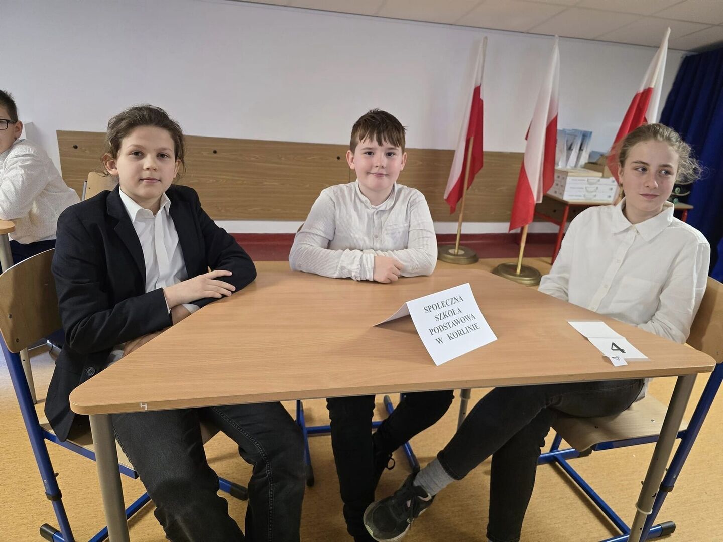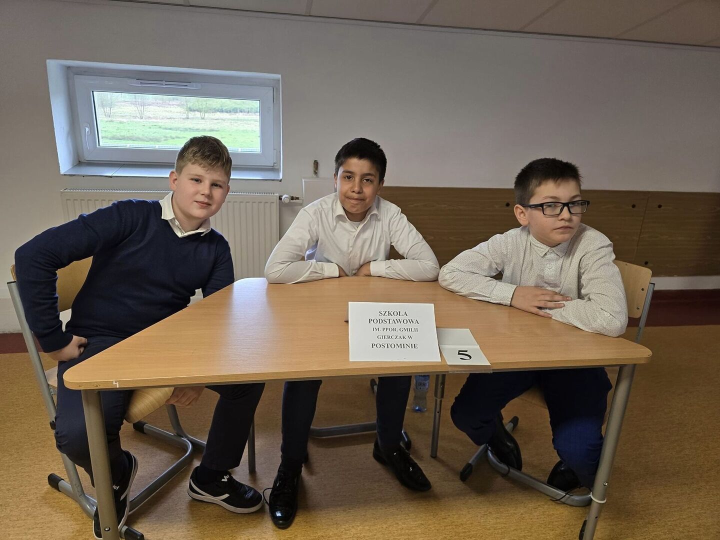 III miejsce Społeczna Szkoła Podstawowa w Korlinie, skład drużyny: Agata Garlin, Oliwier Kisielewicz oraz Tytus Sadowski.