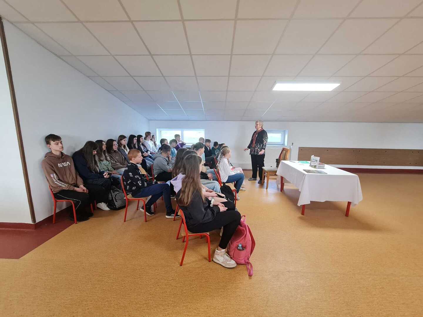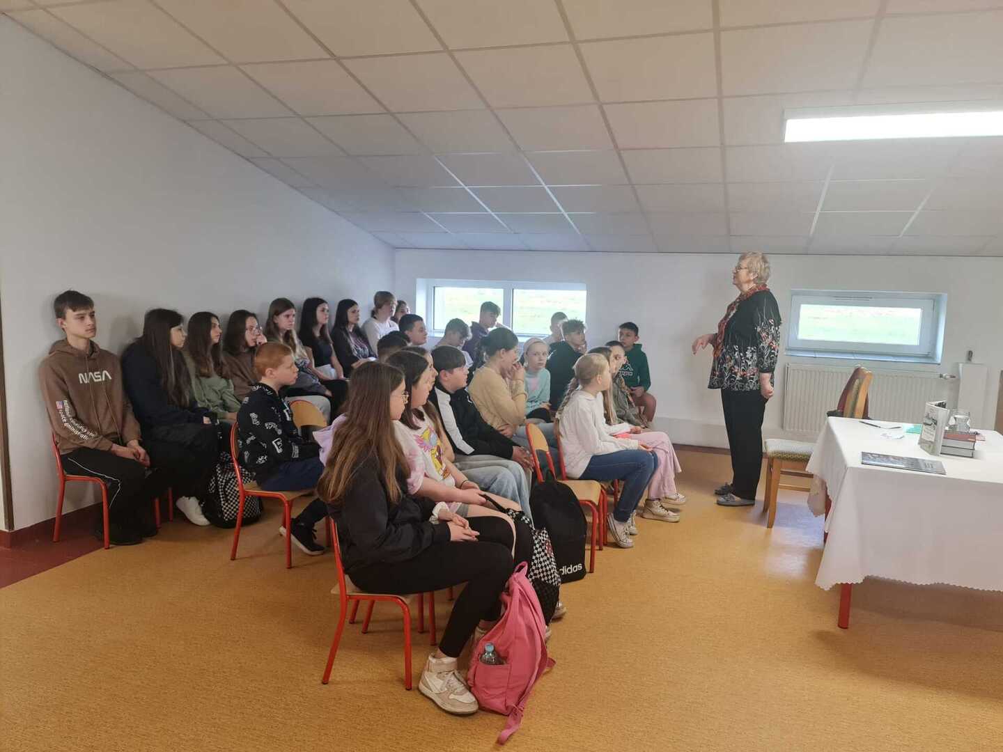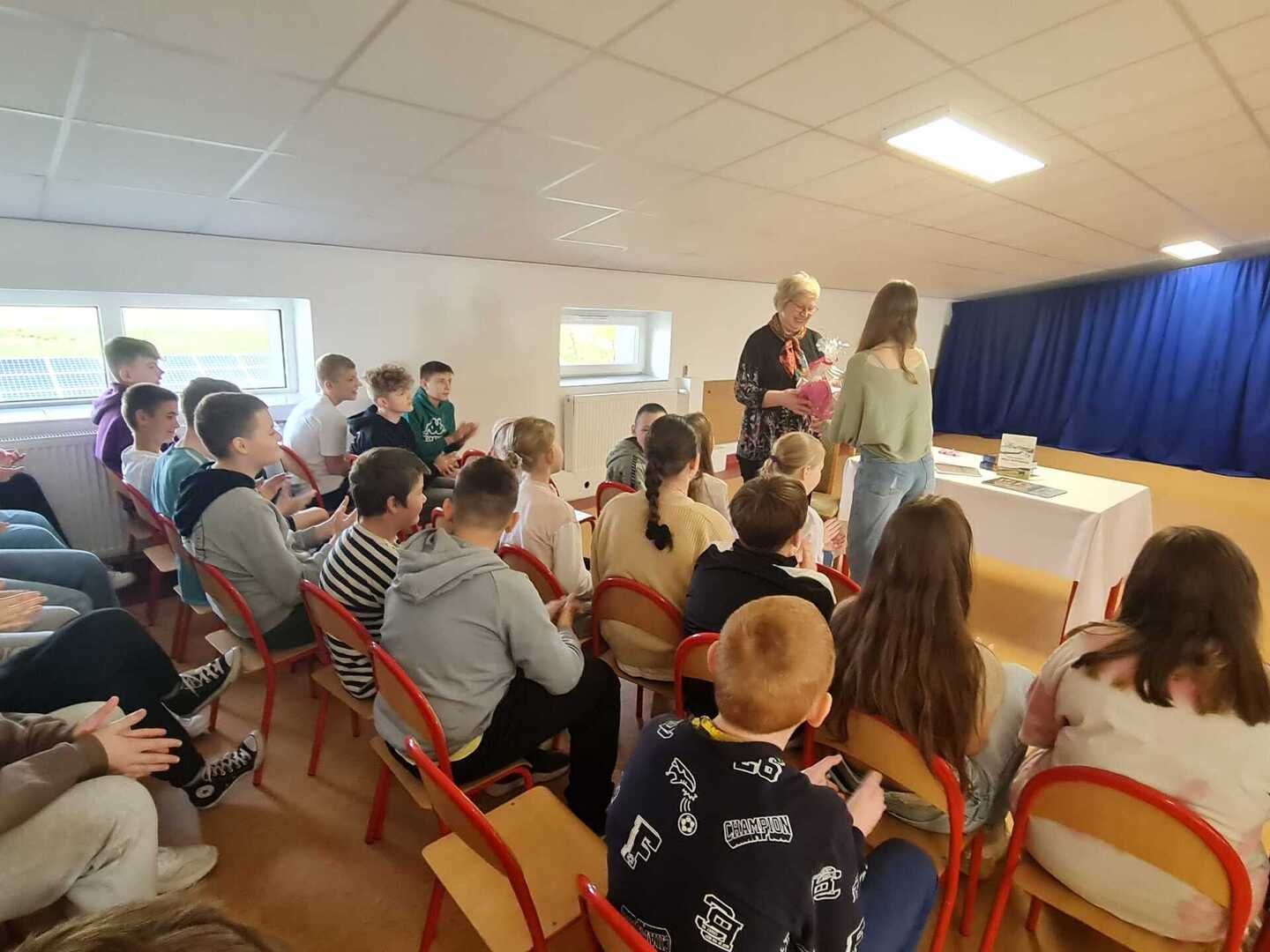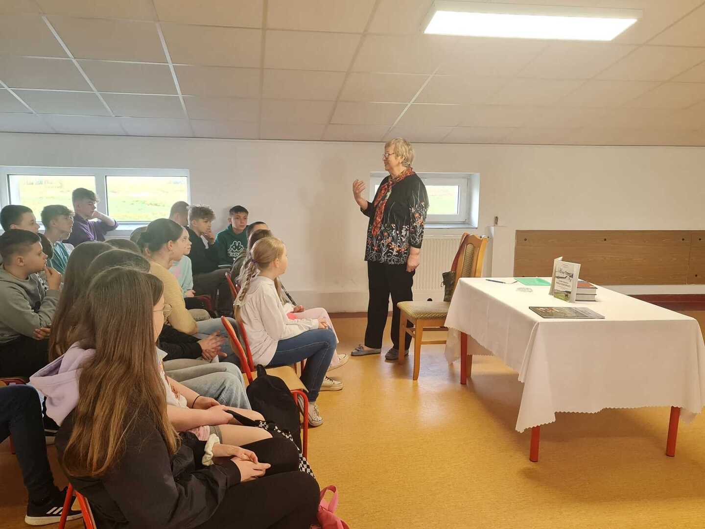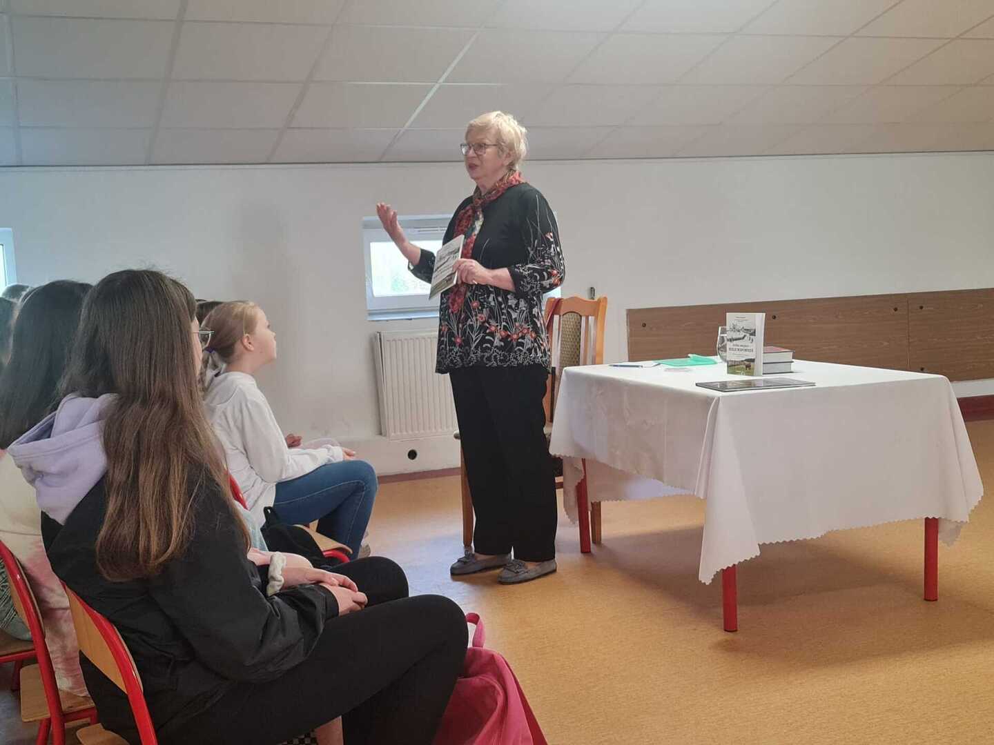 Dziś Pani Rysztak wystąpiła przed uczniami również jako autorka książki „Jedno miejsce- wiele wspomnień”, opowiadając o kulisach jej powstania i przytaczając przykłady powojennych wspomnień mieszkańców naszej gminy. Zachęcała i motywowała również uczniów do tego, by pisali i przelewali na kartkę to, co mają w sercu, w myślach.