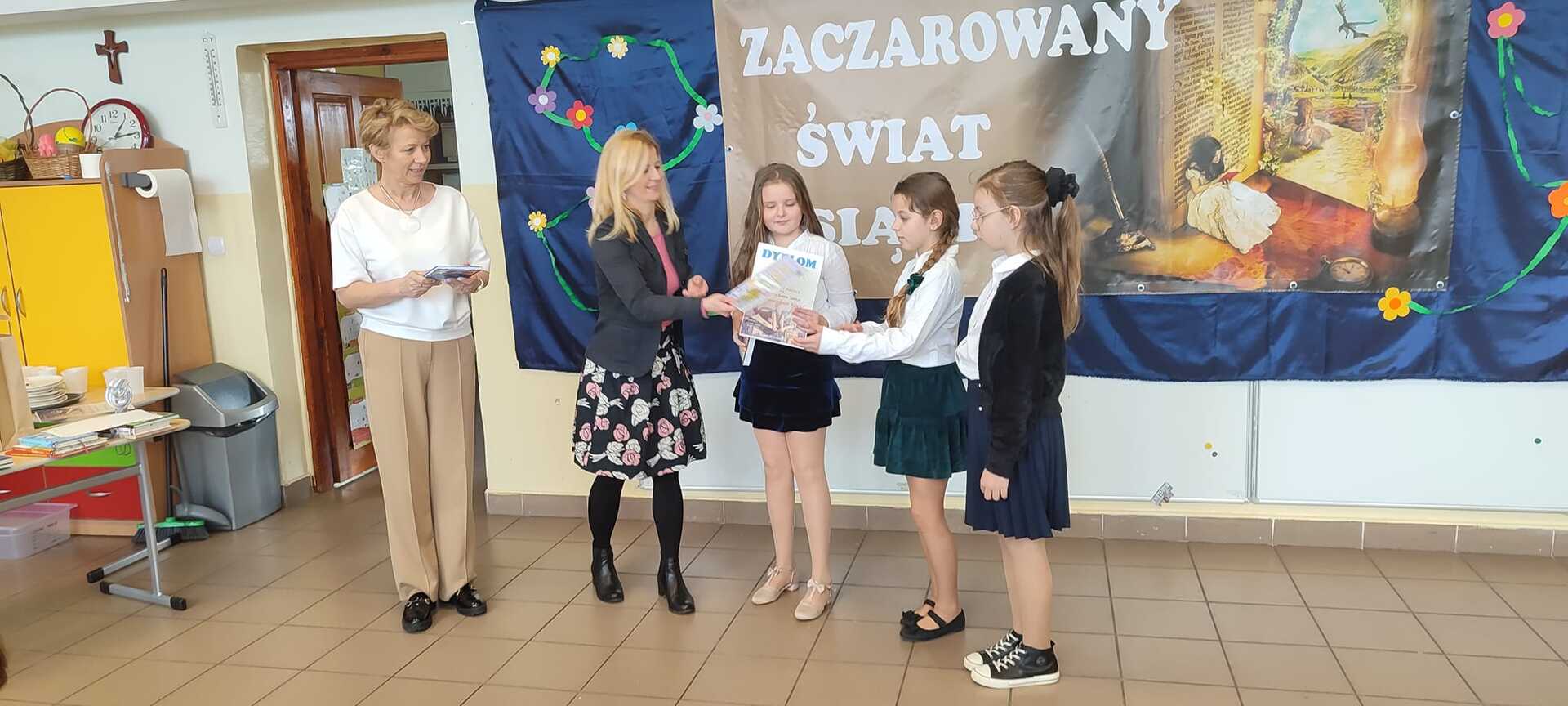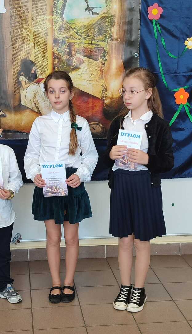Dzisiejszego dnia uczennice naszej szkoły Ada, Ania i Karolina brały udział w Międzyszkolnym Konkursie Czytelniczym "Zaczarowany Świat Książki" dla uczniów klas I-III szkoły podstawowej organizowanym przez Szkoła Podstawowa w Jarosławcu . Uczestnicy musięli wykazać się znajomością treści, ilustracji, autorów aż 15 lektur obowiązujących w edukacji wczesnoszkolnej. Dziękujemy, że mogliśmy brać udział w tym wspaniałym konkursie.