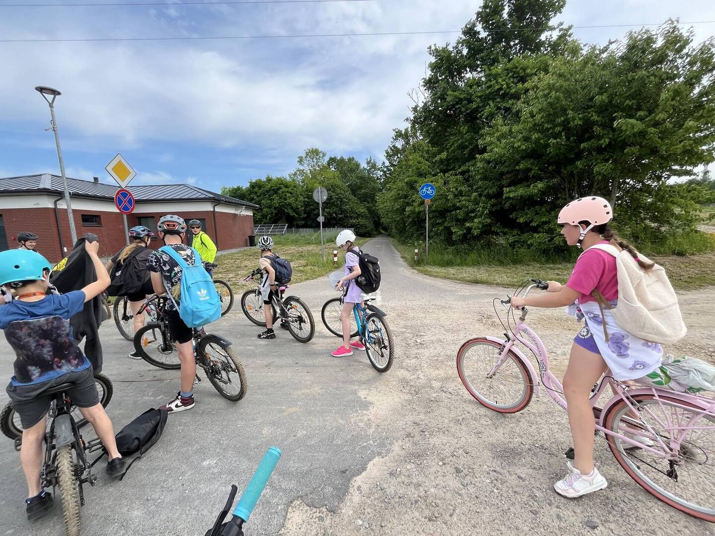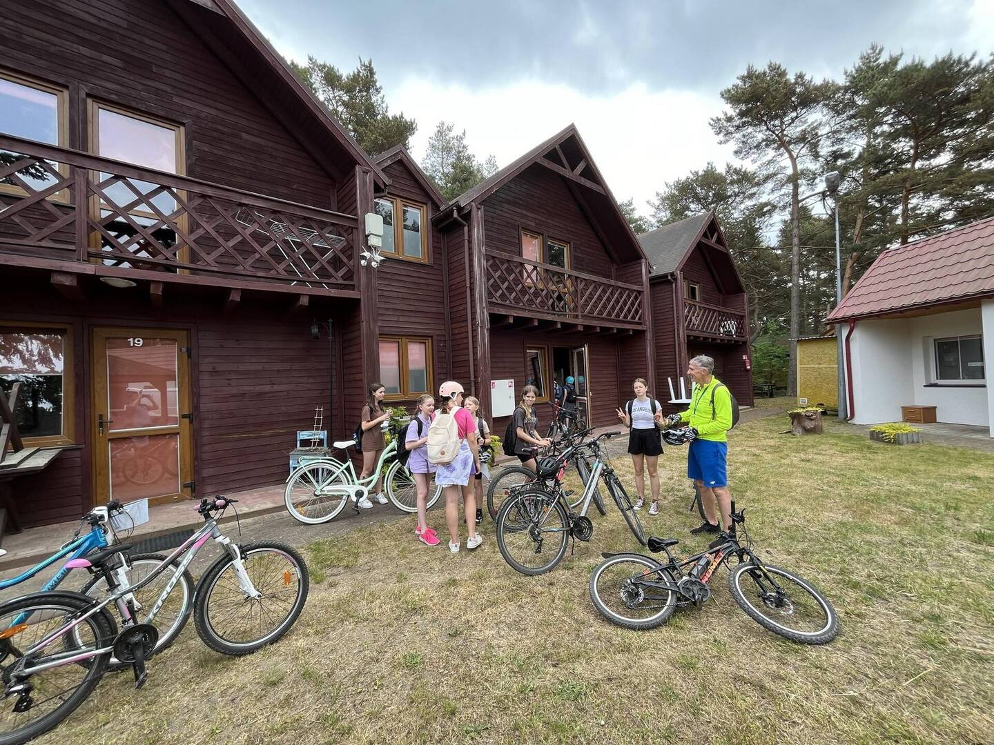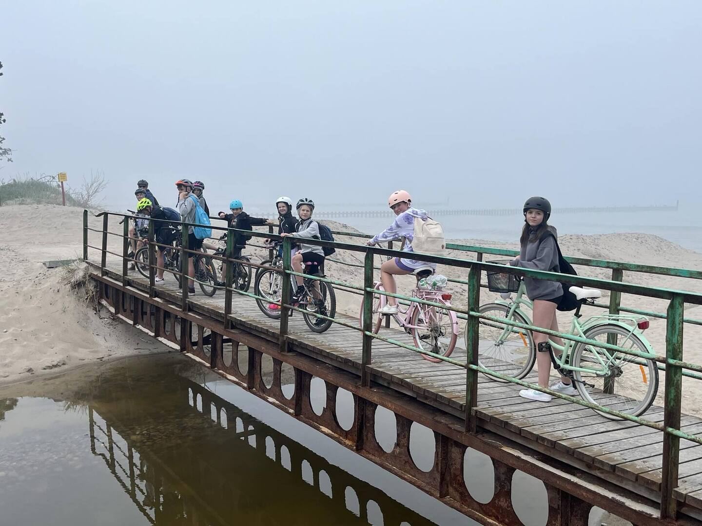 W czwartek 23.05.2024r. o godz. 9:00 klasa V i VIII pod opieką Pana Artura oraz Bartka wybrali się na rajd rowerowy do Jarosławca pokonując 24 km! Po zakwaterowaniu się w ośrodku wczasowym "Przywodny" wyruszyliśmy do centrum miejscowości, aby zjeść obiad i odpocząć. Następnie obraliśmy kierunek Darłówko podróżując piękną drogą rowerową wzdłuż Bałtyku. Całe 16 km musieliśmy uciekać przed burzą, która w końcu nas dopadła. Tam skorzystaliśmy z kolejnej atrakcji jaką był basen. Na całe szczęście po kąpieli burza ustała a my bezpiecznie wróciliśmy na ośrodek w Jarosławcu. Dzień zakończyliśmy ogniskiem oraz grą w „Mafię”. Wszystkim tak się podobało, że poszliśmy spać o godz. 2:00. Nie do końca spodobało się to opiekunom, stąd o godz. 7:00 następnego dnia miała miejsce pobudka.