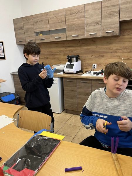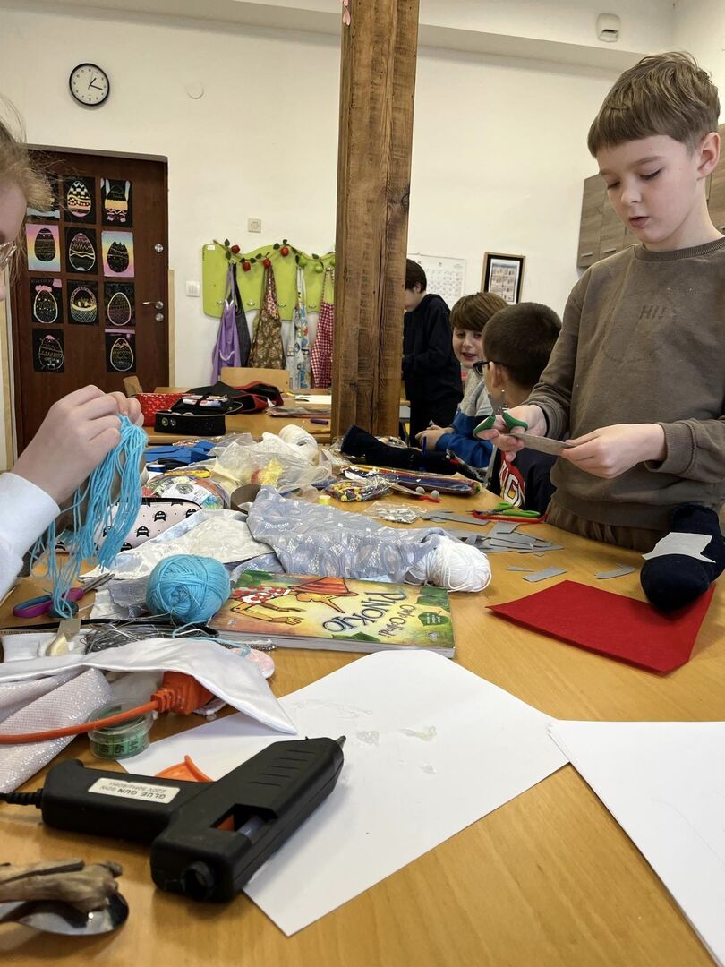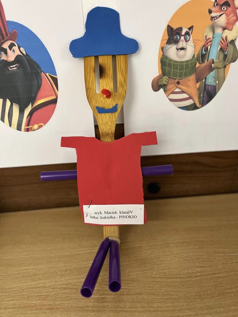 W teatrze lalek. Uczniowie klasy IV na zajęciach technicznych tworzyli lalki, kukiełki oraz pacynki pochodzące z poznanej lektury „Pinokio”. W ten sposób wykorzystali wiedzę zdobyta na języku polskim podczas lekcji techniki.