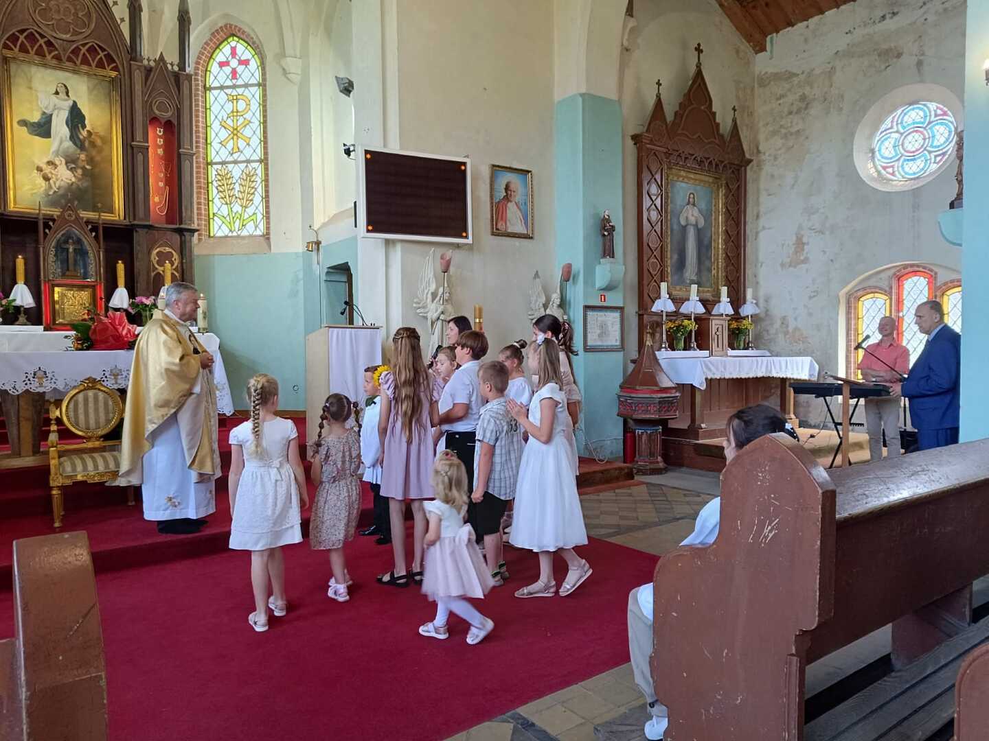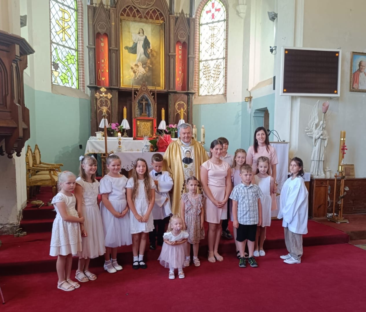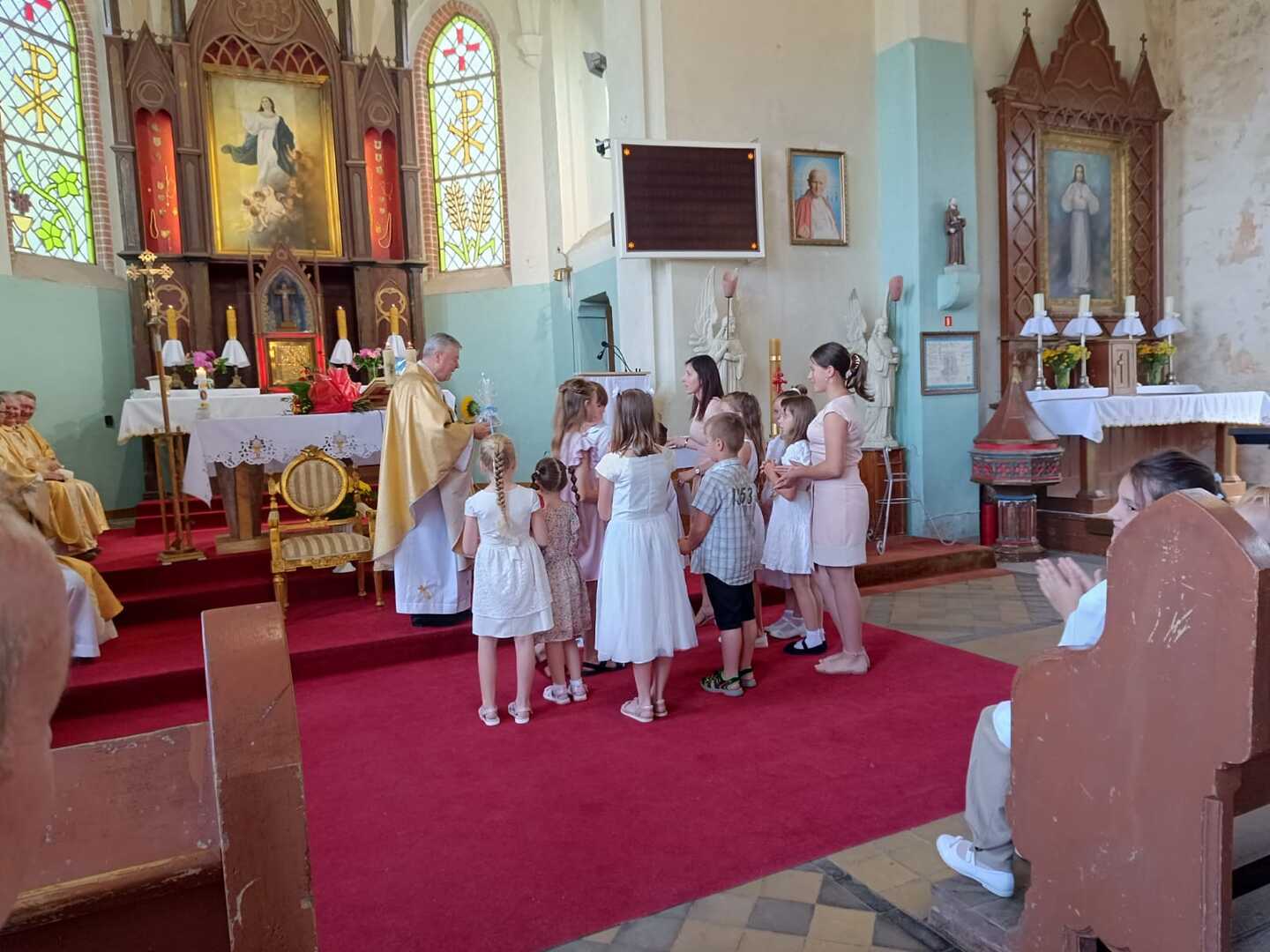 Uczniowie naszej szkoły wzięli aktywny udział we Mszy świętej, przygotowali procesję z darami, pieśń na dziękczynienie oraz złożyli podziękowania księdzu Krzysztofowi za pracę duszpasterską.