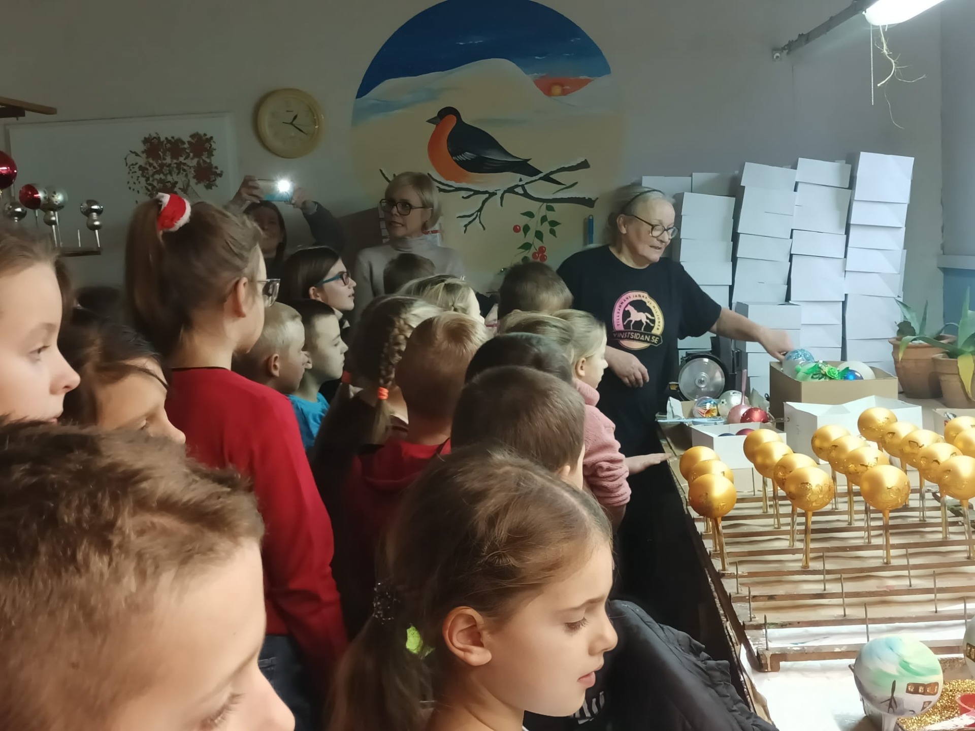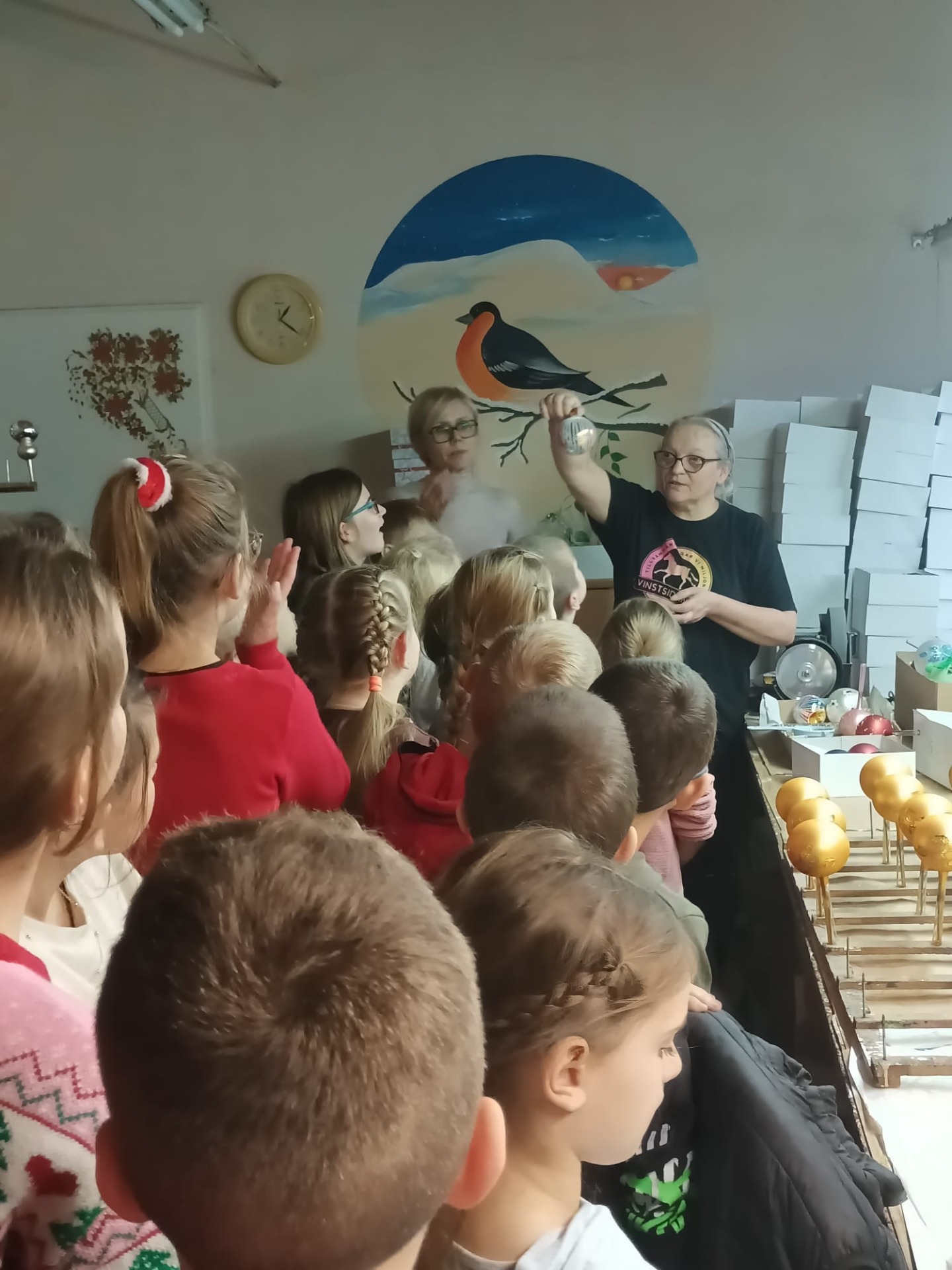 11.12.2024r dzieci z naszej szkoły wybrały się na wycieczkę do Fabryki Bombek w Nocławiu. Poznaliśmy historię pojawienia się w Polsce choinki i ozdób choinkowych oraz wszystkie etapy powstawania bombek. Mieliśmy również możliwość stworzenia własnej bombki, która ozdobi naszą domową choinkę.
