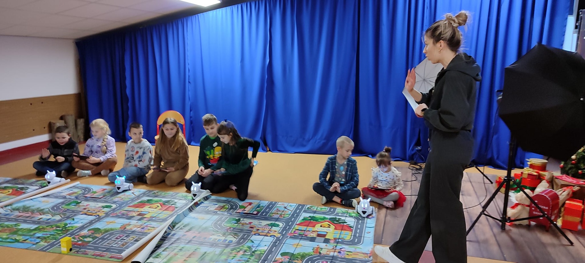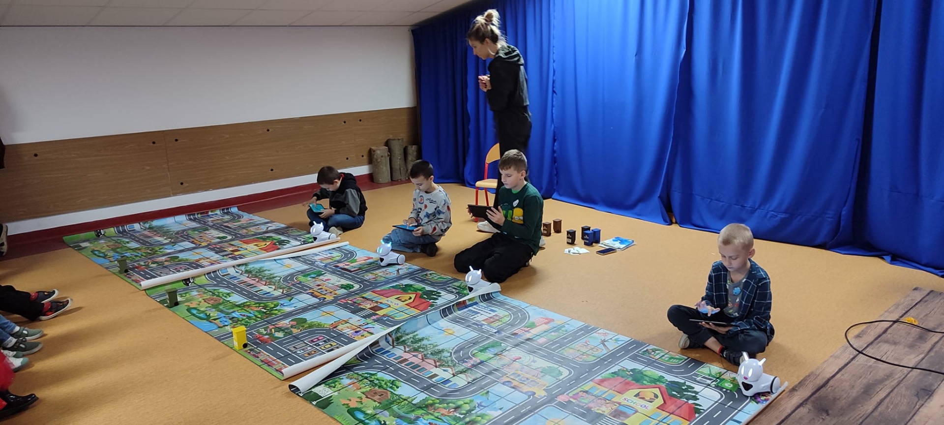 Na początku spotkania zaprezentowano dzieciom roboty Photon. Instruktorka pani Ewa przedstawiła interfejs sterujący, aby dzieci dobrze poznały ich funkcje oraz możliwości. Następnie animator rozmawiała z dziećmi o tym jak prawidłowo segregować odpady, jak również sprawdziła ich wiedzę z tego zakresu. Po krótkim wprowadzeniu w tematykę recyklingu, segregacji oraz opanowania programowania robotów, uczniowie przeszli do "sprzątania miasta" robotami. Rozłożono na podłodze makiety miast po których jeździły roboty i rozrzucono poszczególne rodzaje śmieci. Zadaniem grupy było programowanie robotów tak, aby zebrały z miasta poszczególne odpady i zawiozły je do odpowiednich pojemników. Dla dzieci była to rewelacyjna nauka poprzez zabawę. Przy okazji nauki podstaw programowania, utrwalili wiedzę z zakresu segregowania nieczystości.