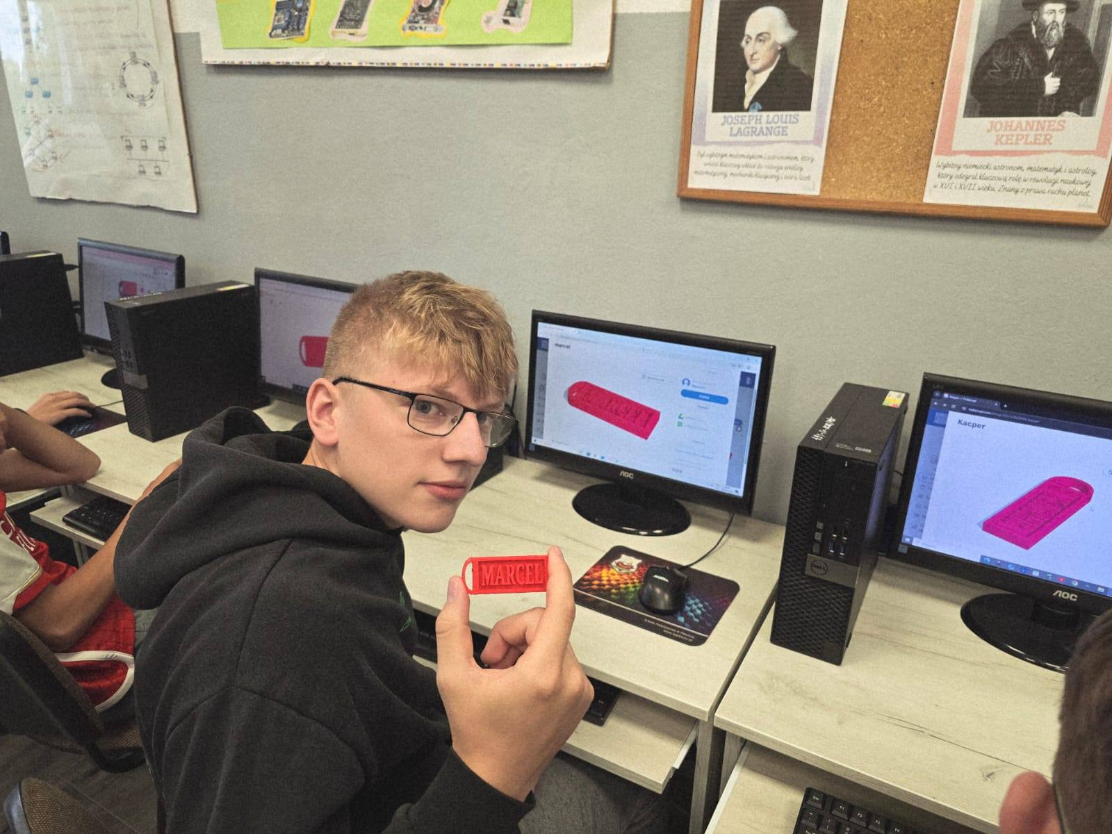 Klasa 8 w ramach ostatniej lekcji z informatyki zaprojektowała i wydrukowała swoje breloki. Brawo za kreatywność👋