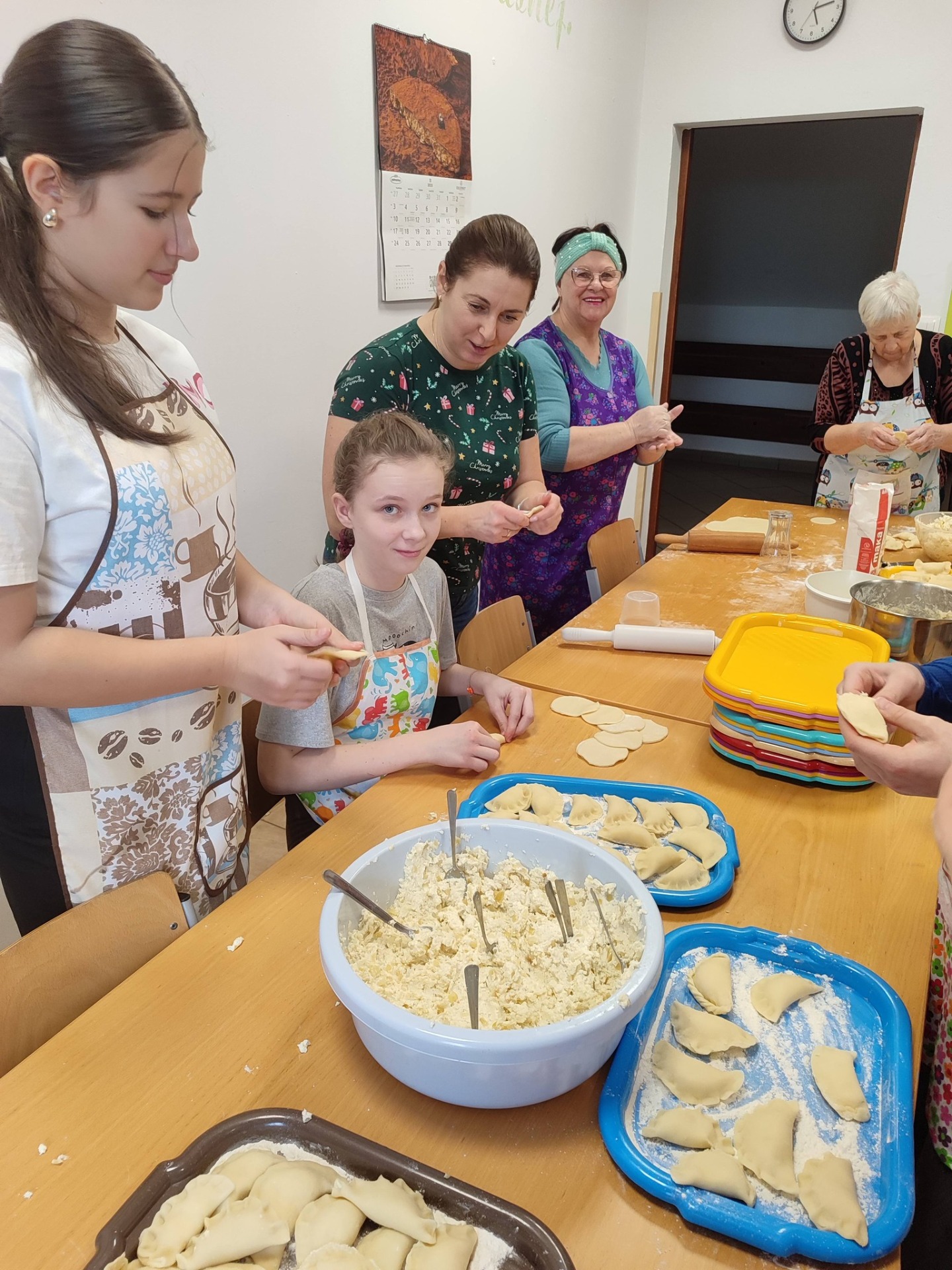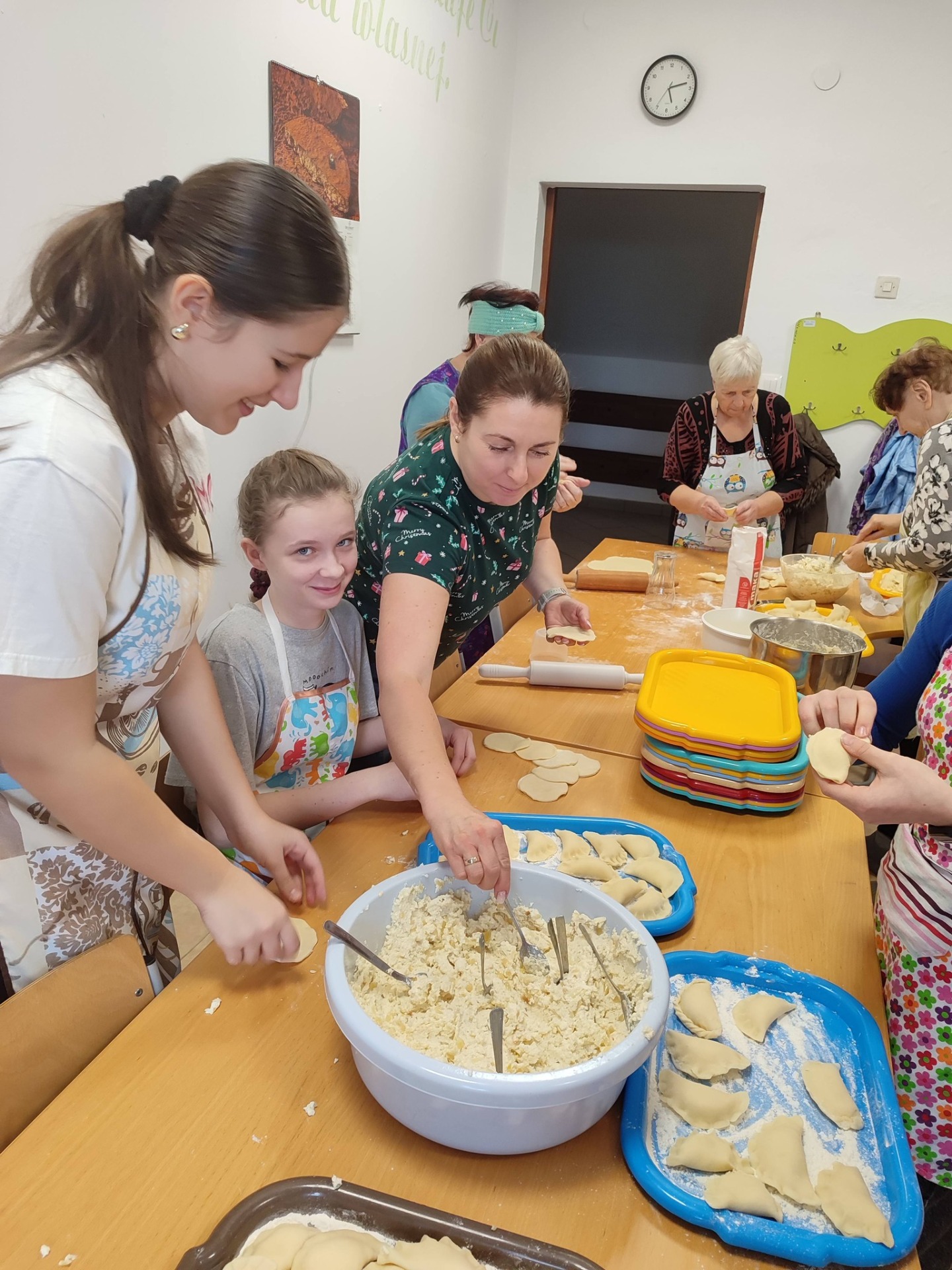 Międzypokoleniowe lepienie pierogów.
