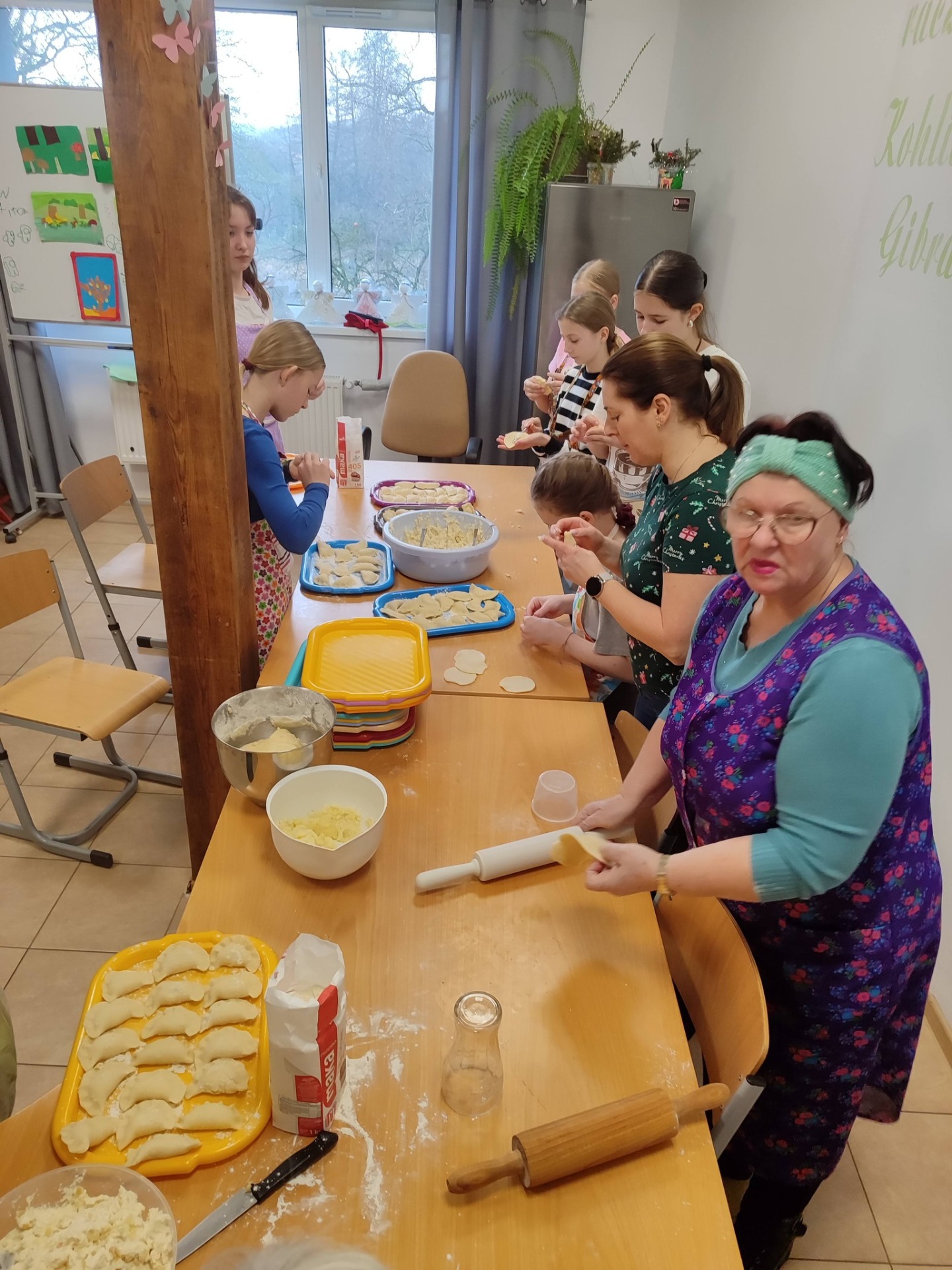 Międzypokoleniowe lepienie pierogów to już nasza świąteczna, szkolna tradycja.